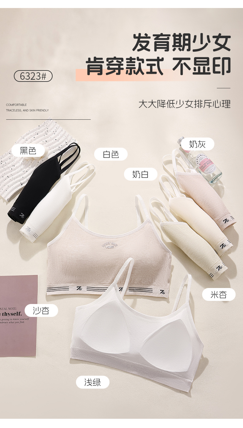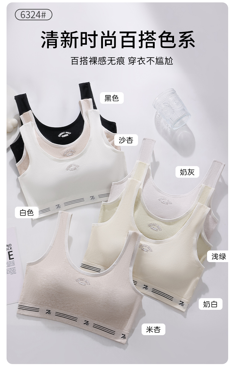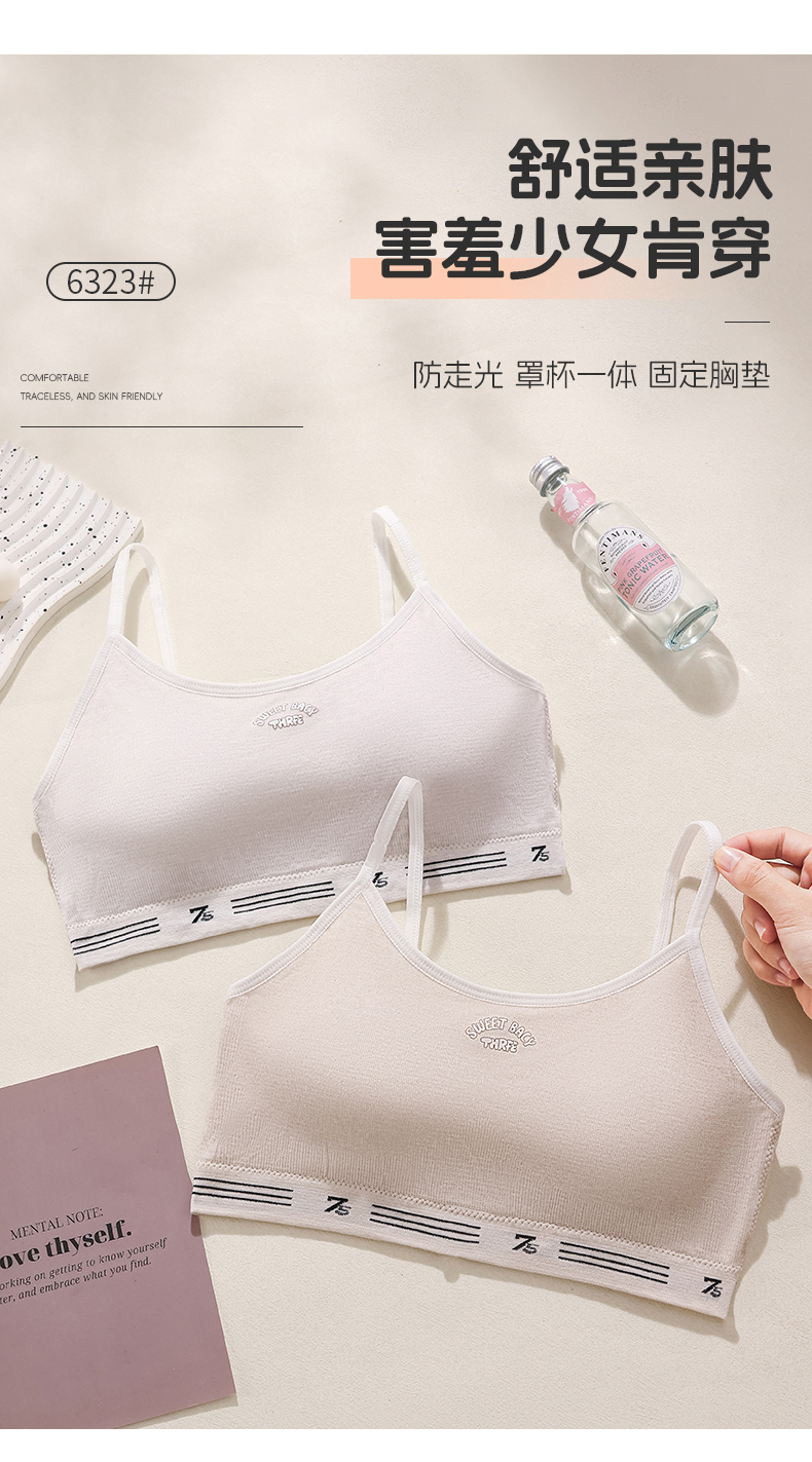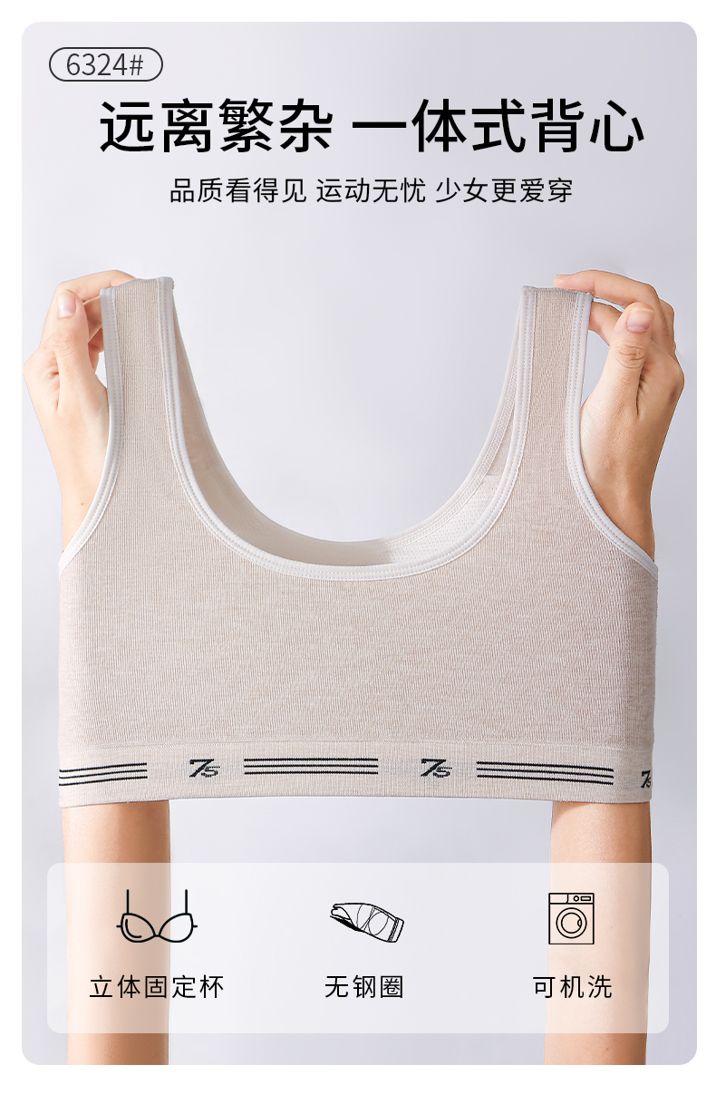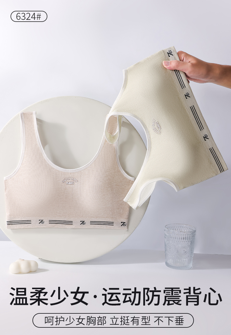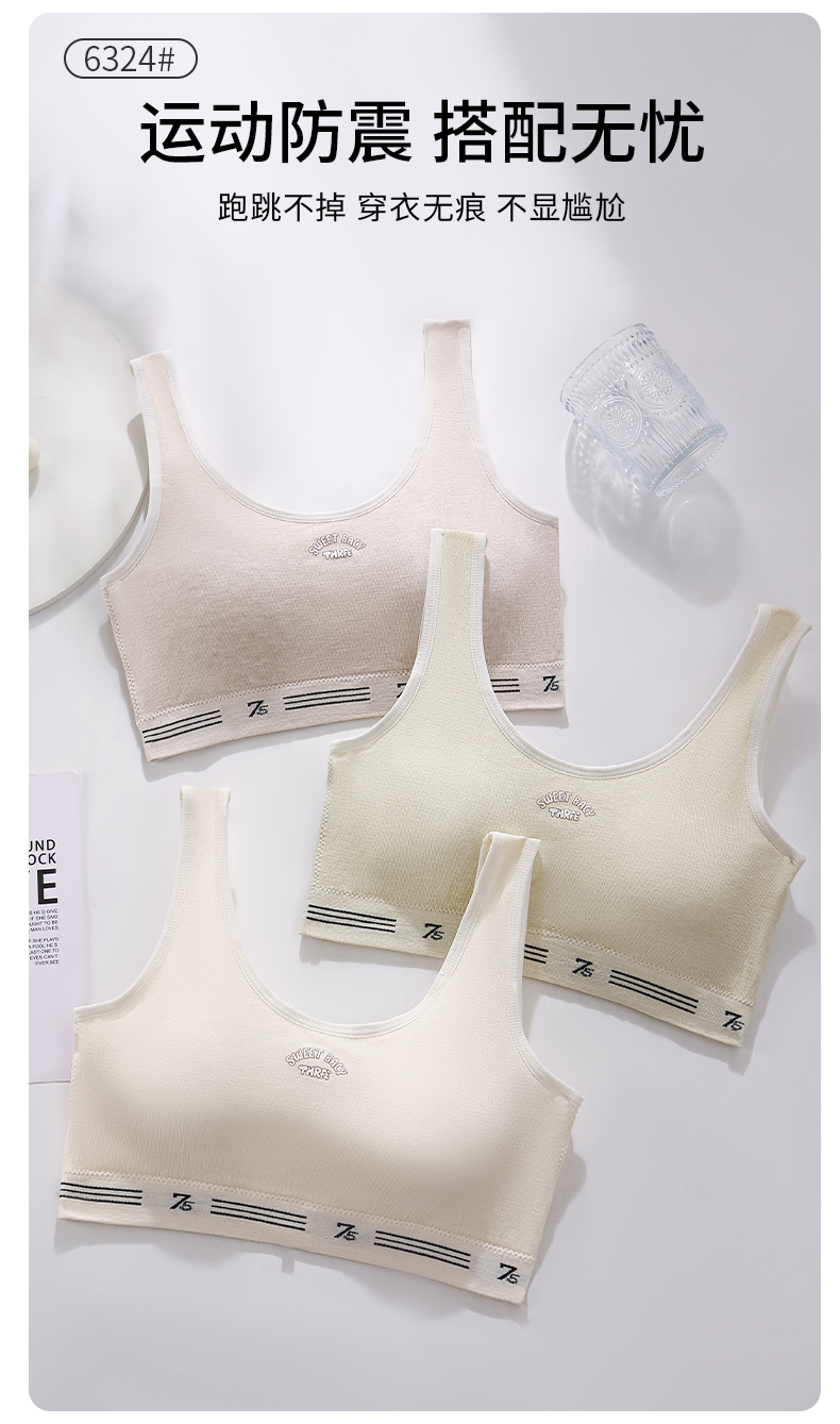 女士少女文胸无缝三阶段全固定杯少女Bra运动防震少女背心窄肩宽肩6323/6324