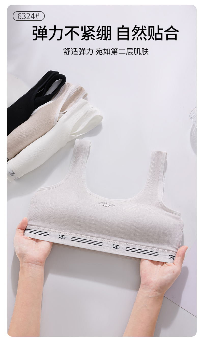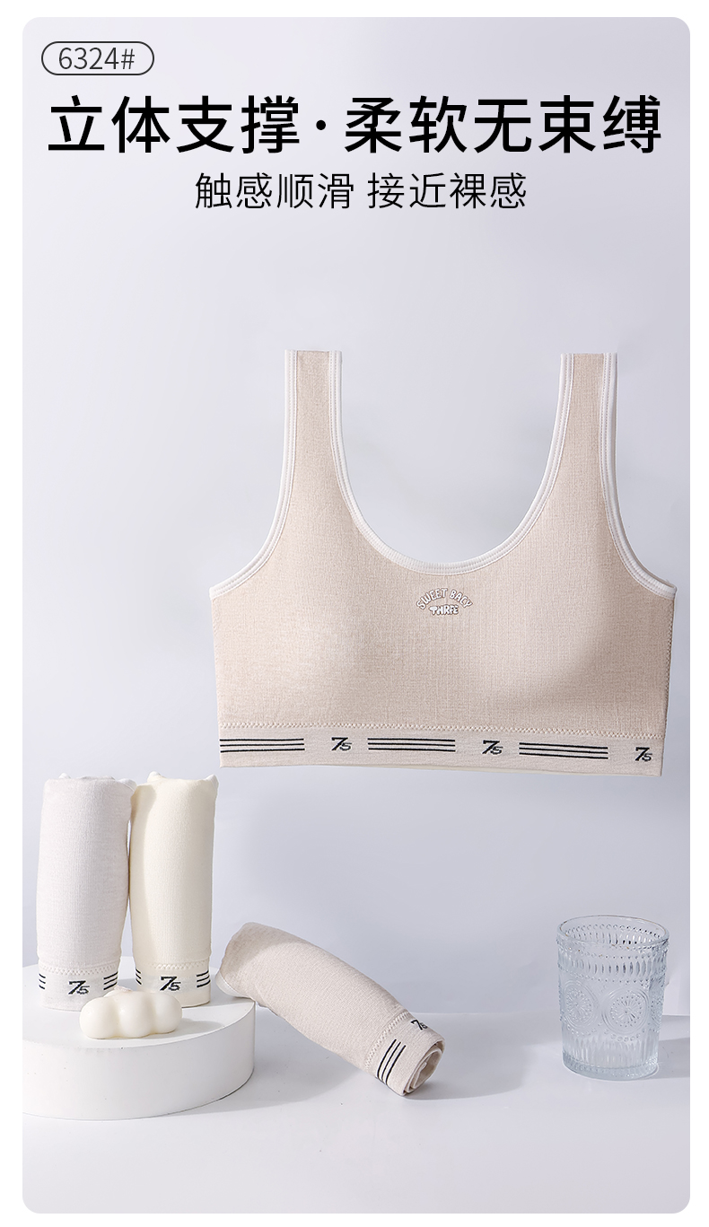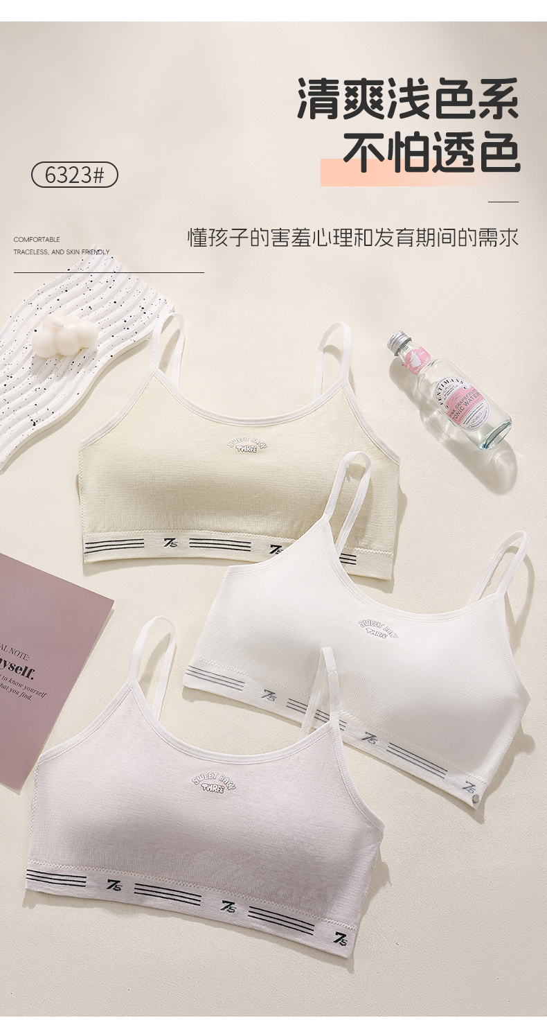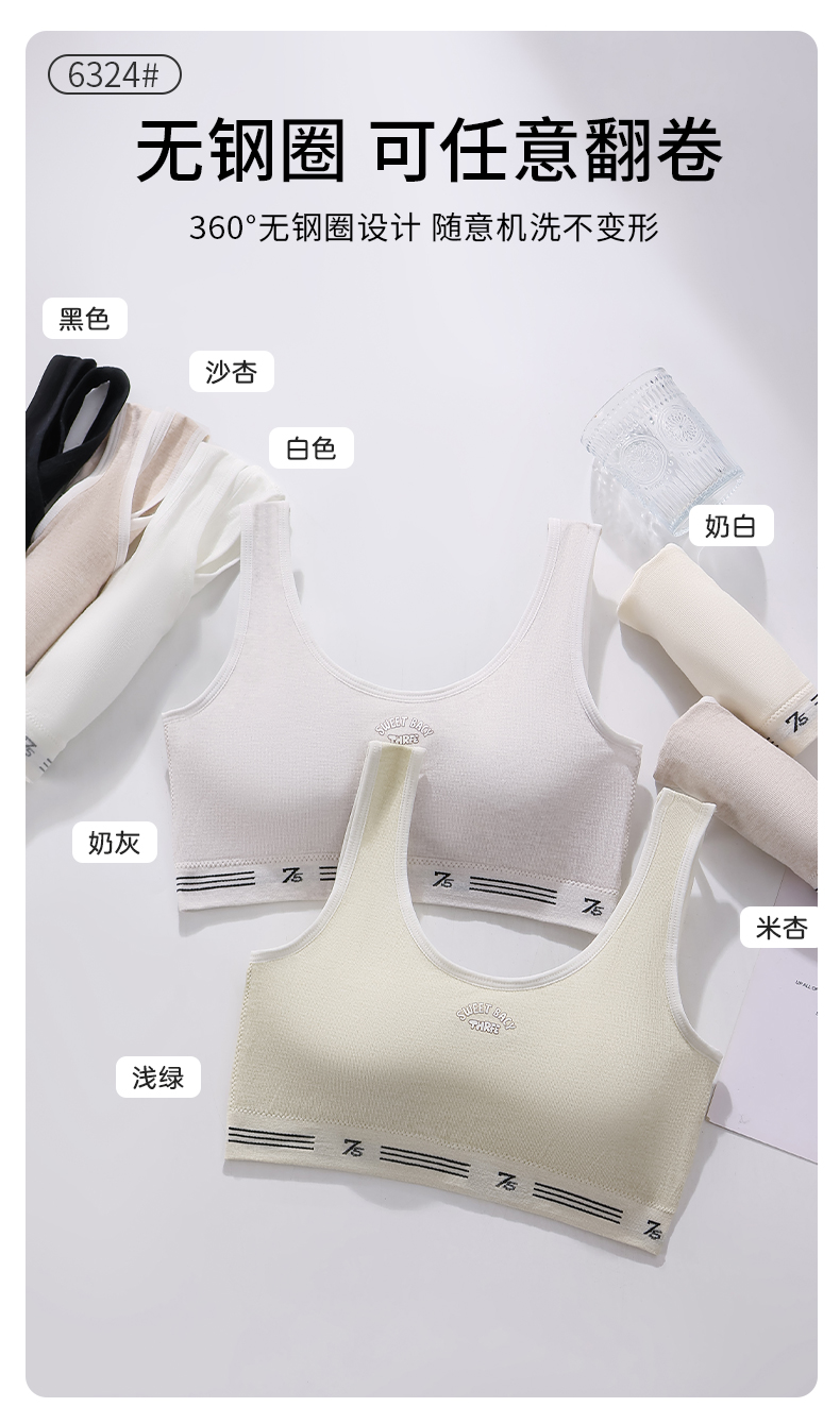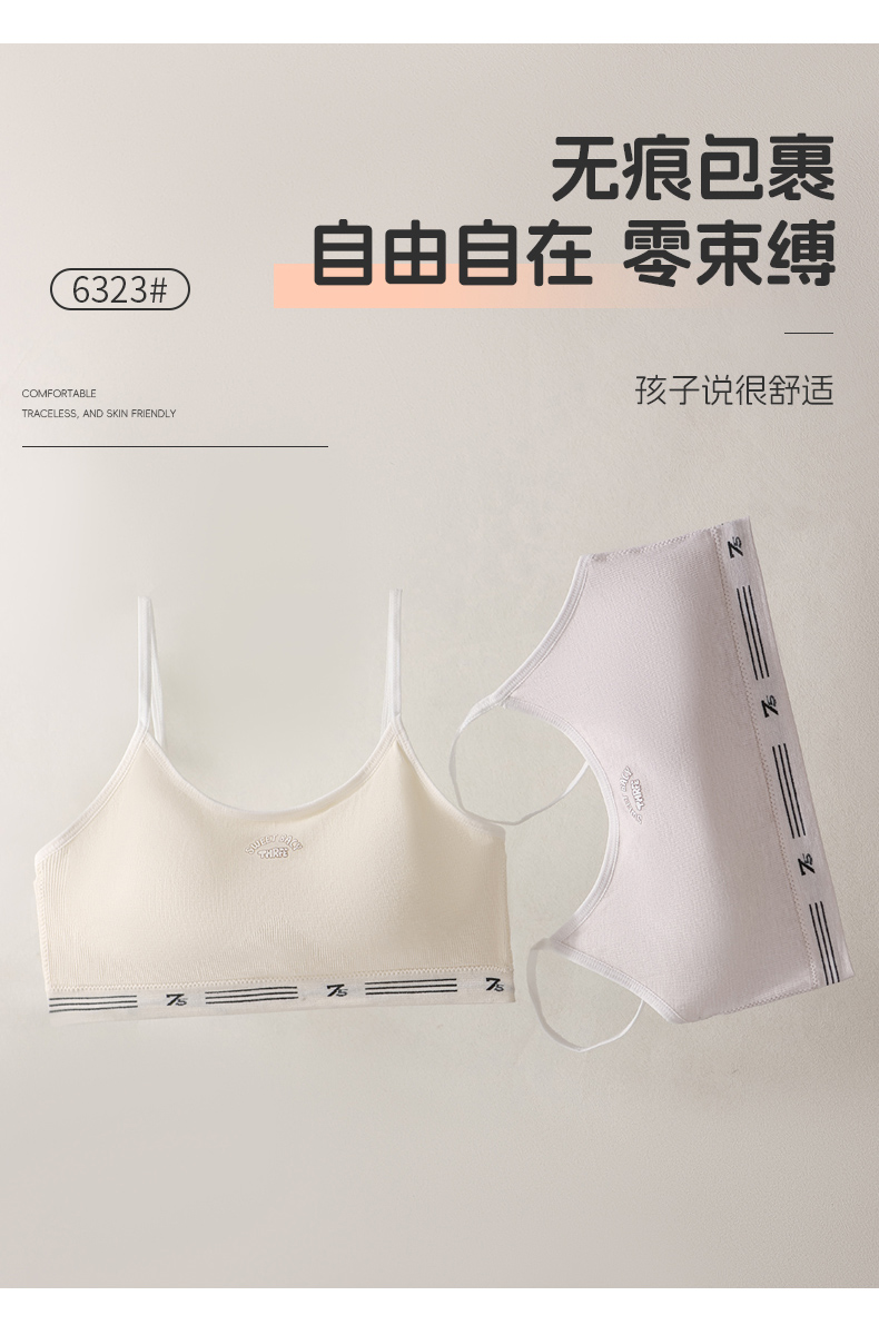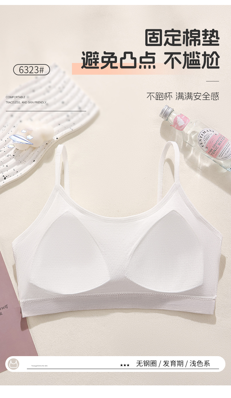 女士少女文胸无缝三阶段全固定杯少女Bra运动防震少女背心窄肩宽肩6323/6324