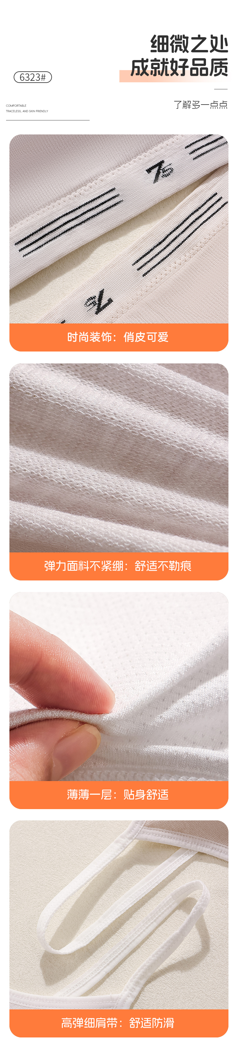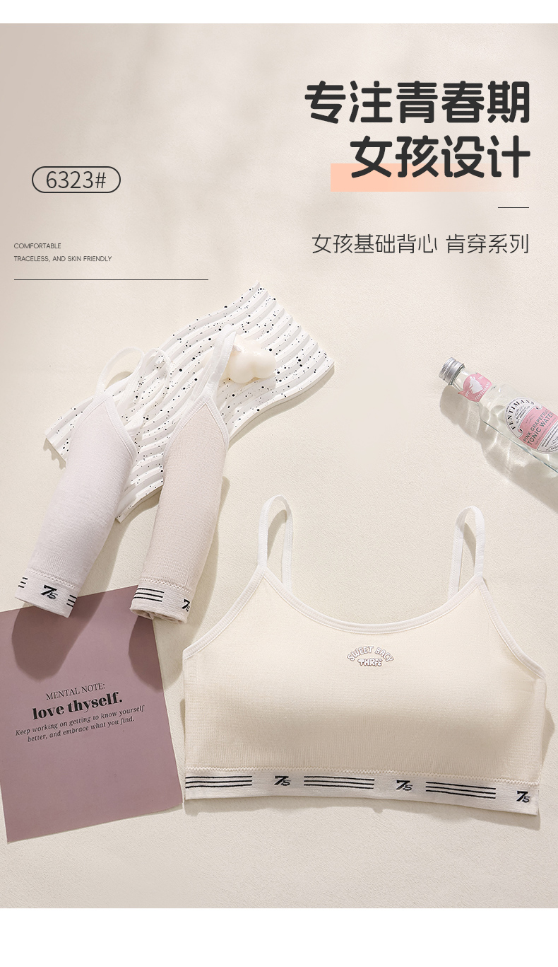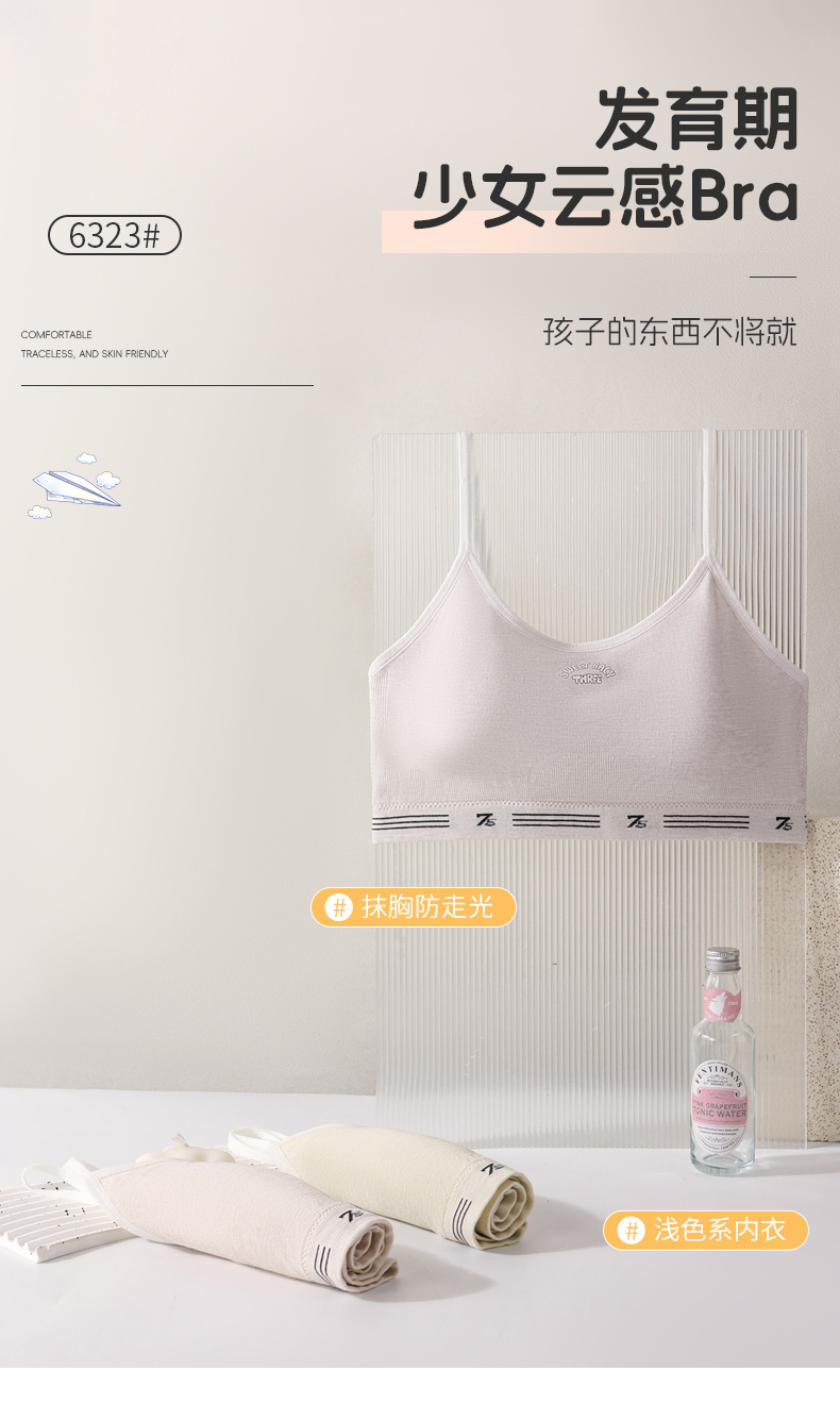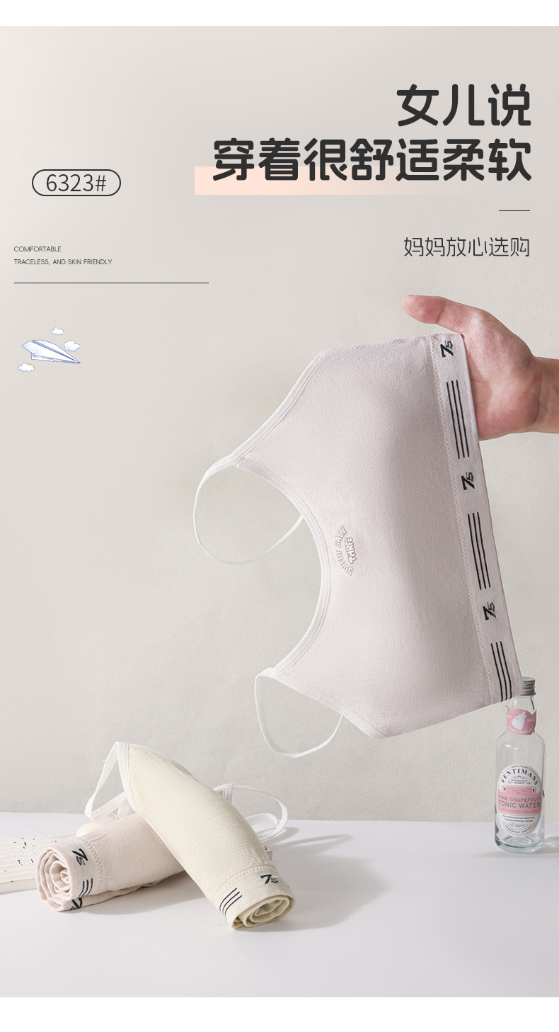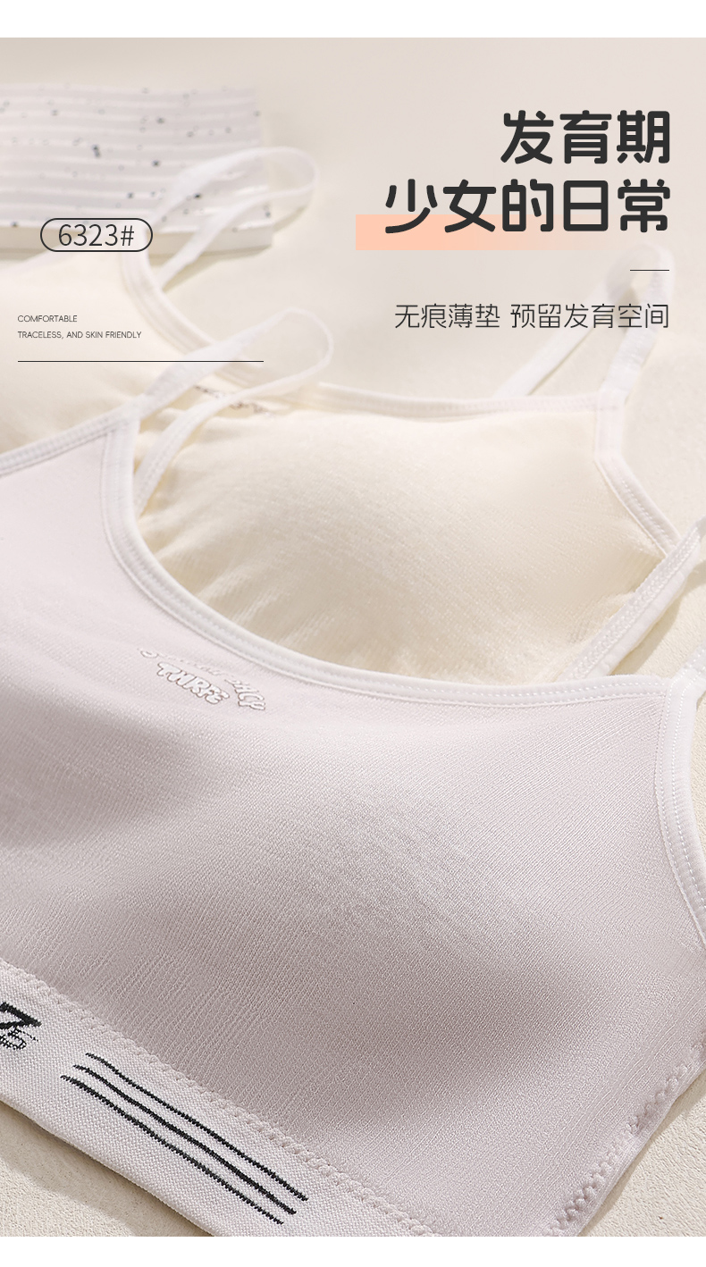 女士少女文胸无缝三阶段全固定杯少女Bra运动防震少女背心窄肩宽肩6323/6324