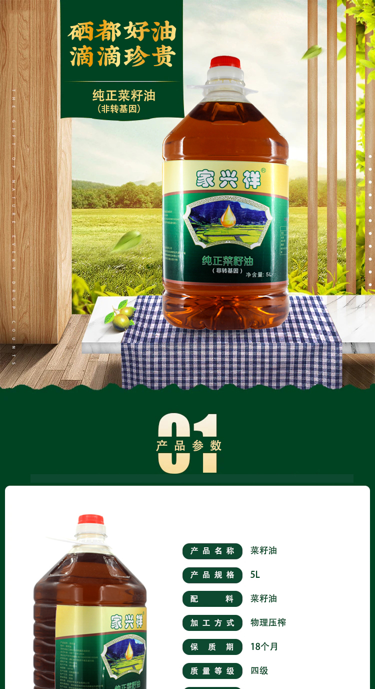 XX浓香菜籽油(二级)5L