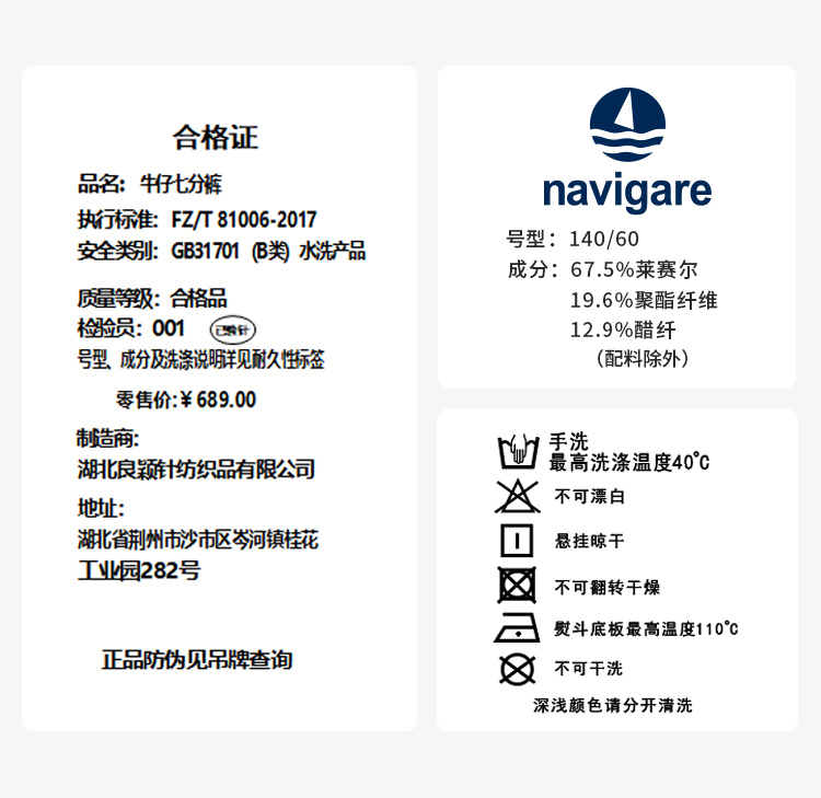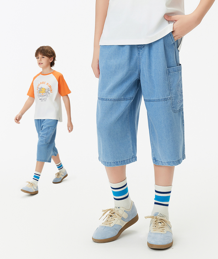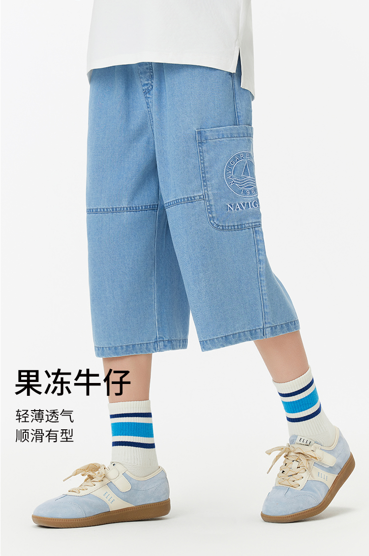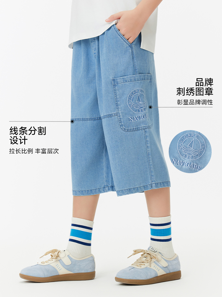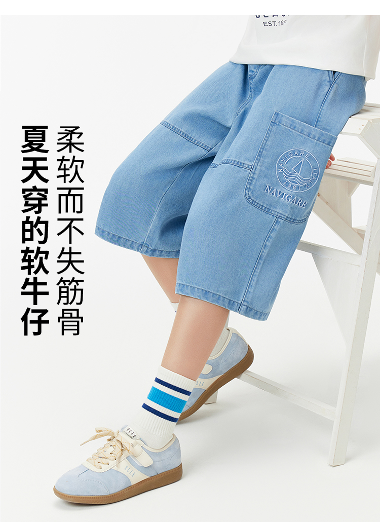【纳维凯尔】【120-165】Navigare意大利小帆船男童七分牛仔裤