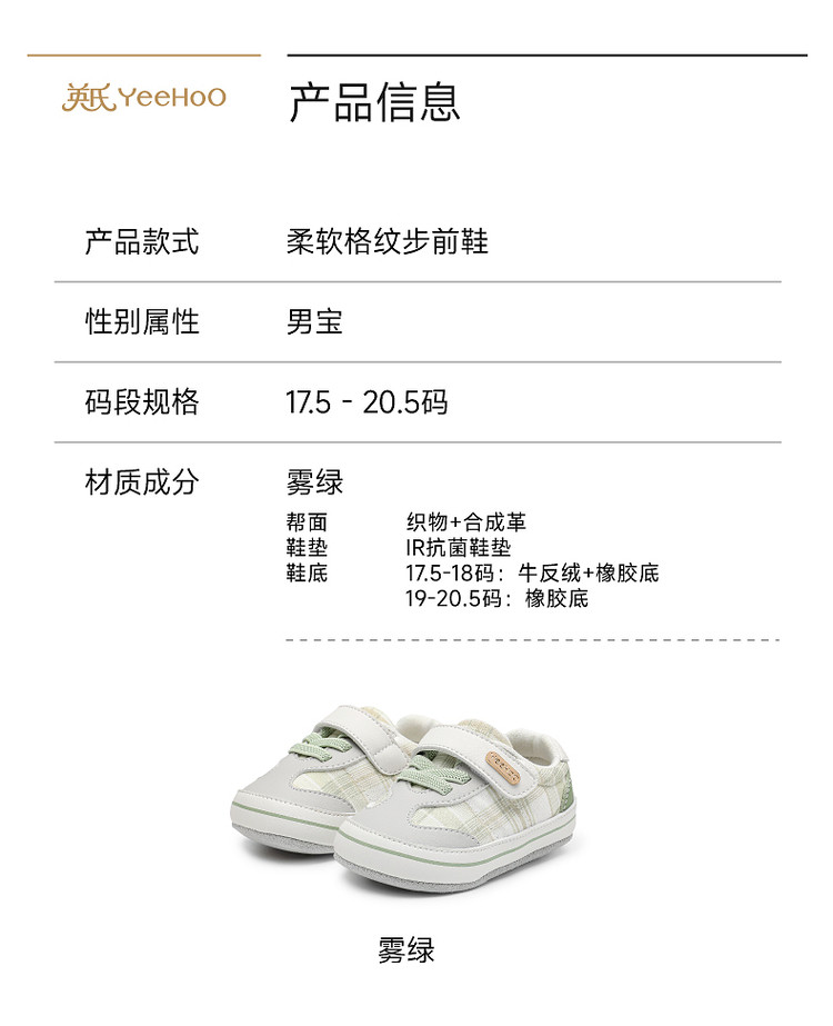 英氏童鞋宝宝步前鞋软底休闲鞋帆布格子春秋新品学步YFXHJ1S003A