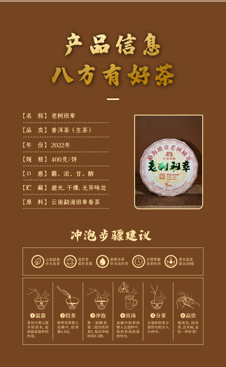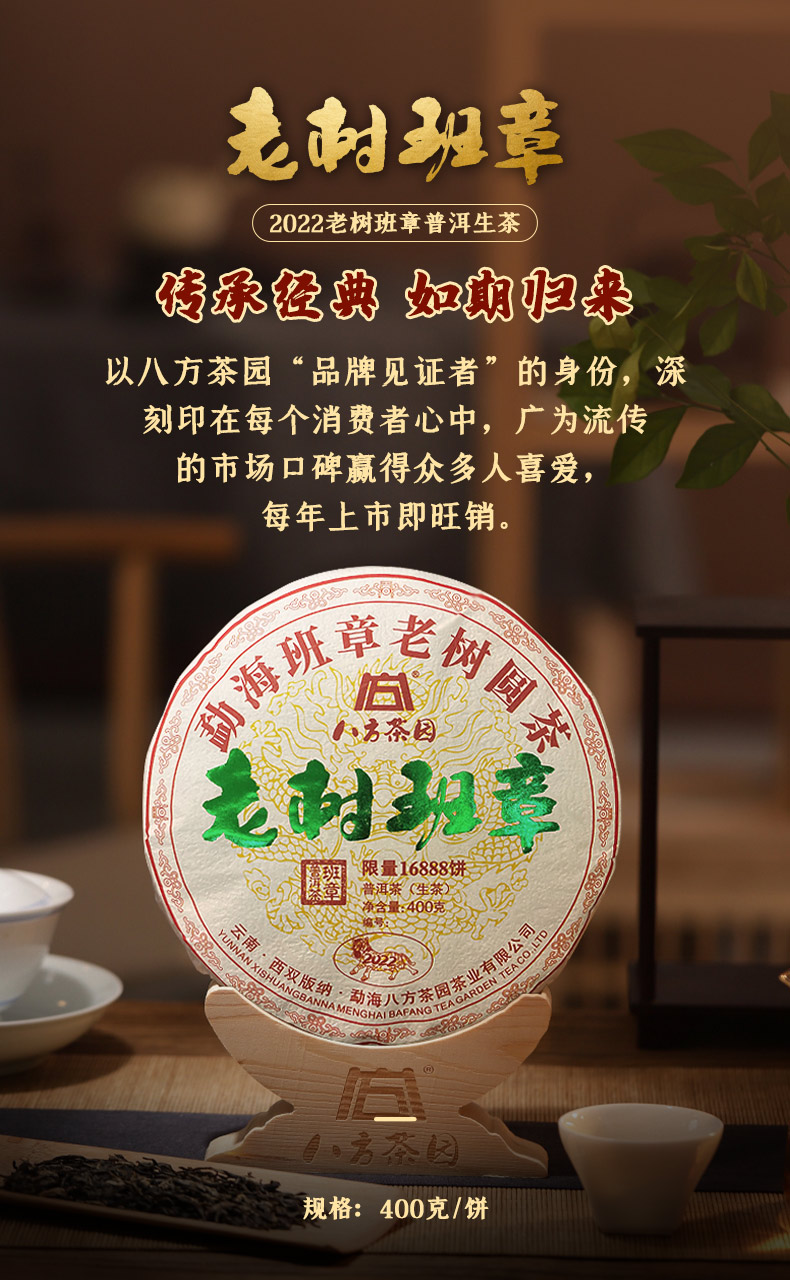 2022年八方茶园经典传承老树班章400克云南勐海普洱生茶