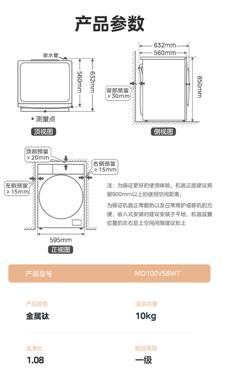 美的(Midea)滚筒10公斤洗烘一体洗衣机_MD100V58WT