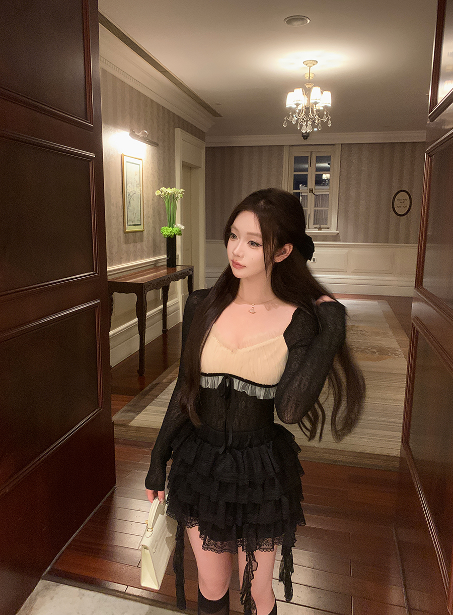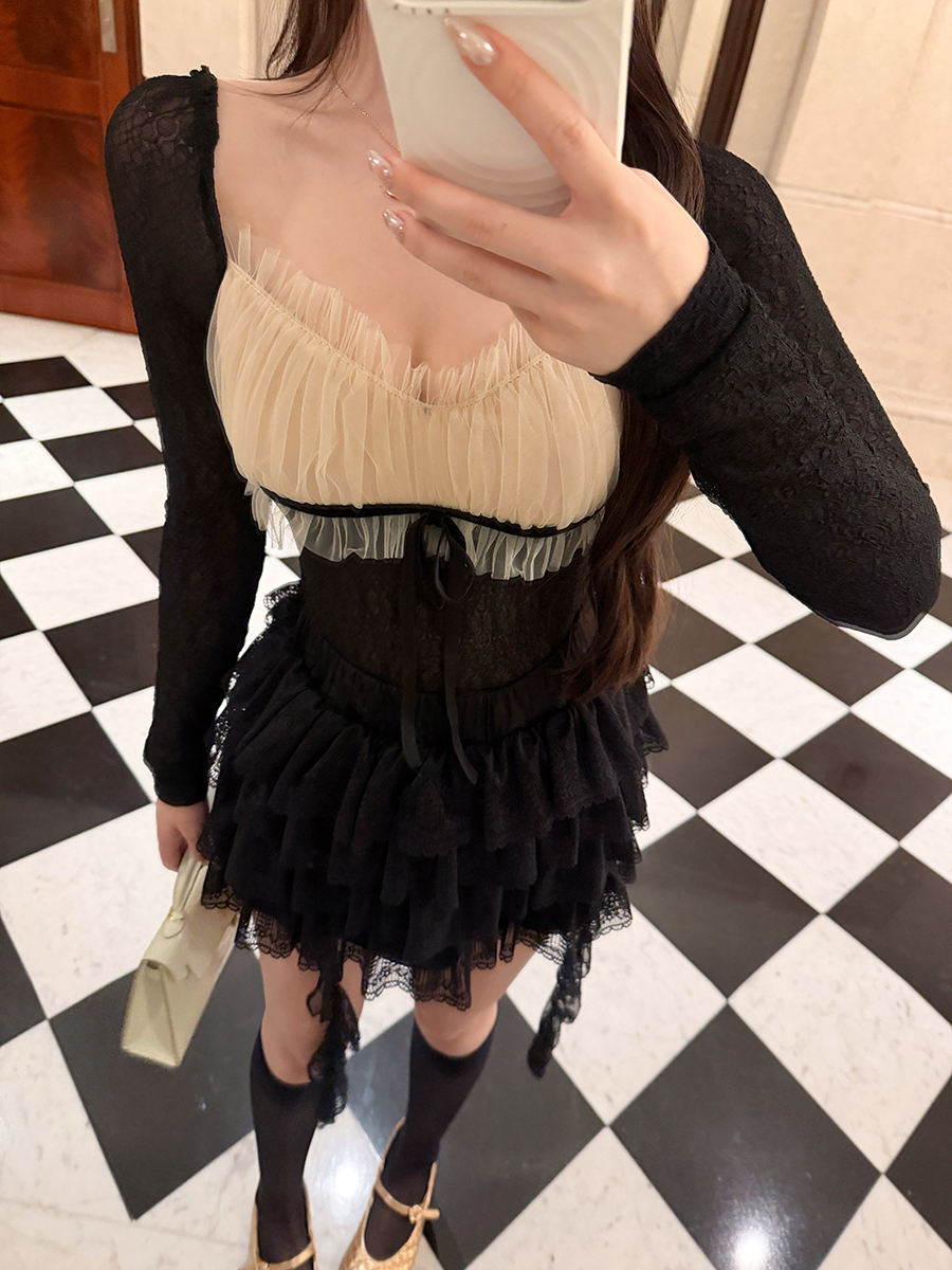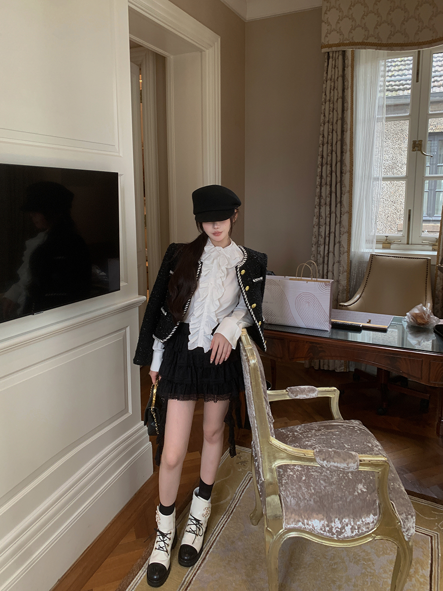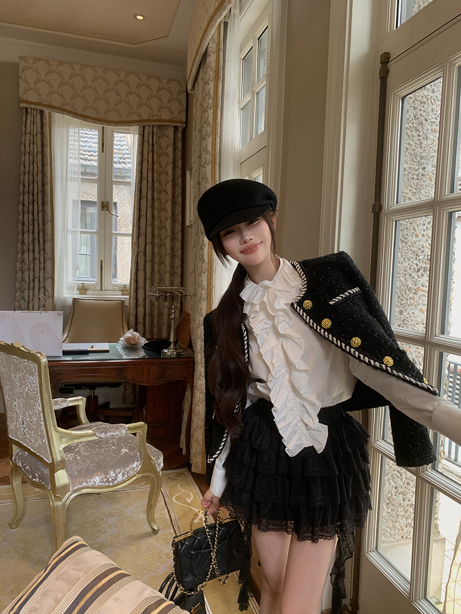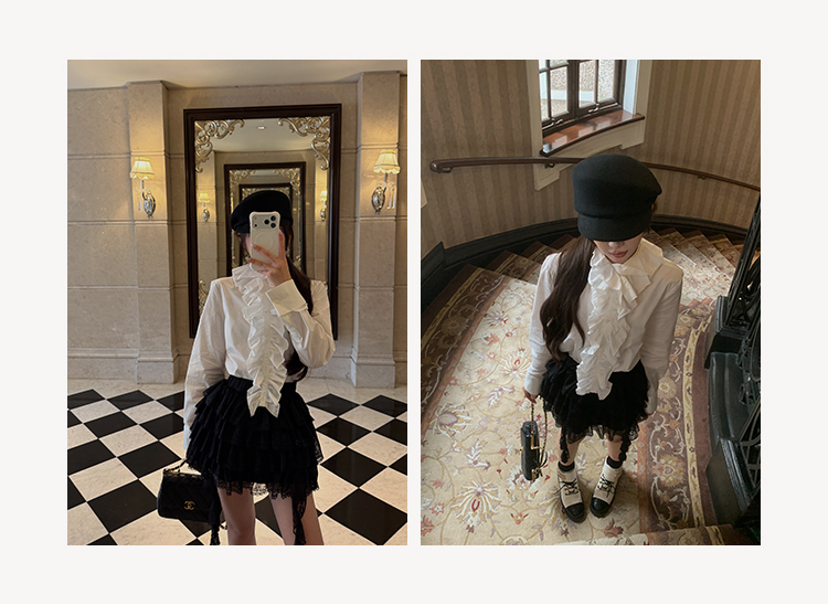 张林超LIN BOUTIQUE 洛可可公主泡泡灯笼袖细节衬衫+蕾丝蛋糕半裙