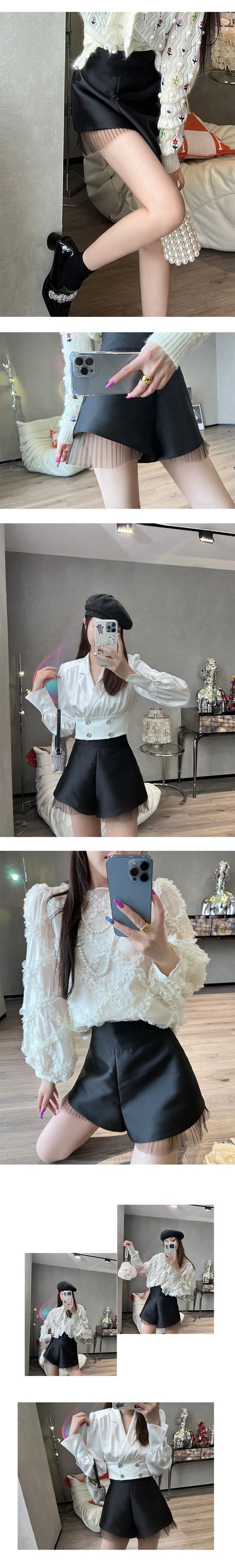 #小程序年中福利# 百搭显瘦高腰双层网纱短裤