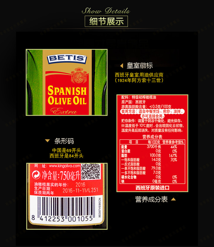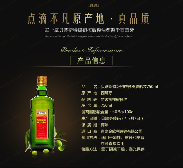 贝蒂斯特级初榨橄榄油750ml