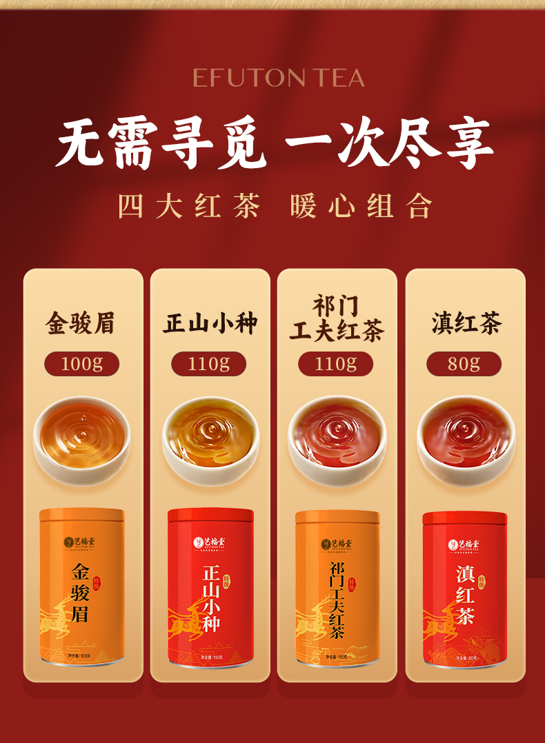 艺福堂四大红茶+手提袋*2+水晶杯*1