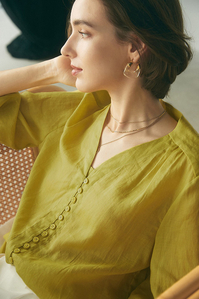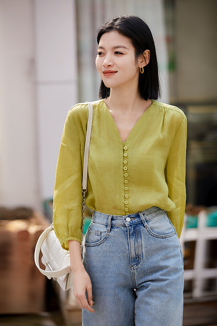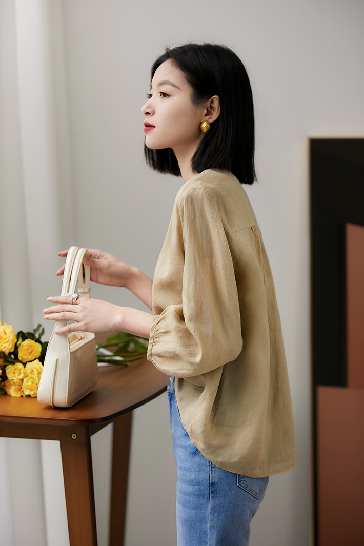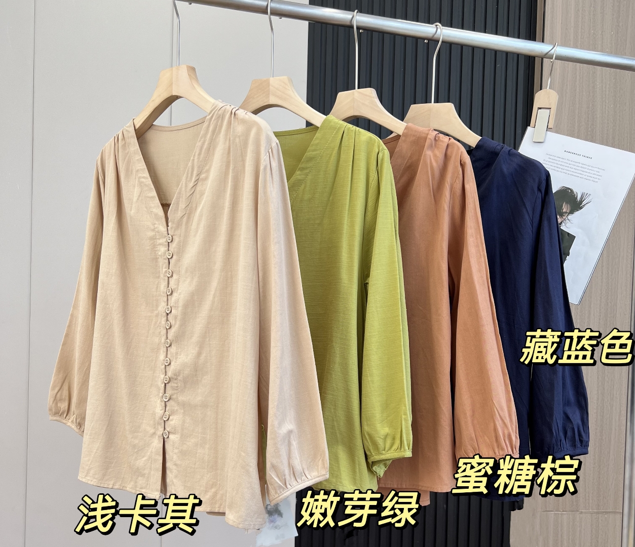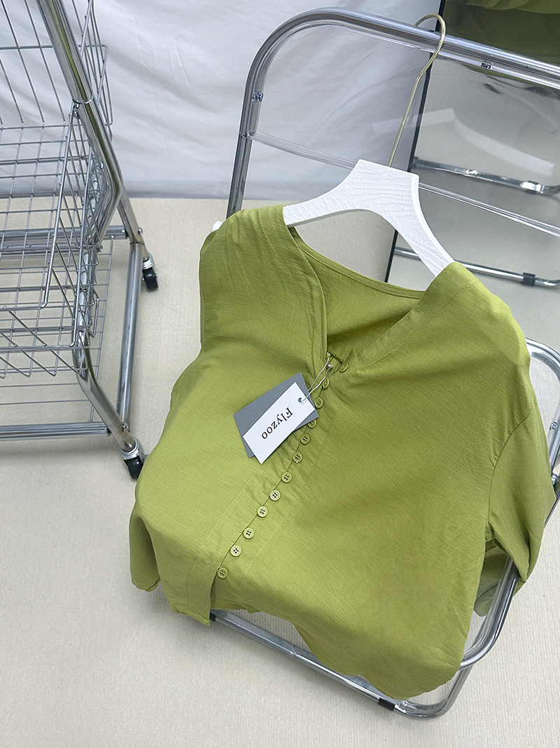英国设计师Flyzoo品牌衬衫,V领+泡泡袖