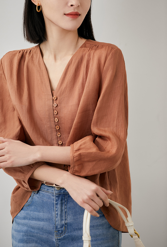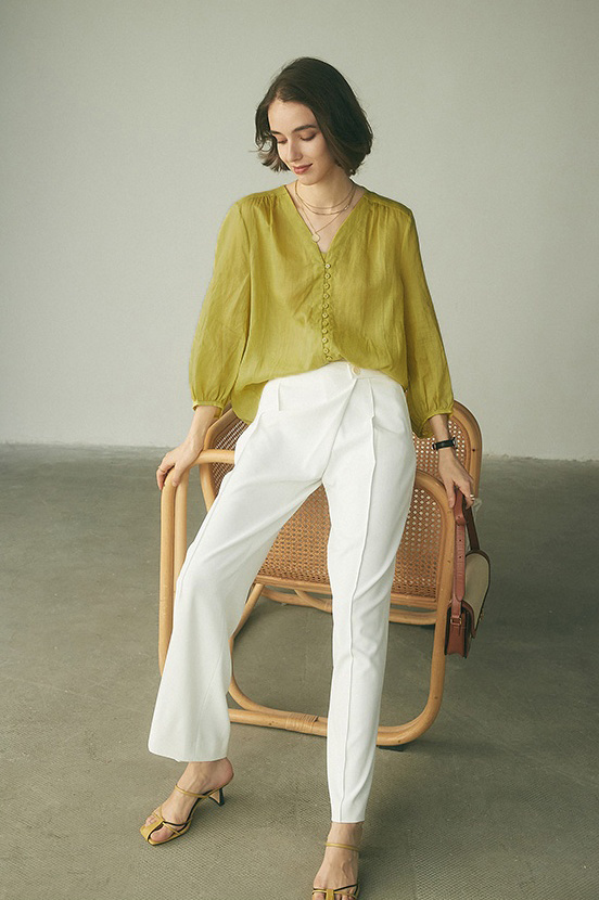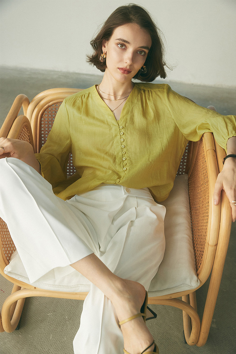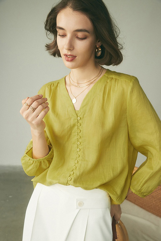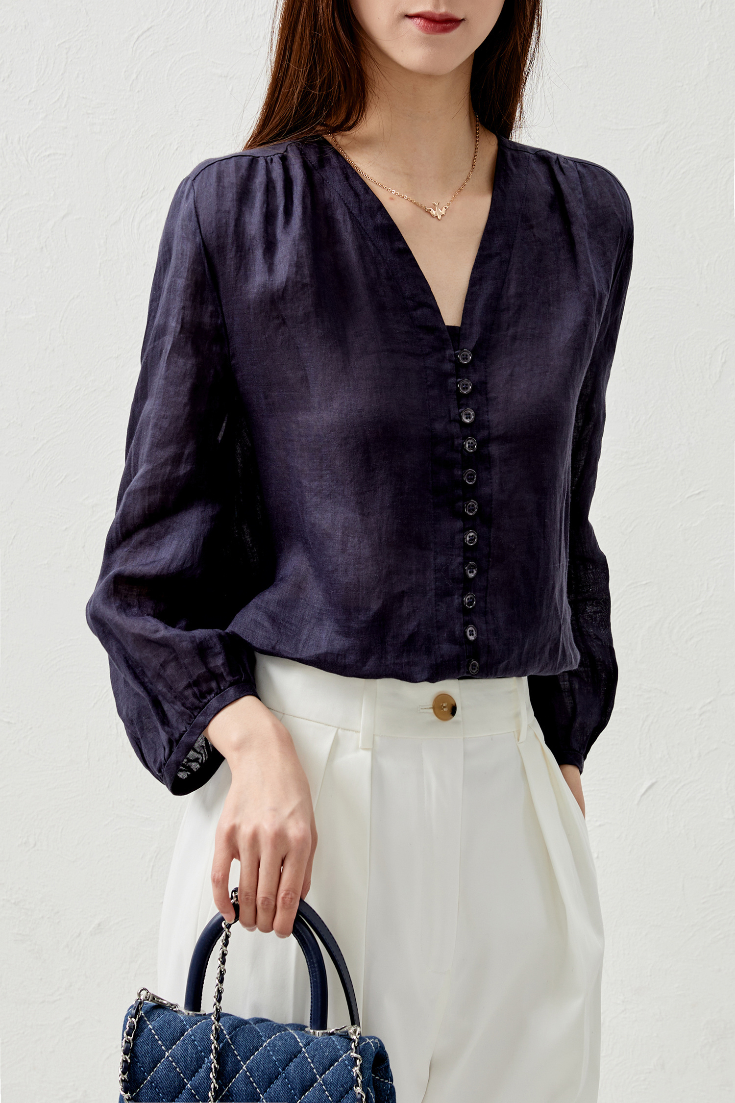 英国设计师Flyzoo品牌衬衫,V领+泡泡袖