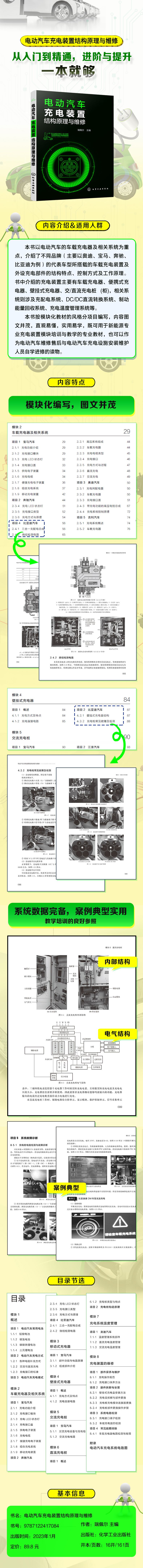 本书按模块化教材的风格分项目编写,内容图文并茂,直观易懂,实用易学,既可用于新能源专业充电装置模块培训与教学的专业教材,也可以作为电动汽车维修售后与电动汽车充电设施安装维护人员自学进修的读物。