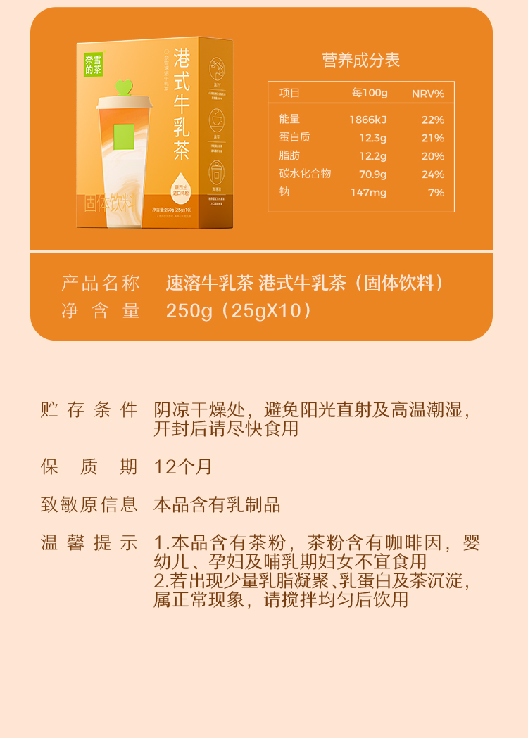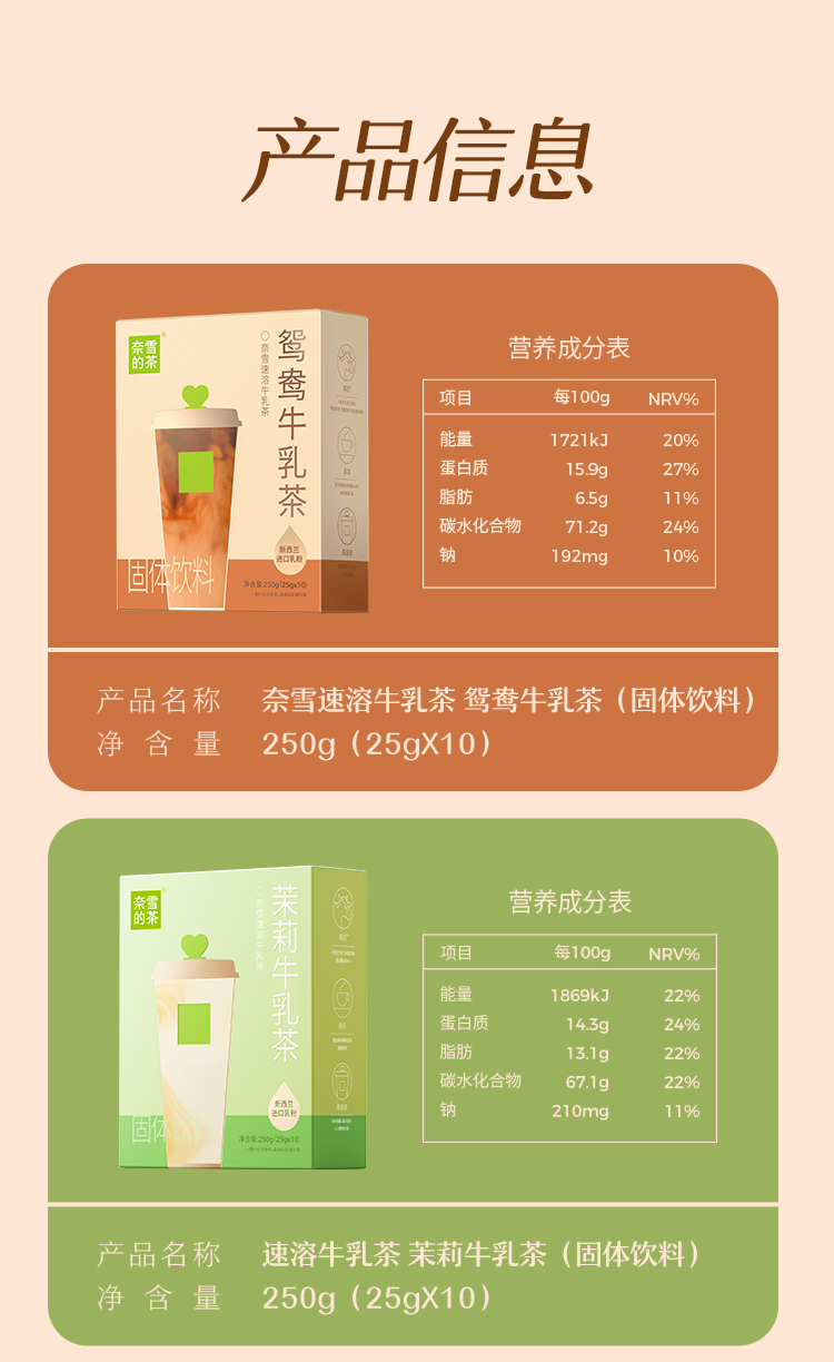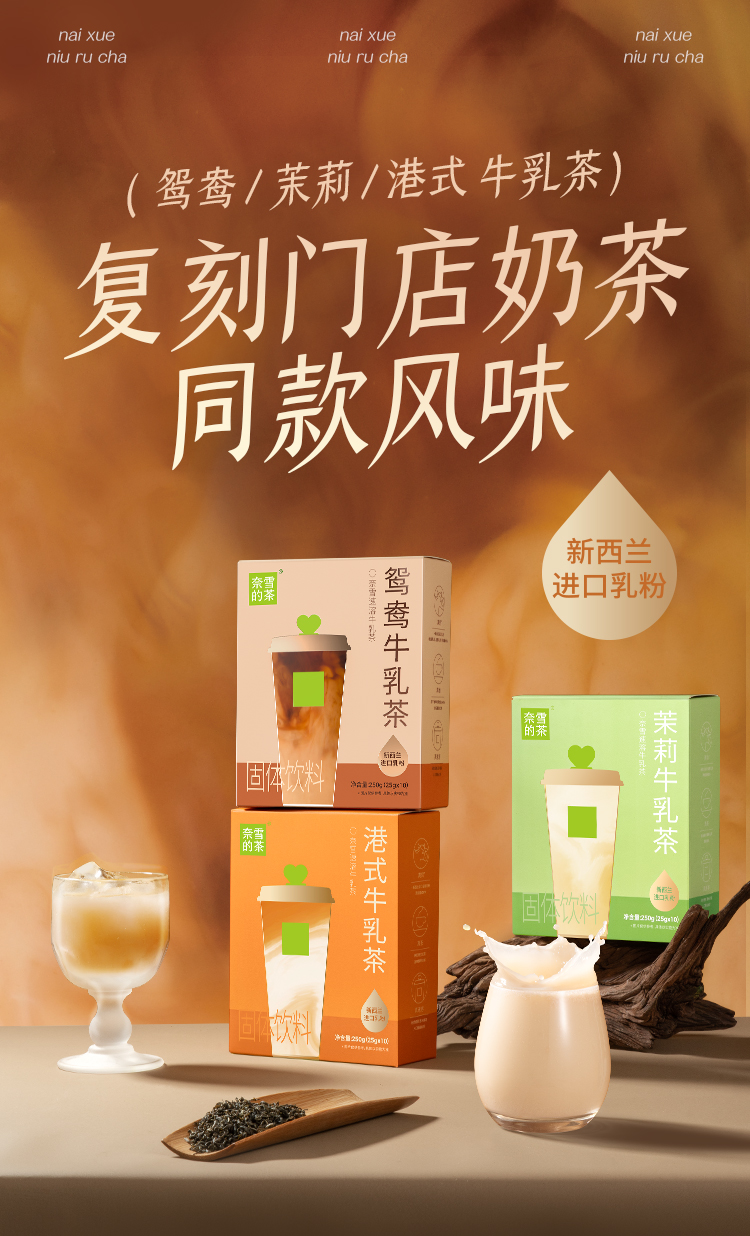 奈雪的茶 速溶牛乳茶茉莉/港式/鸳鸯奶茶真奶真茶新西兰乳粉冲饮10袋/盒