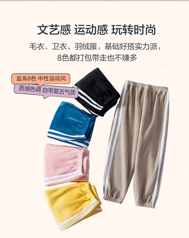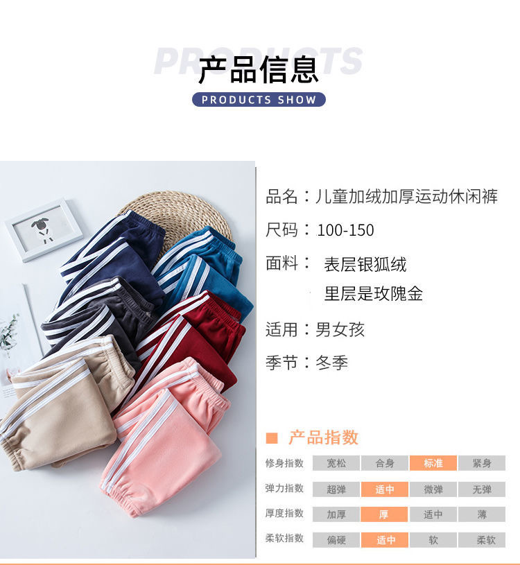 【品名】银狐绒男女童加绒加厚运动休闲裤2条