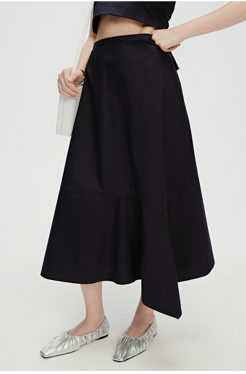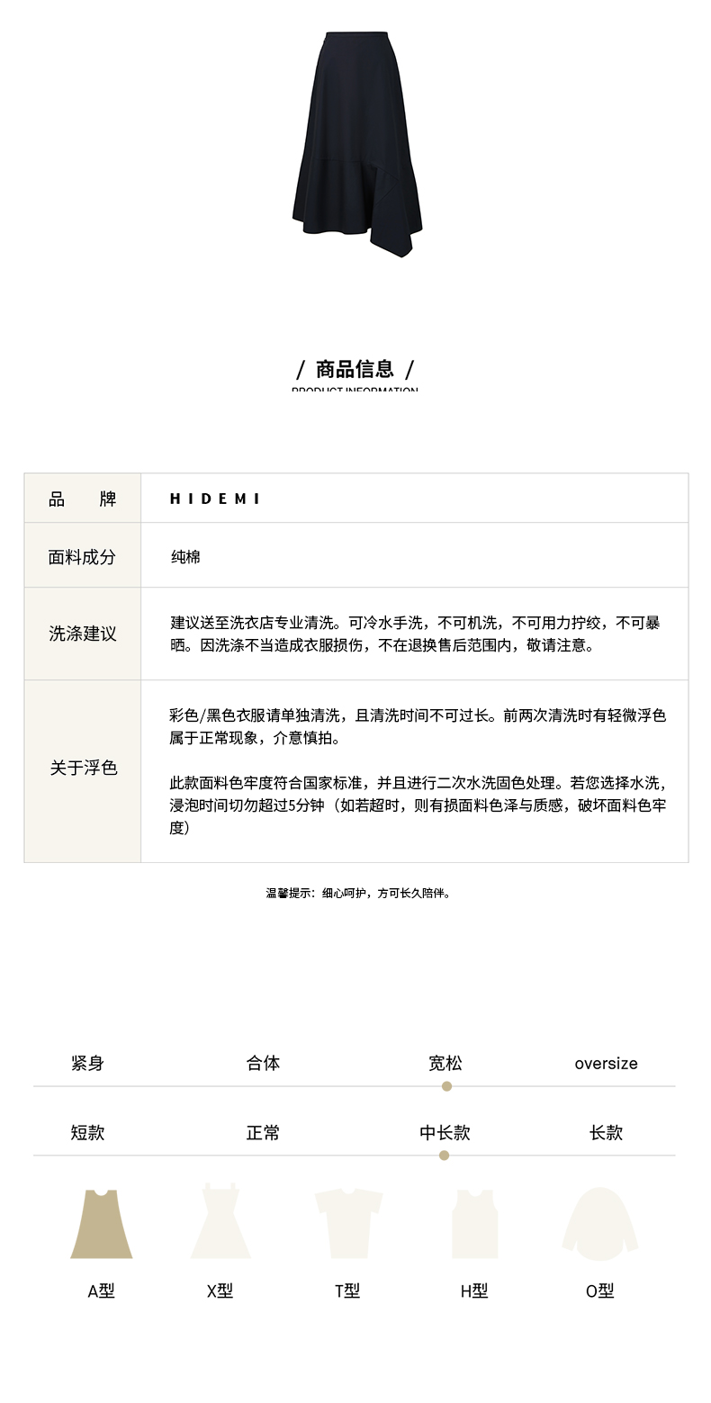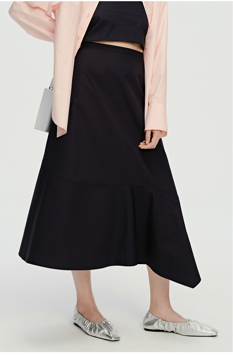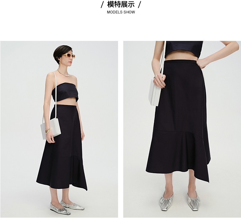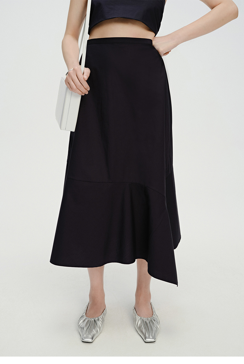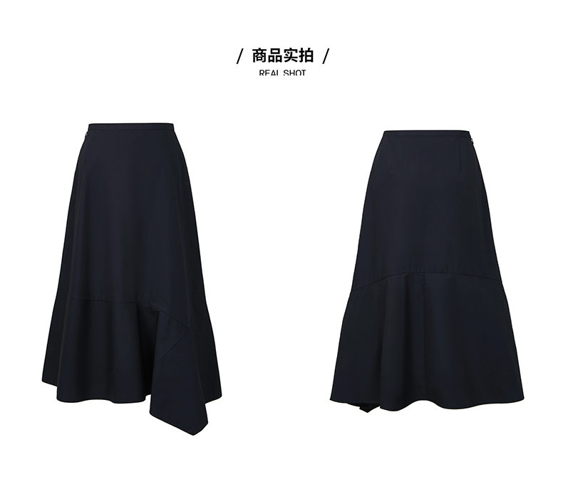 HIDEMI 藏蓝色简约不对称设计感鱼尾式拼接立体剪裁半身裙