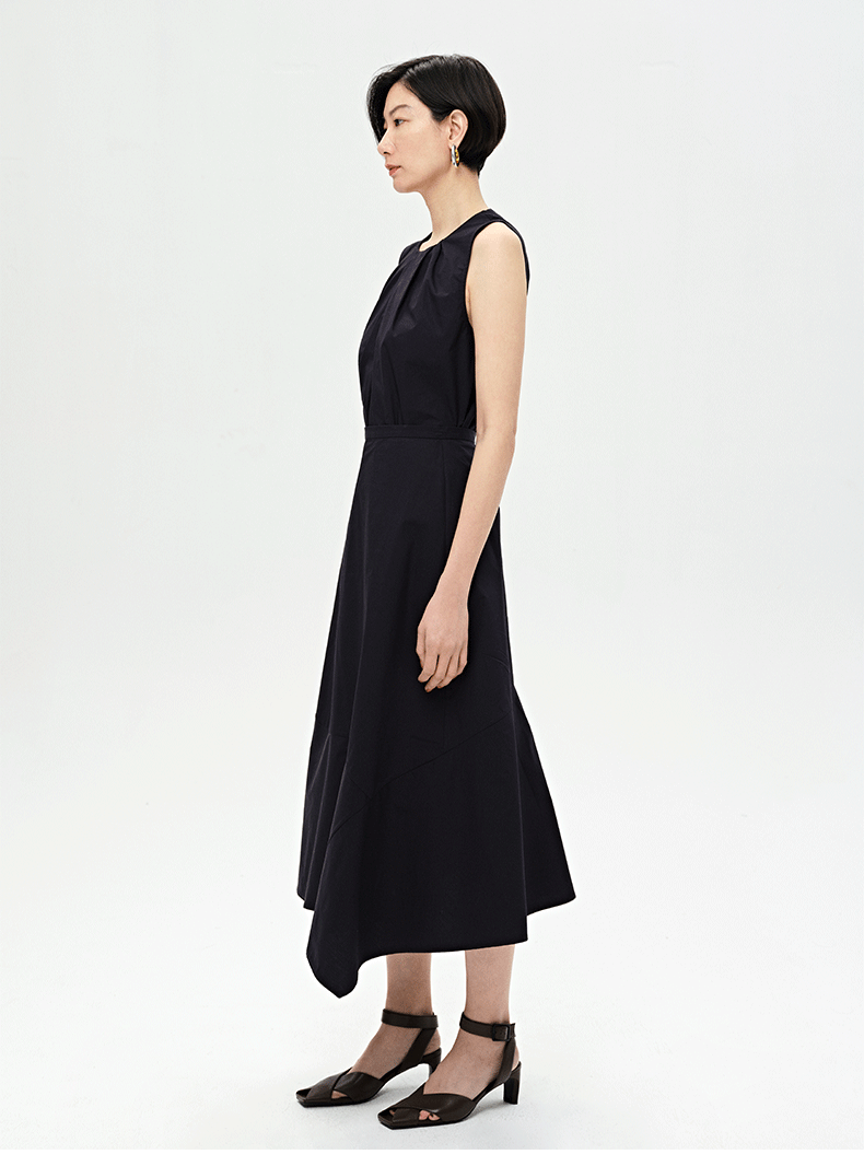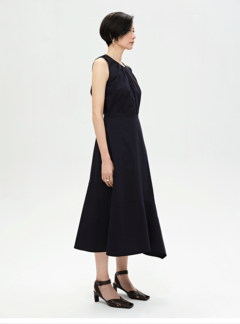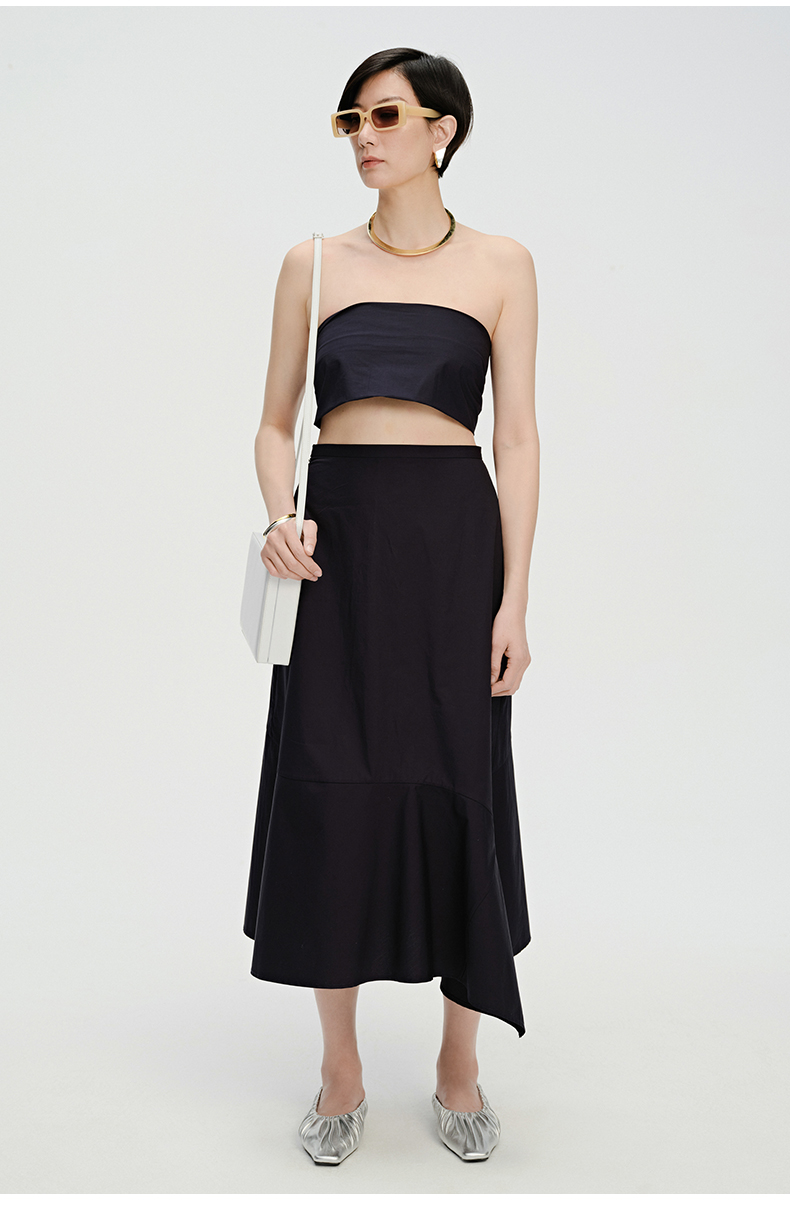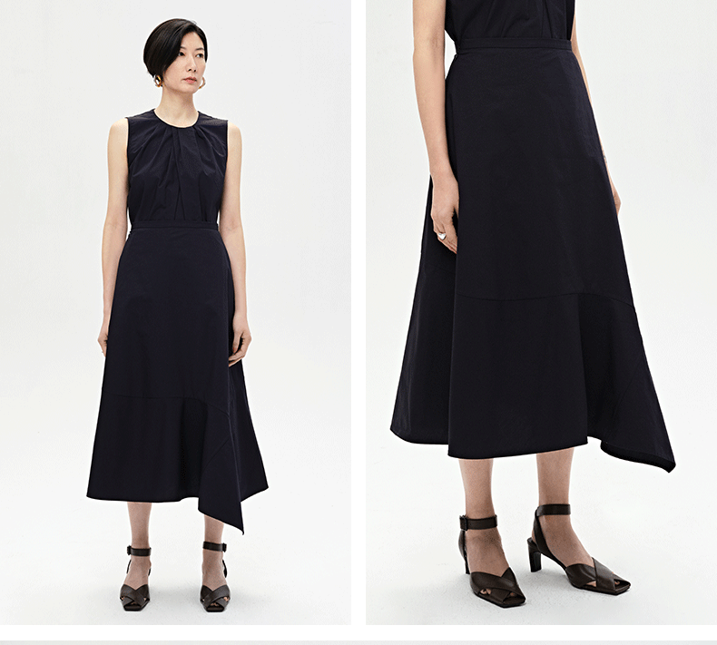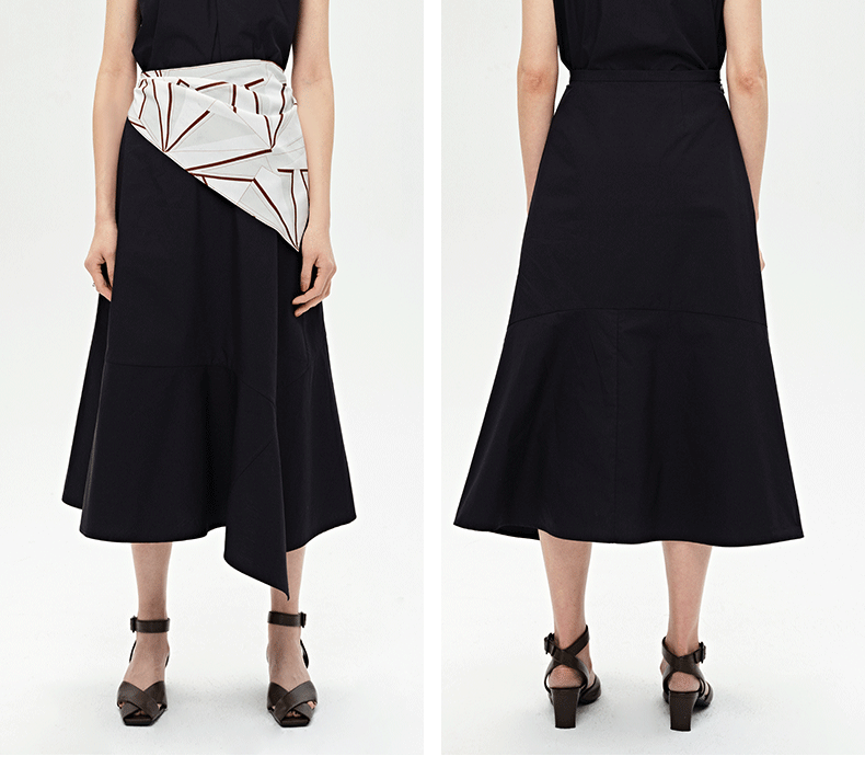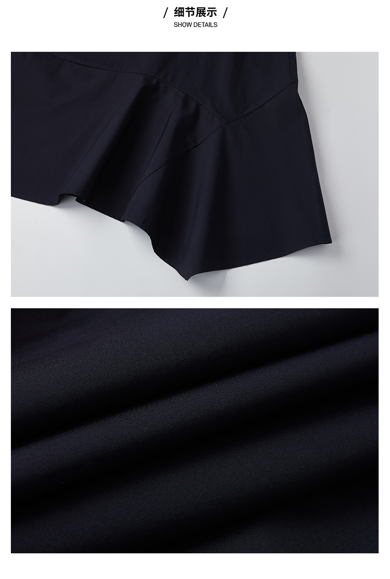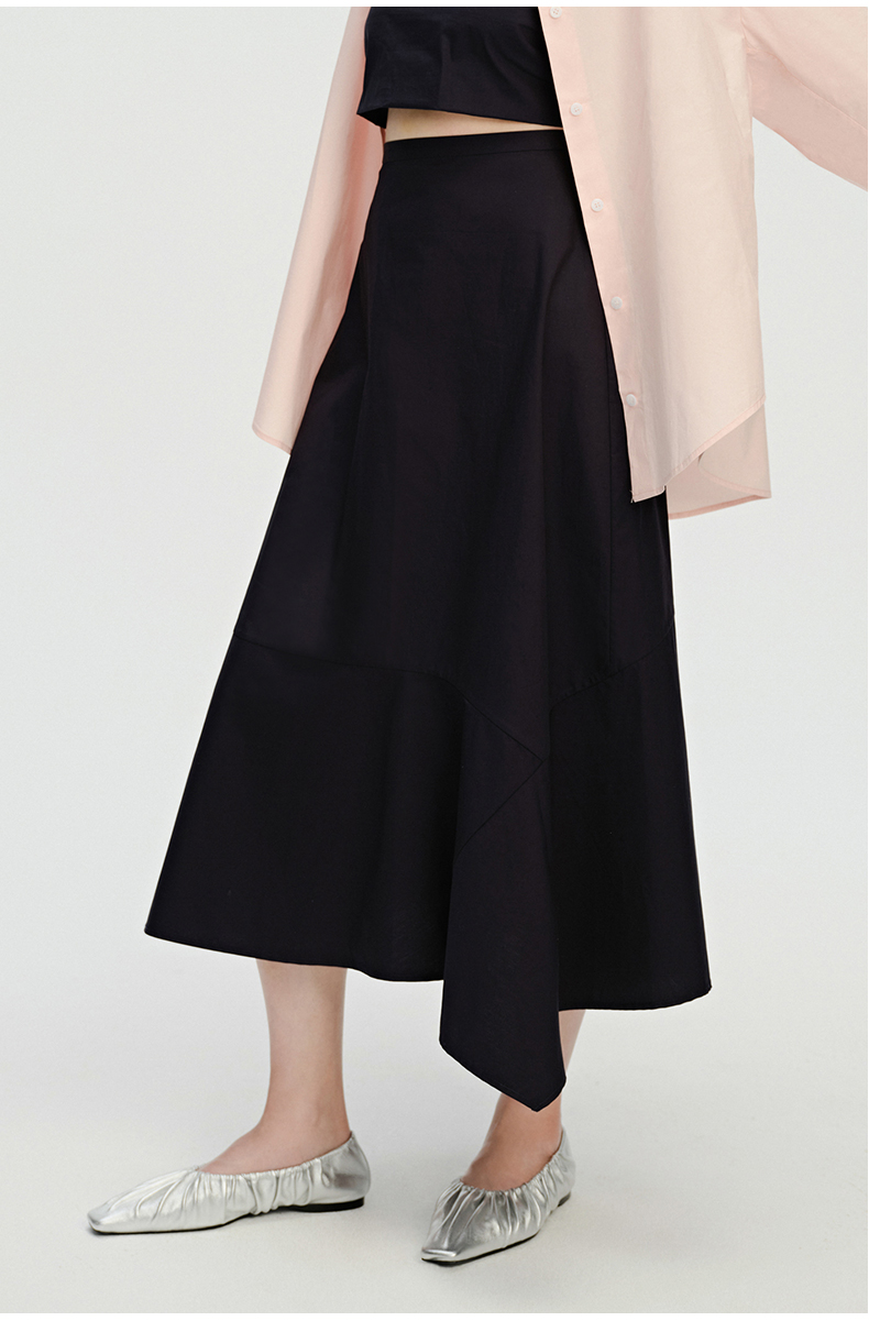 HIDEMI 藏蓝色简约不对称设计感鱼尾式拼接立体剪裁半身裙