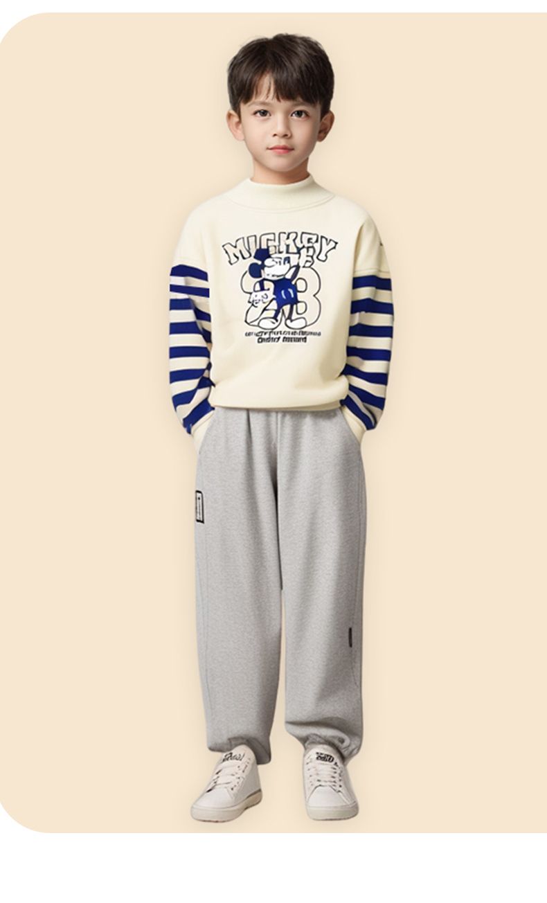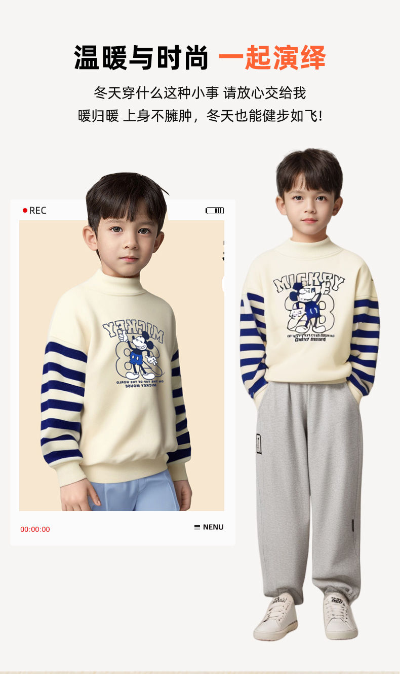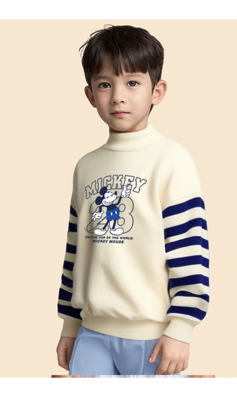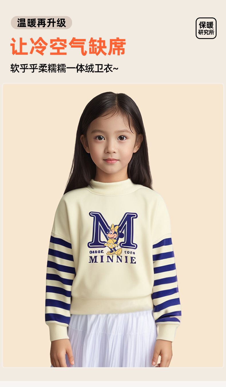 迪士尼男女童卫衣加绒款一体绒保暖上衣男女童打底衫冬季半高领