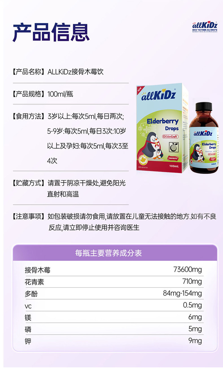 其他成分:由于接骨木莓产品中含有其他成分,随着时间的推移,花青素会与其他成分相互作用,颜色会变浅。效果不影响,特别是花青素,多糖,维C等成分,口感会略感偏酸甜,所以在开盖后尽快食用完。