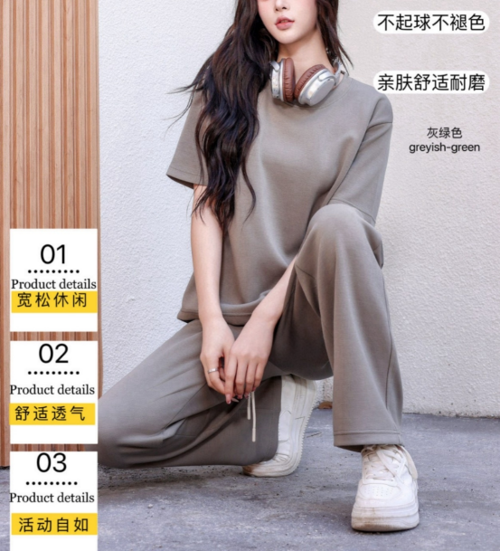 为什么人人都爱这种休闲运动套装: ✅ 穿搭可以无脑搭配,套上就能出门; ✅ 不挑身材,几乎所有人都可以穿; ✅舒适指数爆炸,随时随地freestyle。 今天我把这款套装分享给宝宝们~ 灰绿色/greyish-green 休闲时髦感并存的运动套装 每年都绝对是“穿搭困难户”的福音!! 人气单品深得我心为它爆灯!!!!! 热卖持续中款式面料升级 上身走路轻松无束缚恰到好处的版型