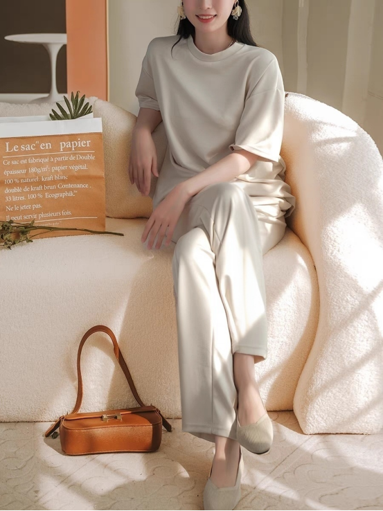 𝐎𝐒𝐌𝐈𝐂 𝐀𝐑𝐌𝐈𝐍全体姐妹都给我冲!敲黑板100次‼‼‼ 这款不抢回去,对不起我给你们找这么好的货!品质绝对放心‼ ✅舒适又时尚的运动套装,短袖t+裤子 ✅随性慵懒,搭个休闲鞋,一套穿上就可以出门逛街了 ✅透气性也灰常好,面料垂感狠不错,质地亲肤舒适, 杏卡色/Xingkase 这种套装,你走进大牌店,怎么可能下的来大几百!这个杏卡色高级大牌! 太洋气了!不瞎说!1000块即视感!真的值! 休闲运动套装,不用搭配就高级感