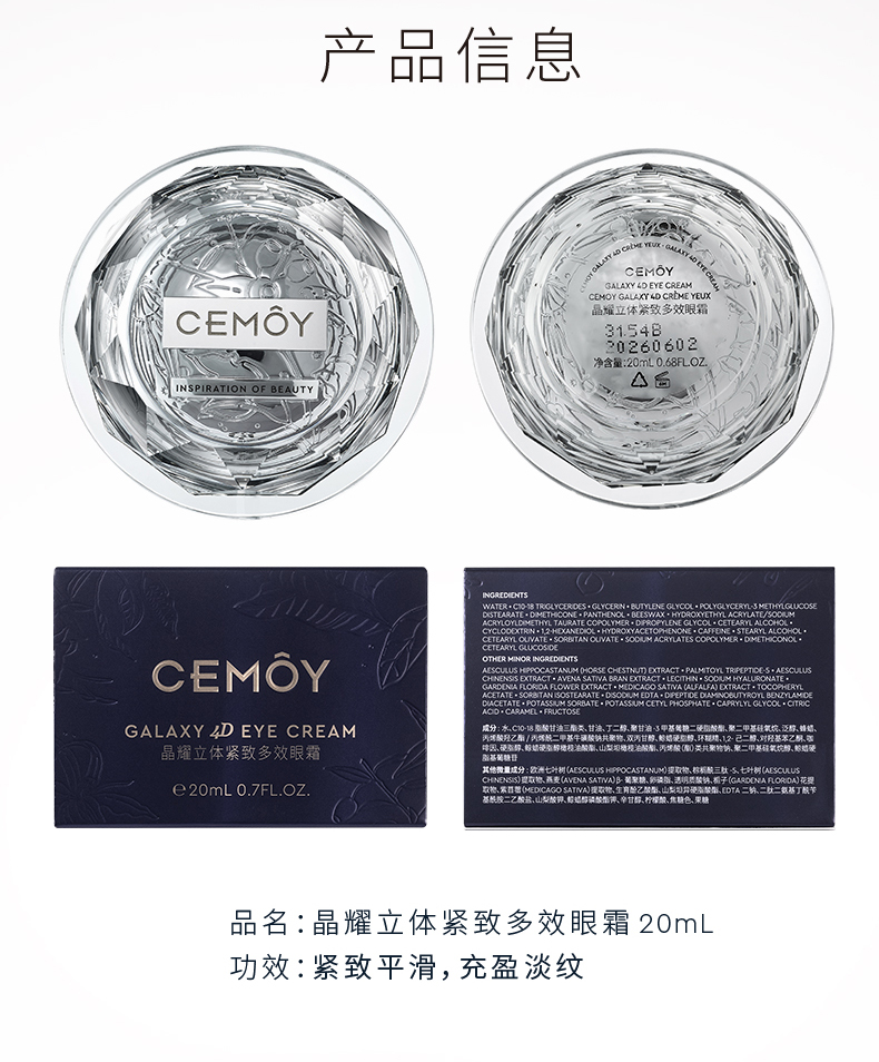 【双十一大促 买正装送正装】CEMOY澳诗茉晶耀立体紧致多效眼霜,化身眼部普拉提大师 改善眼袋及眼睛浮肿