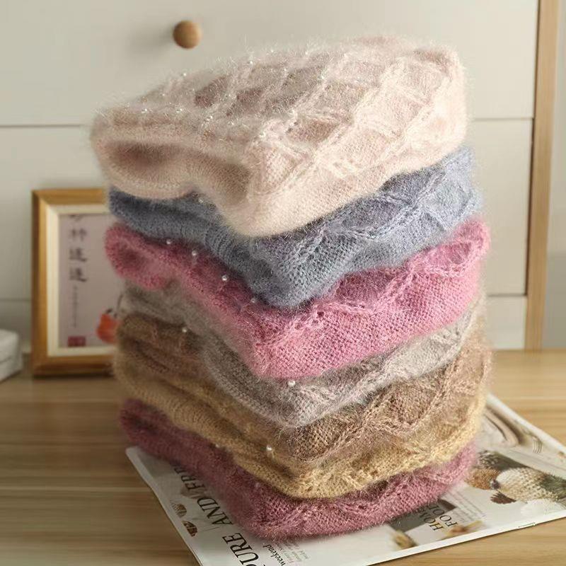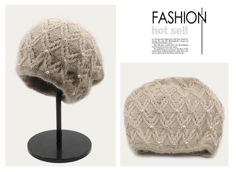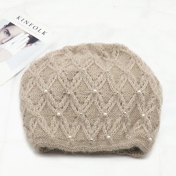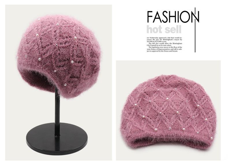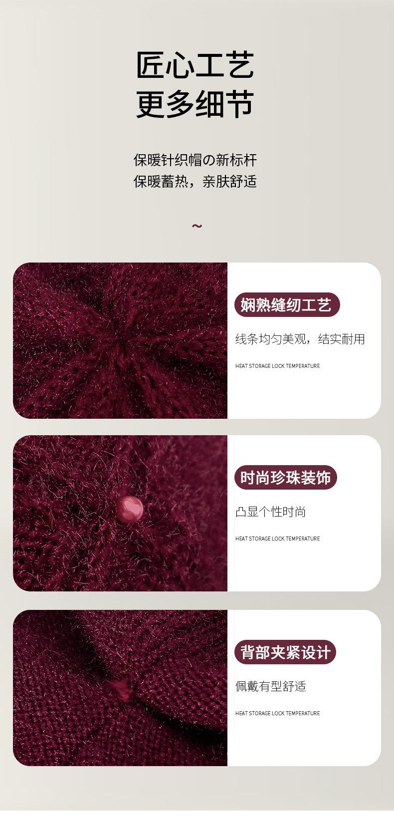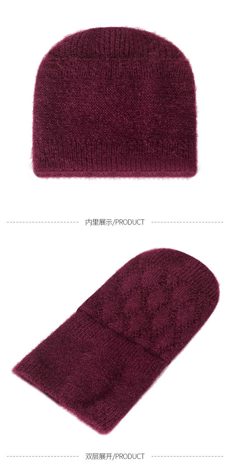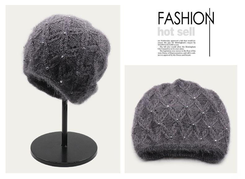 冬季新款女松鼠绒保暖珍珠针织毛线帽中老年护耳毛线帽老太妈妈帽