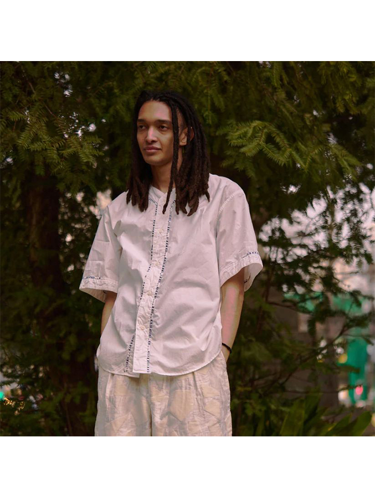 KUON Sashiko Trimmed Koikuchi Shirt 职人手工刺绣棒球短袖衬衫