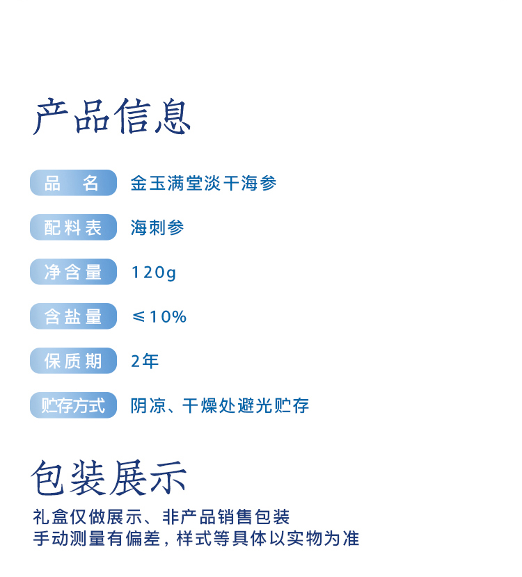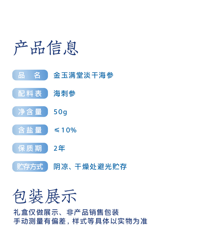 [獐子岛]黑盒有机淡干海参(50g/盒、120g/盒、258g/盒)