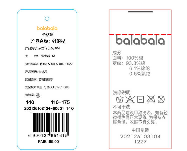 【商场同款】巴拉巴拉童装儿童毛衣男童2026新款春新年打底衫纯棉
