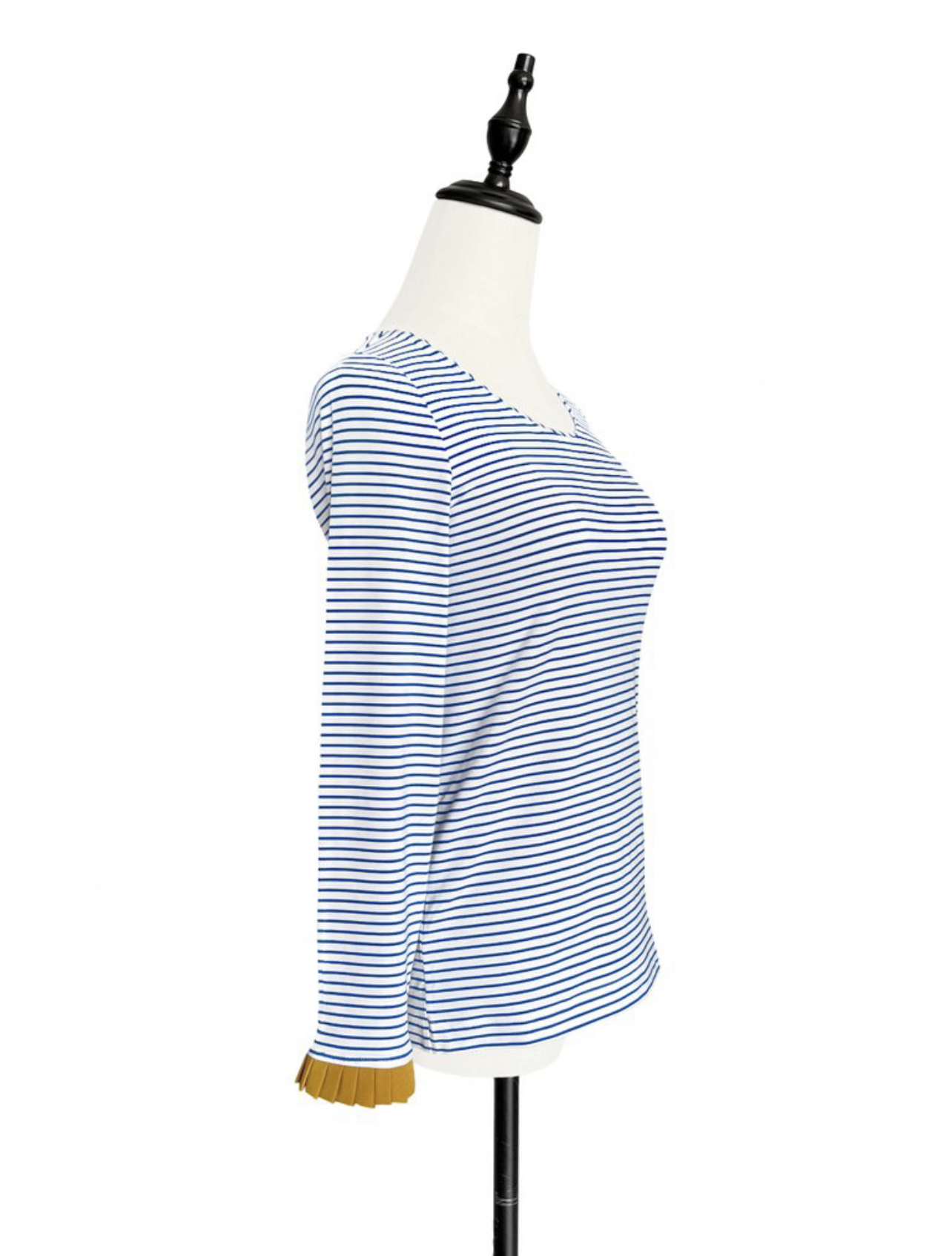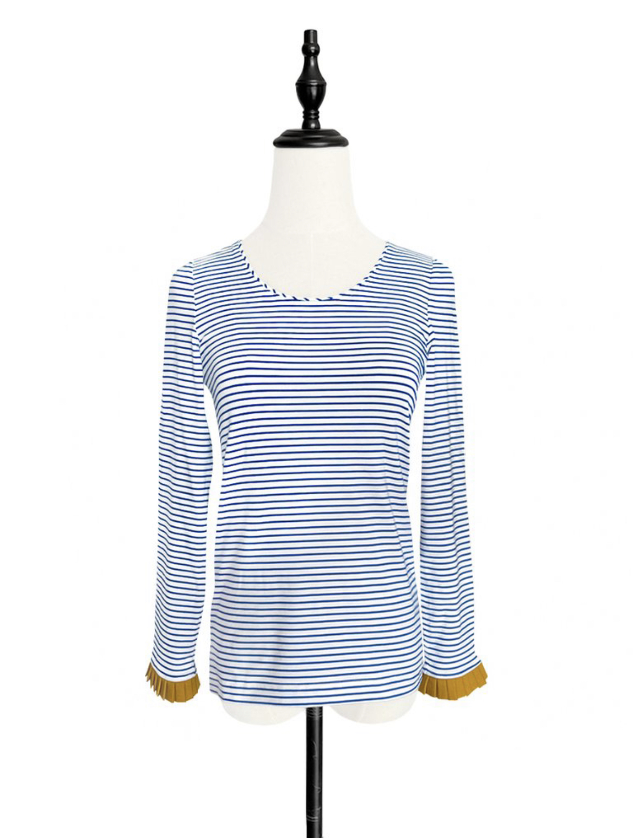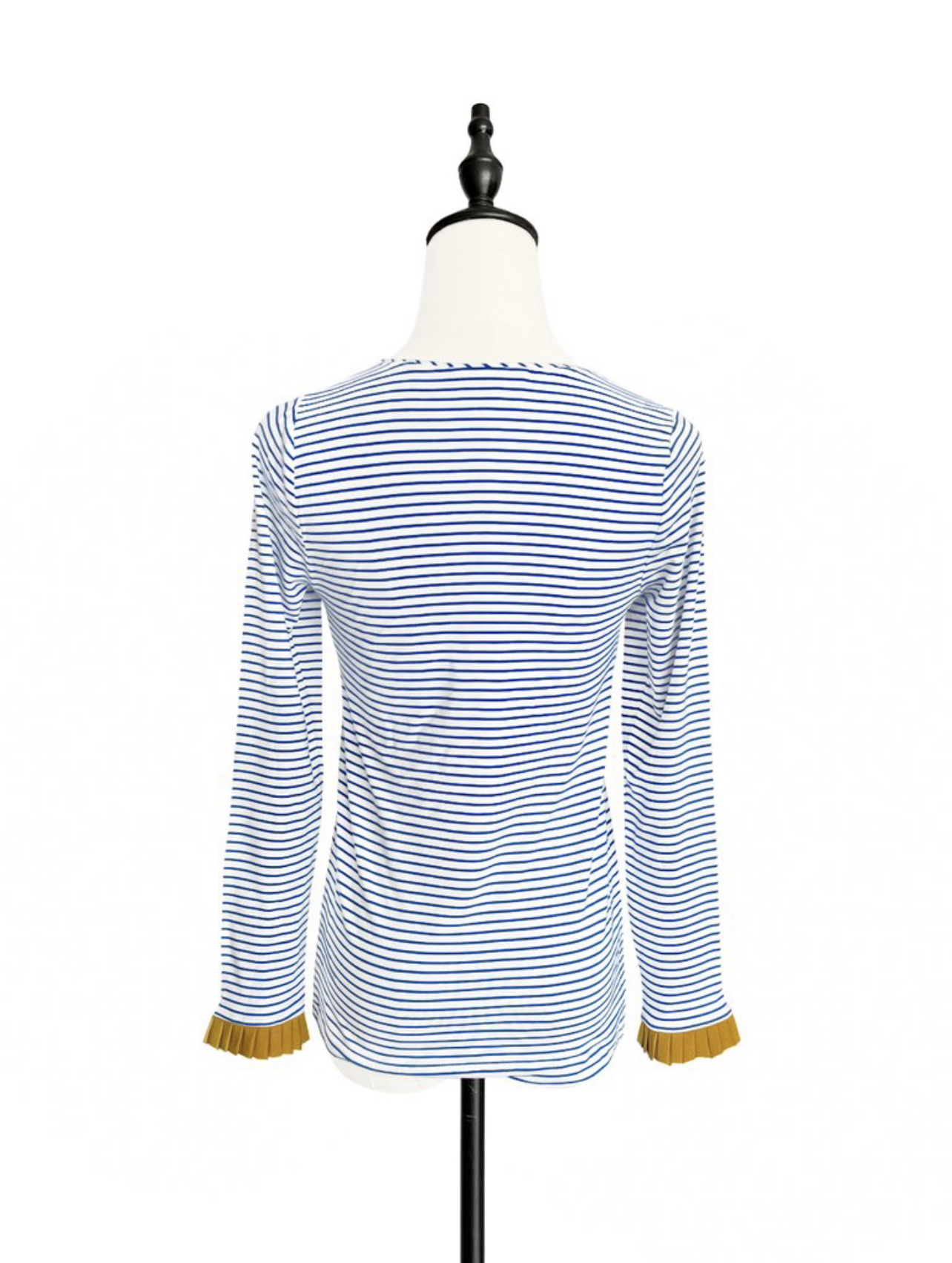 TYNVIE 撞色百褶袖口长袖上衣 - 蓝白条纹