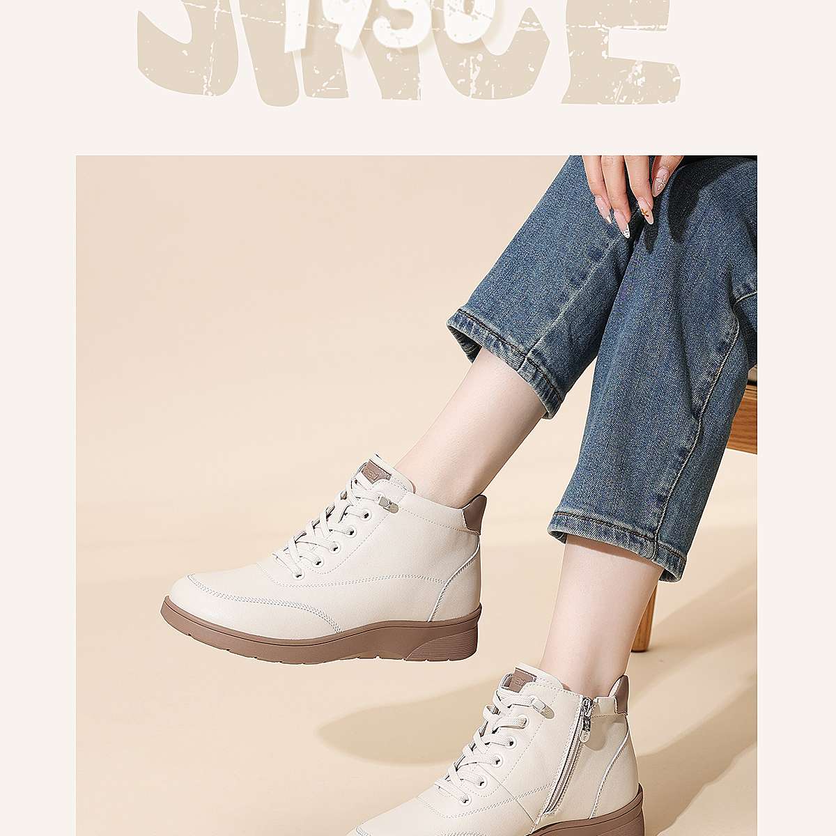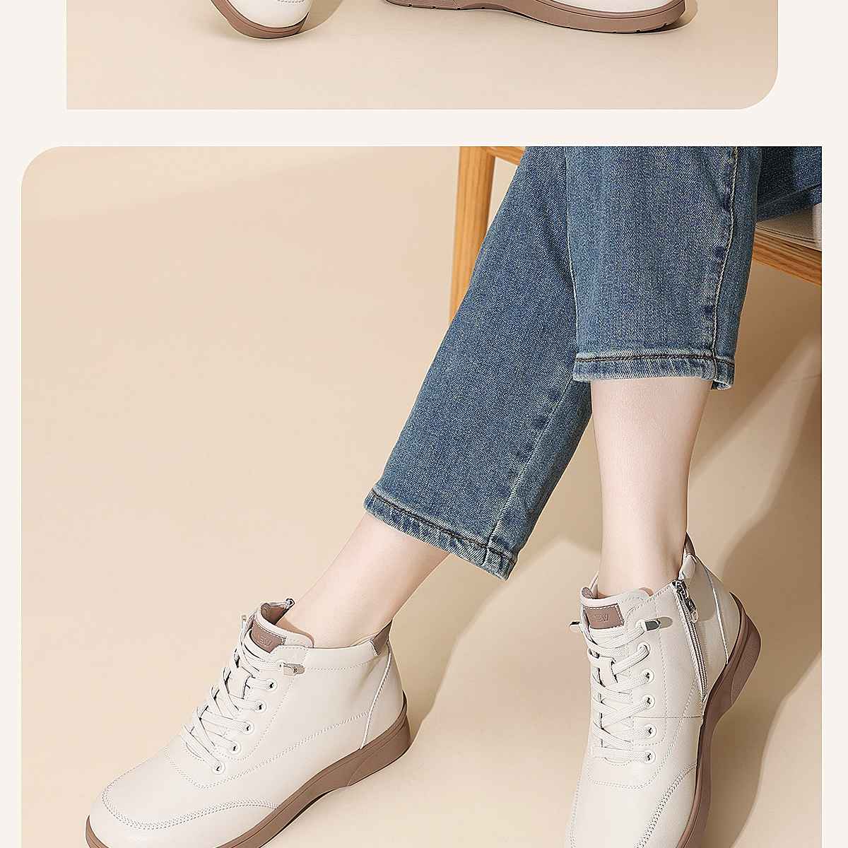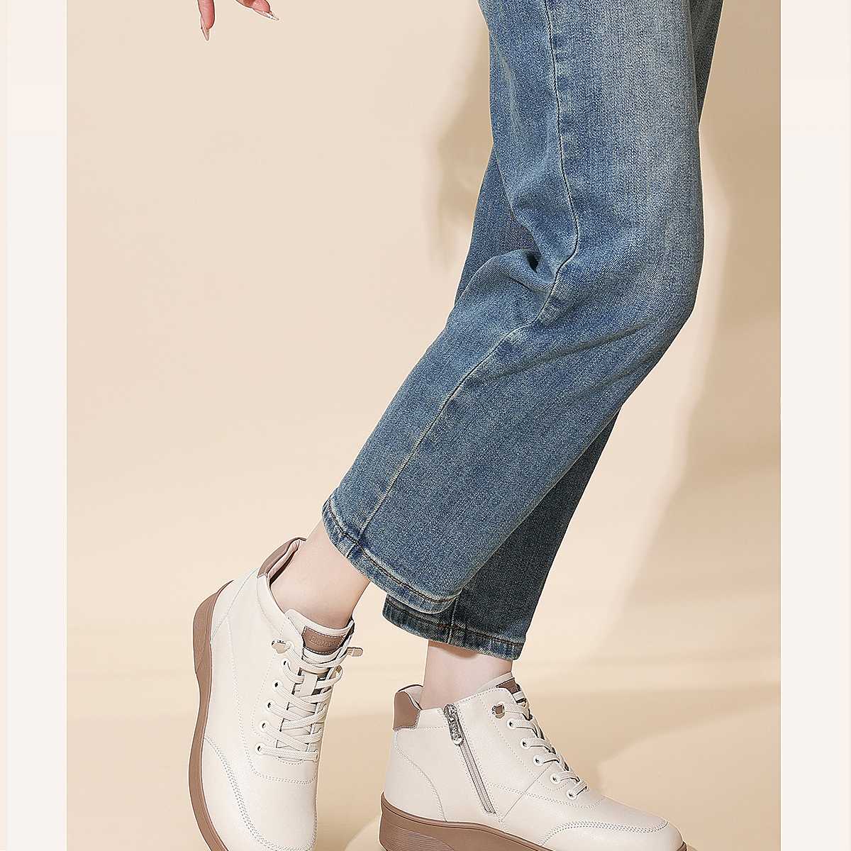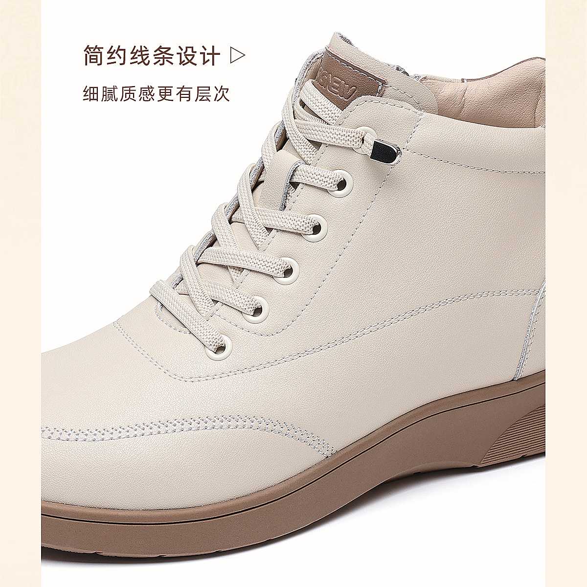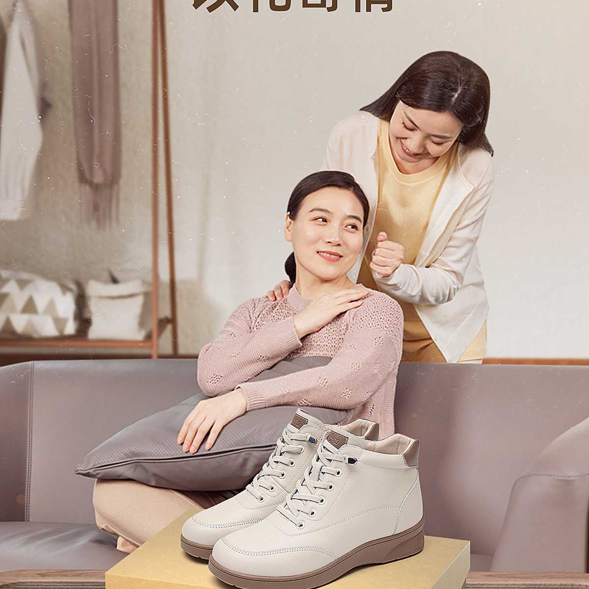 真皮女短靴高帮加绒保暖妈妈鞋舒适软底马丁靴5M203-8TZY