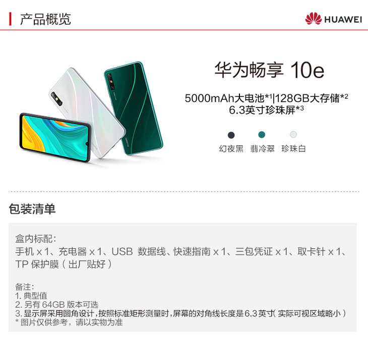 华为/HUAWEI畅享10e 4GB+64GB 幻夜黑 移动联通电信4G全网通