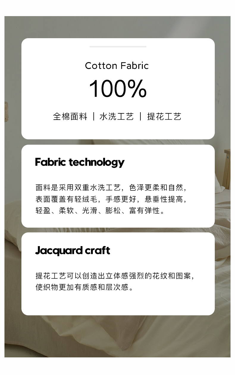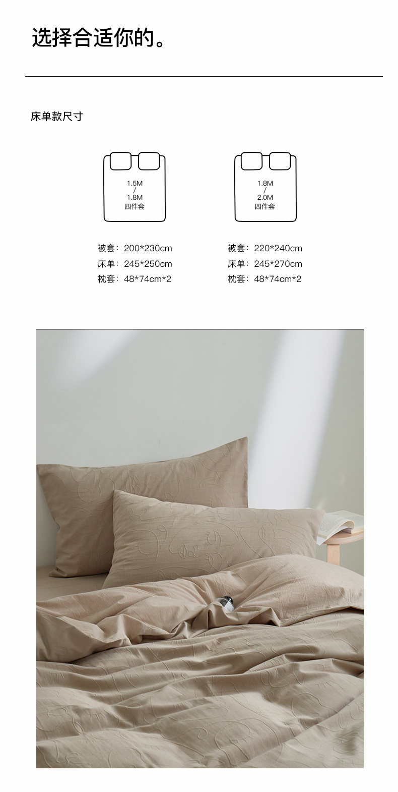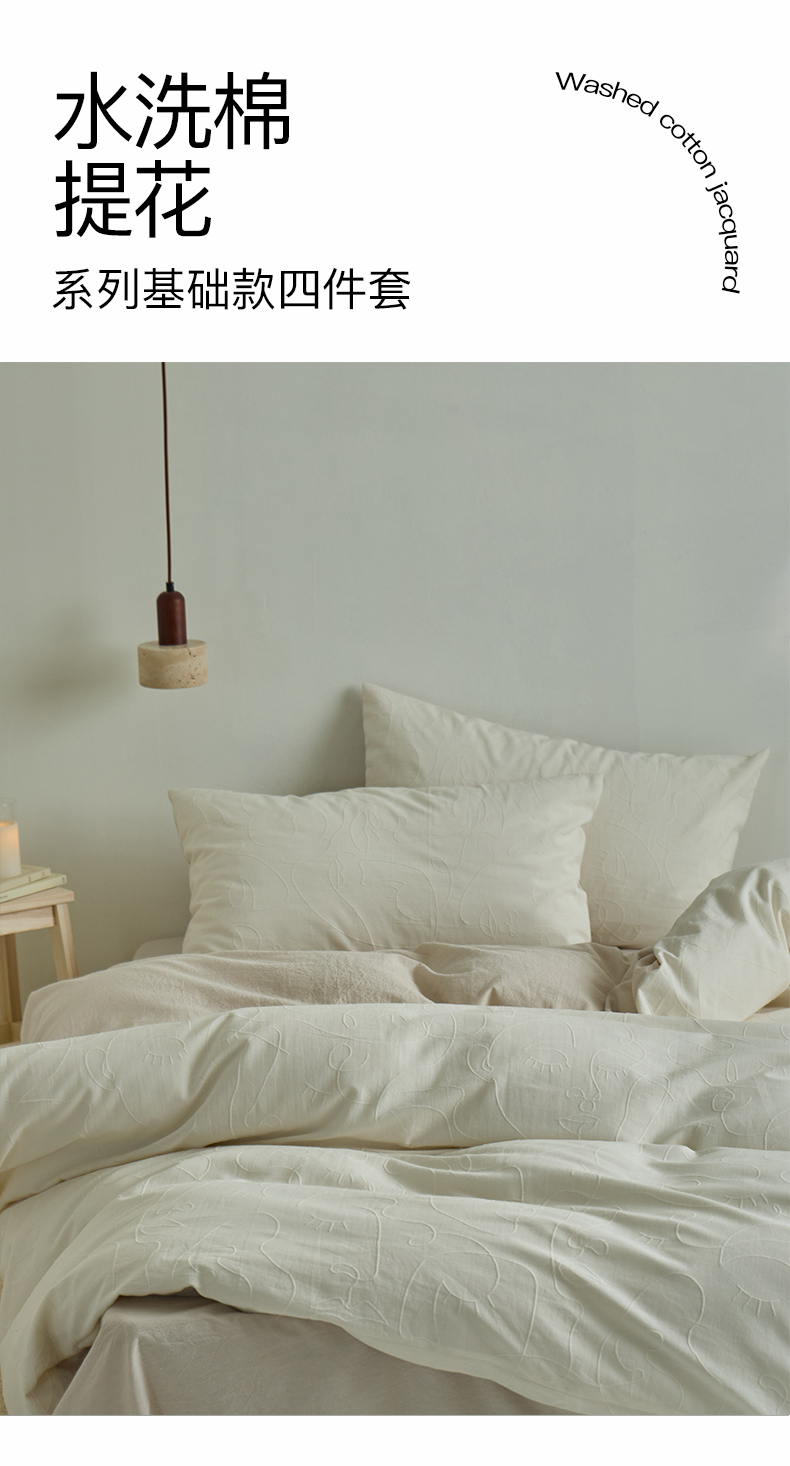 顶柔 水洗棉提花四件套双层纱婴儿级触感,柔然舒适;3D立体提花+水洗工艺,将纱布柔软度发挥到极致