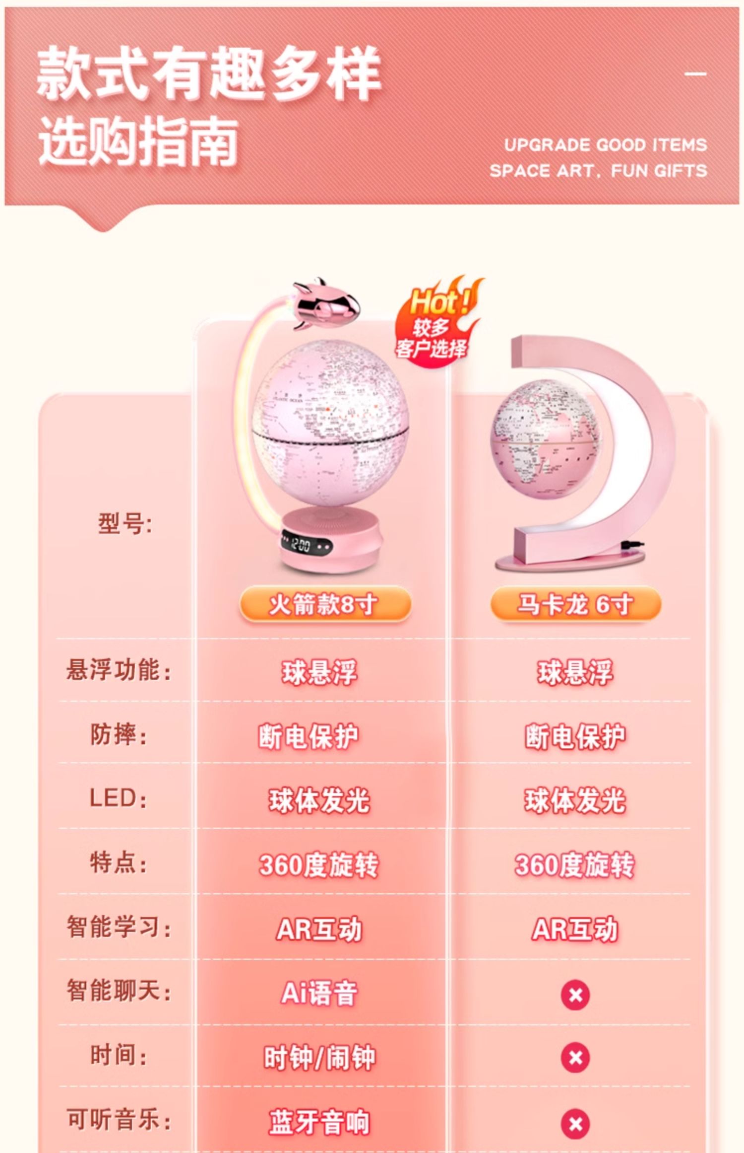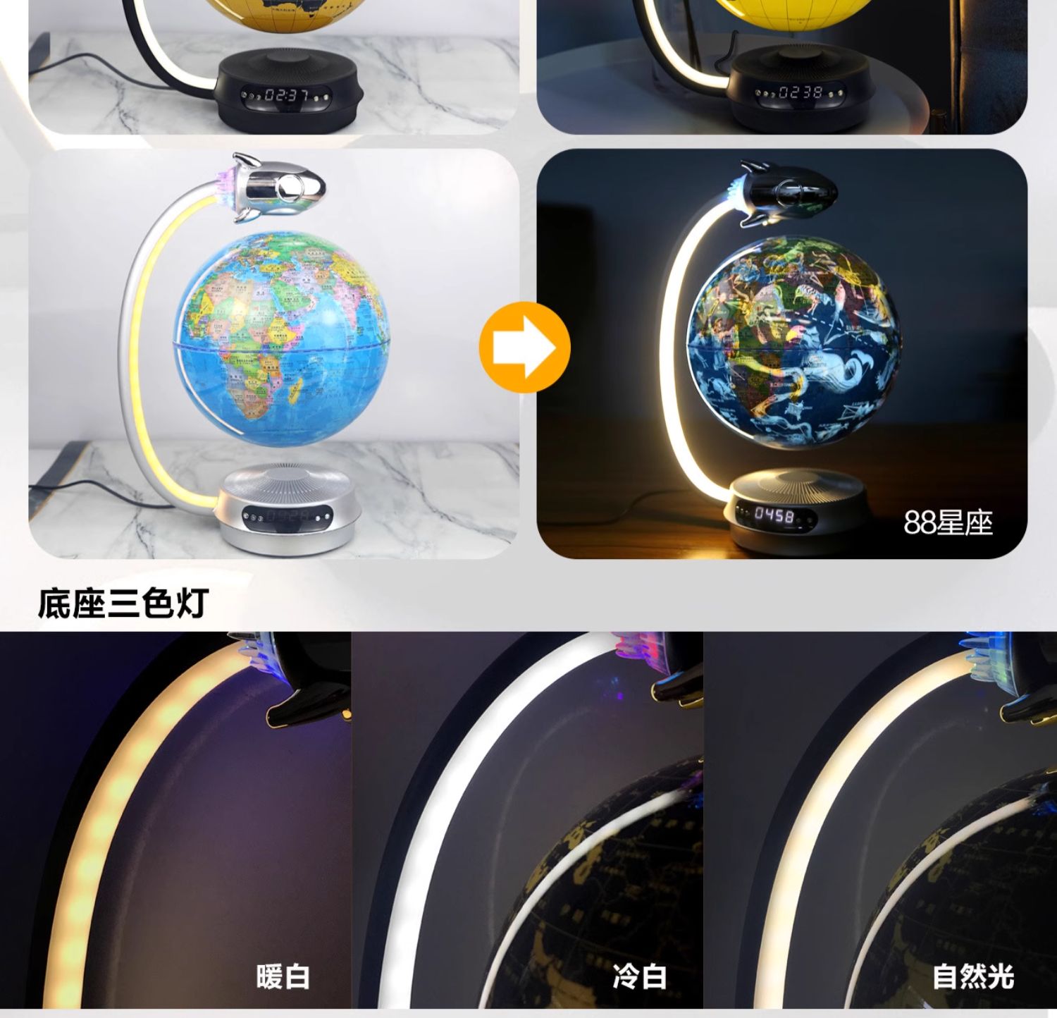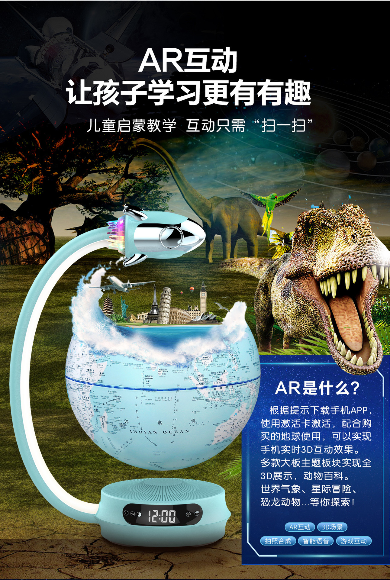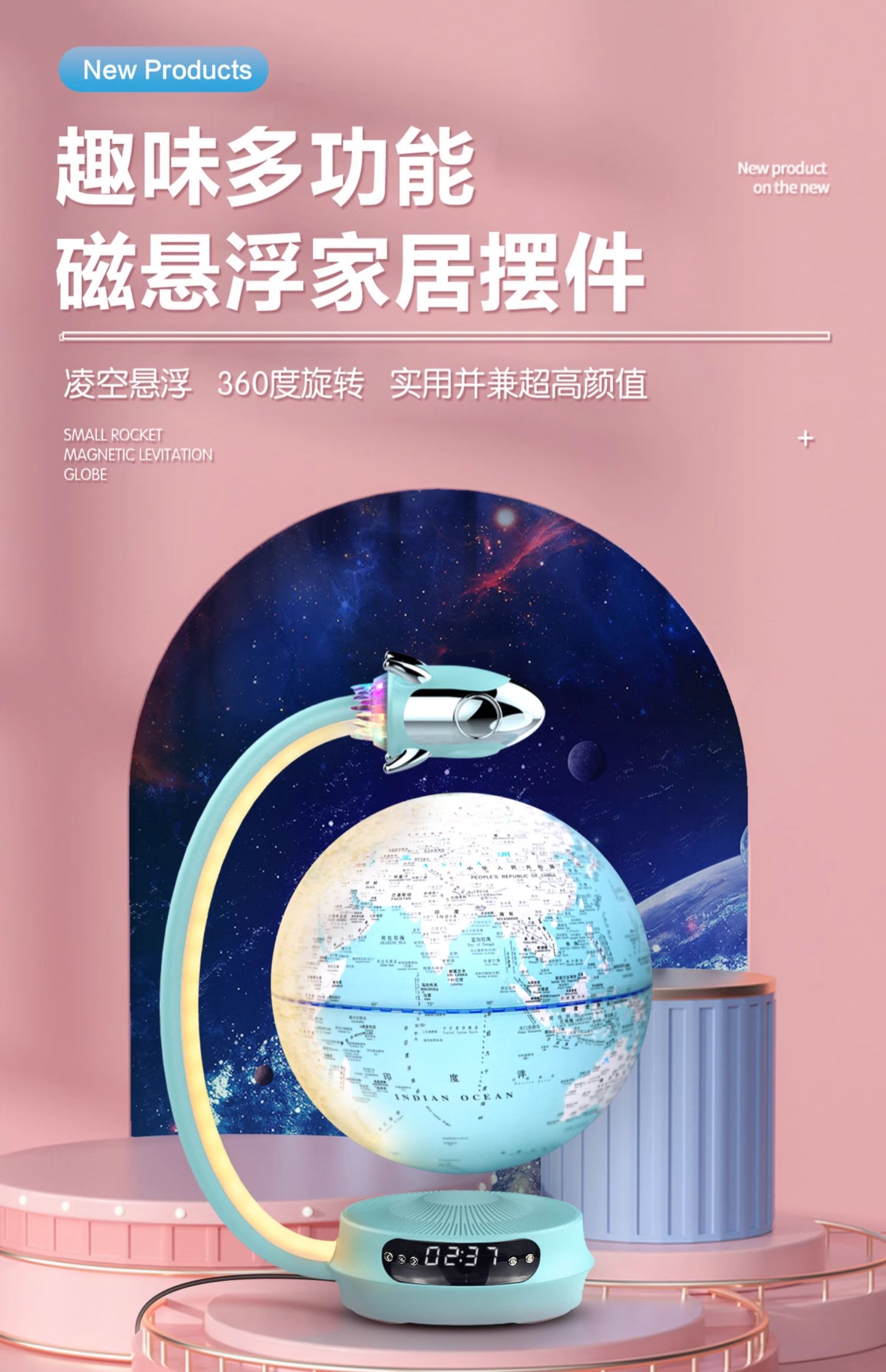 小火箭 磁悬浮 AR地球仪 马卡龙配色 自转 可做蓝牙音响数字时钟 学生礼物【AR+AI+闹钟+灯光】