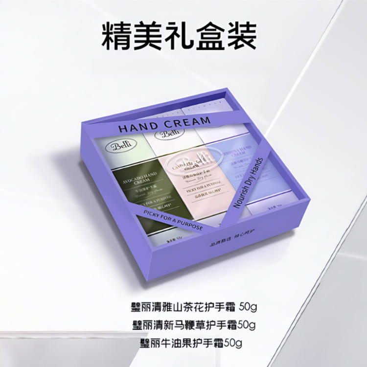 1.3支礼盒版产品香型可更换,单笔订单任意拍3支不同香型护手霜即赠礼盒版包装,否则默认3种香型产品各发一支。