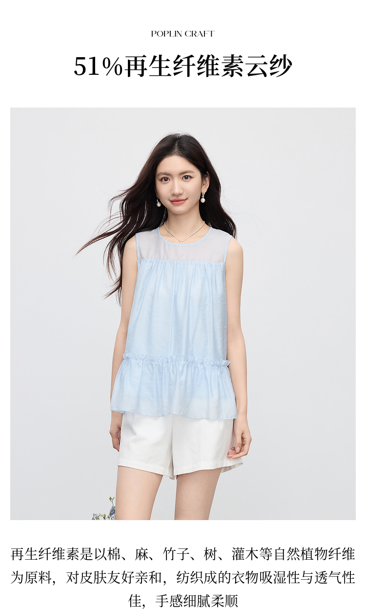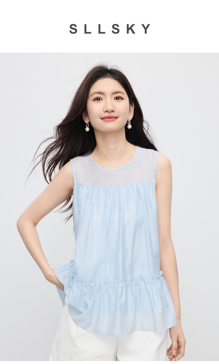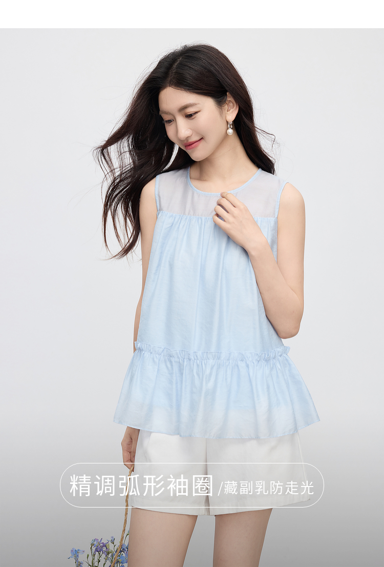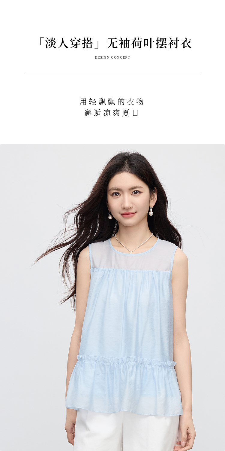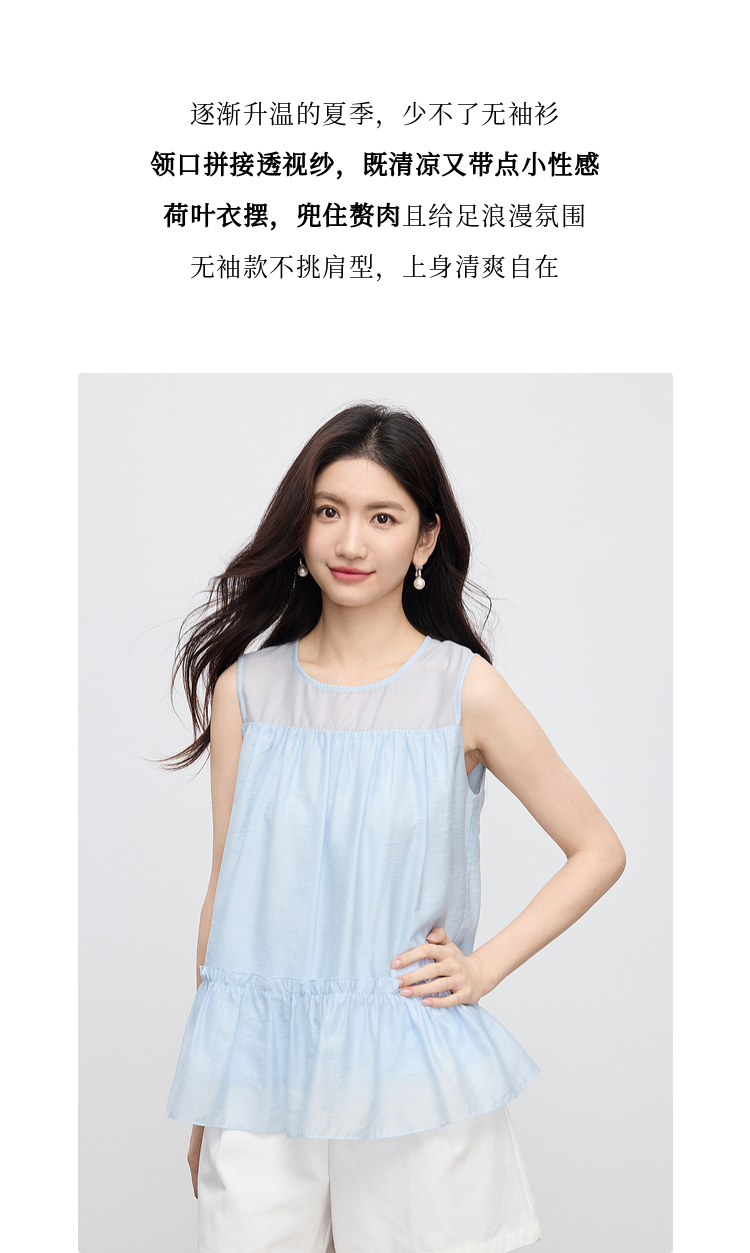 【07/30新品6.5折】熙世界淡人穿搭荷叶摆无袖衬衫女夏日新款设计感宽松圆领背心上衣
