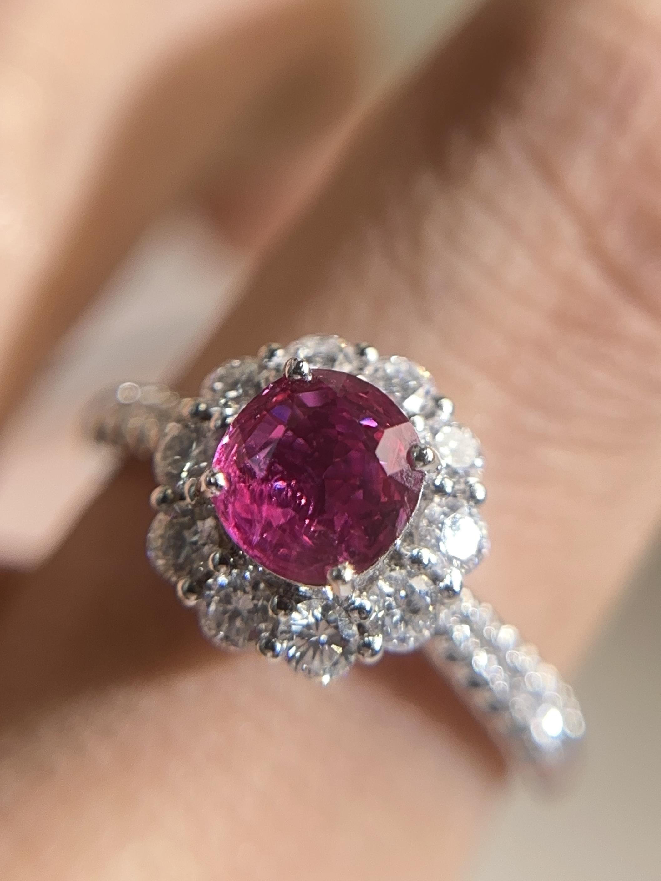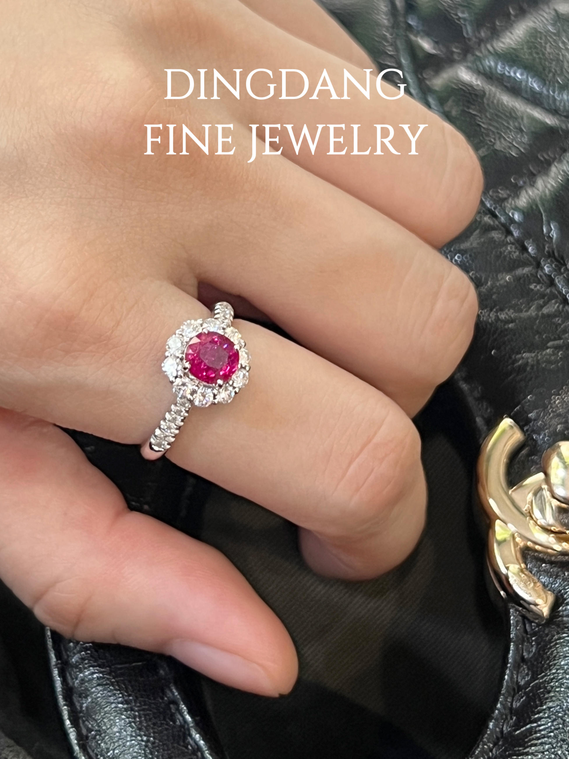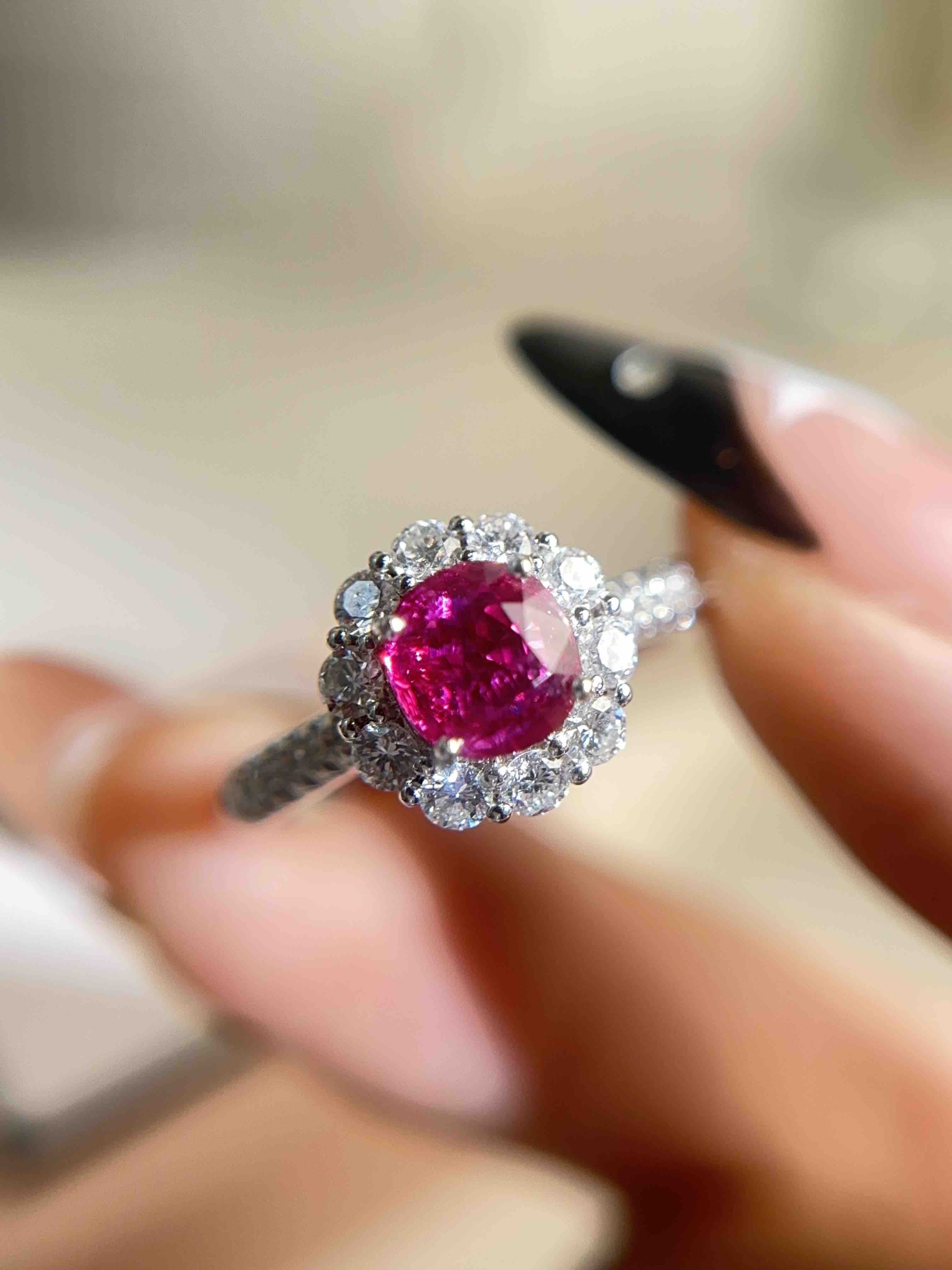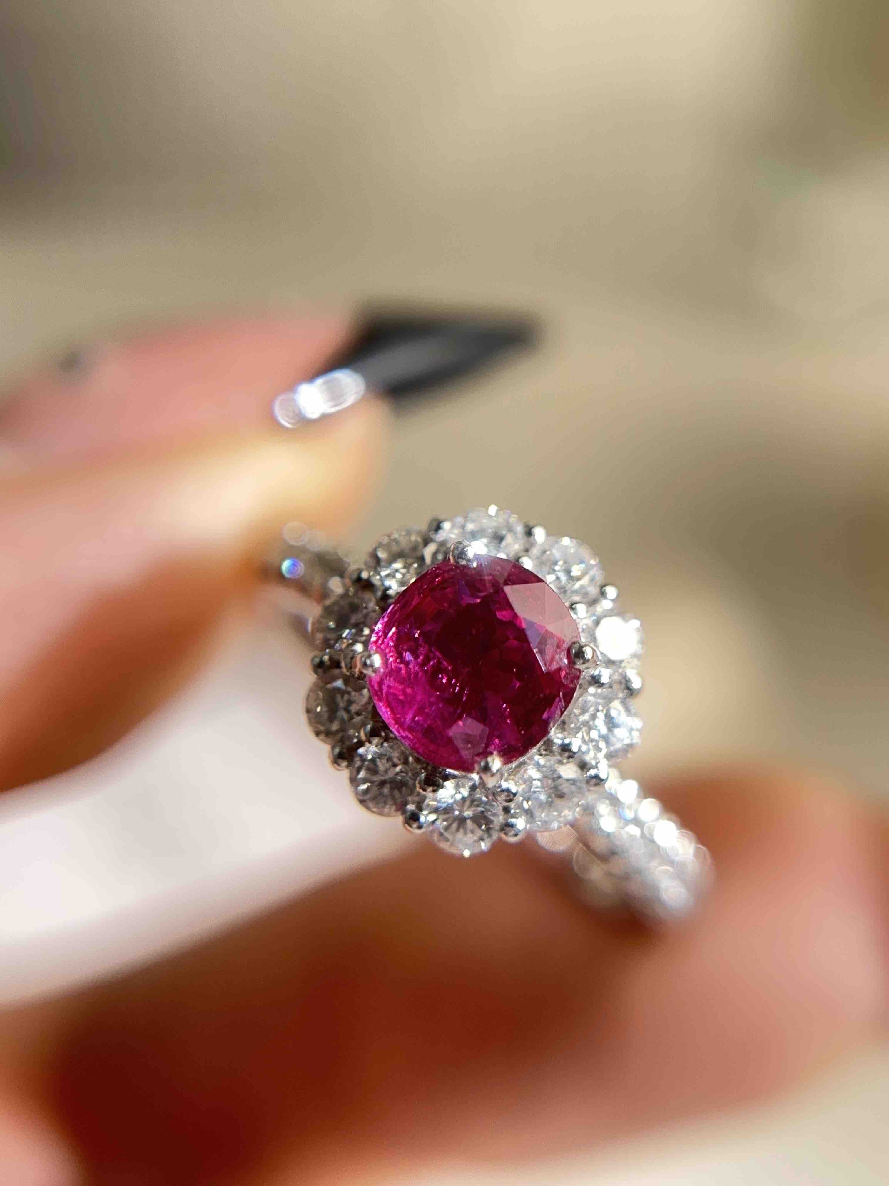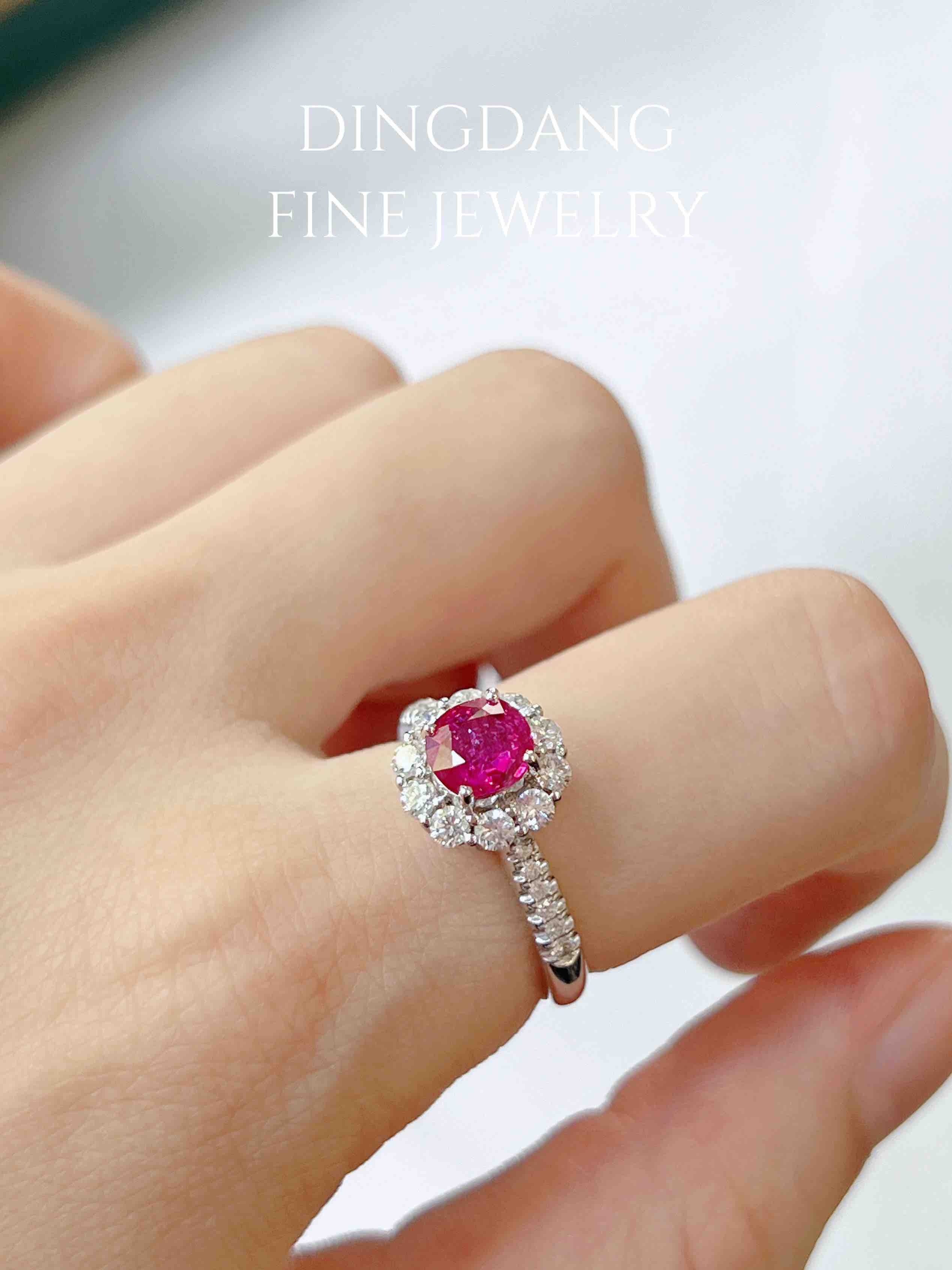 红宝石 鸽血红 vvd无烧 1.03ct D0. 62ct 钻戒