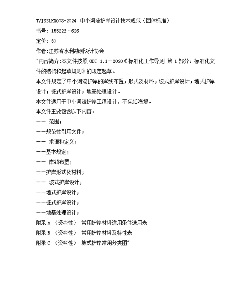 T/JSSLKX008-2024 中小河流护岸设计技术规范(团体标准)