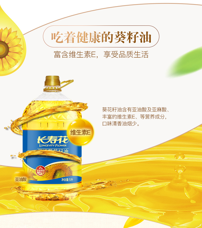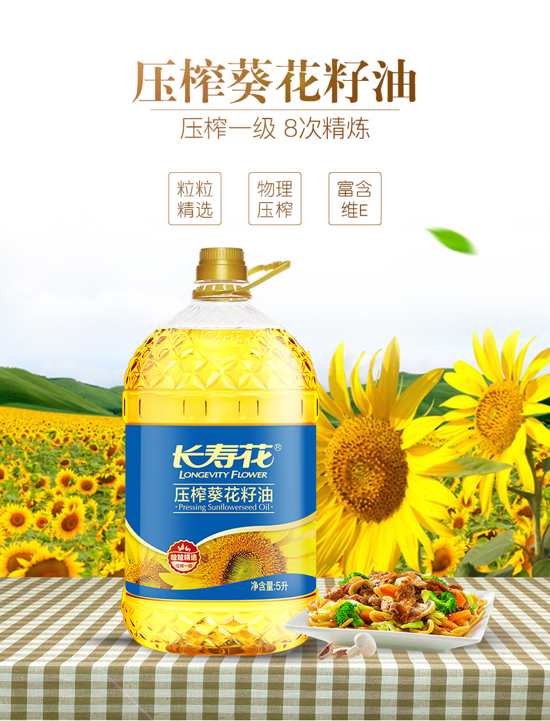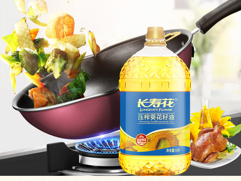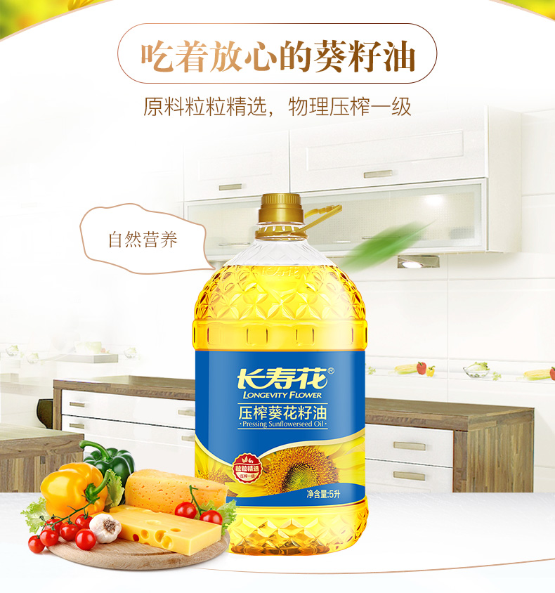 长寿花压榨葵花籽油5L充氮保鲜物理压榨一级健康烘焙食用油植物油