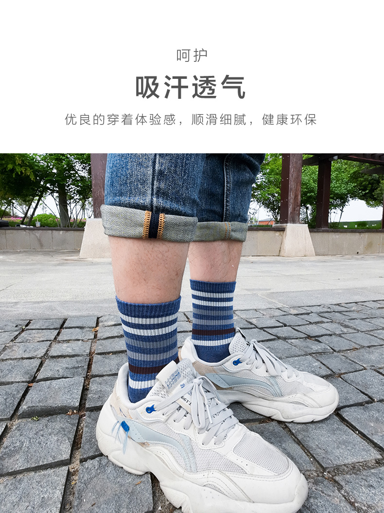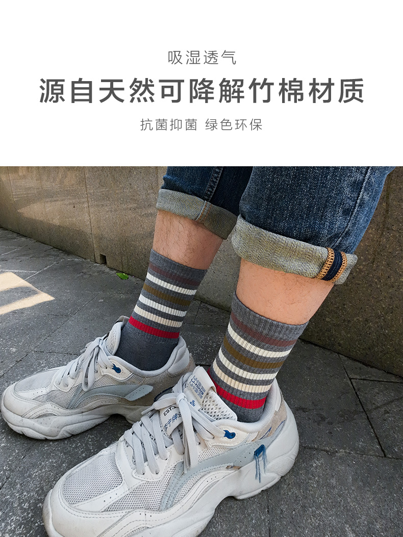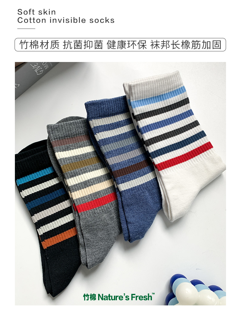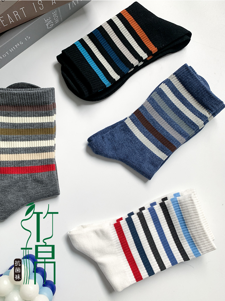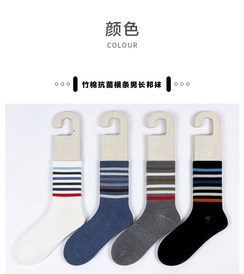 23秋冬新品男士竹棉抗菌健康环保运动学院风长橡筋长邦男袜