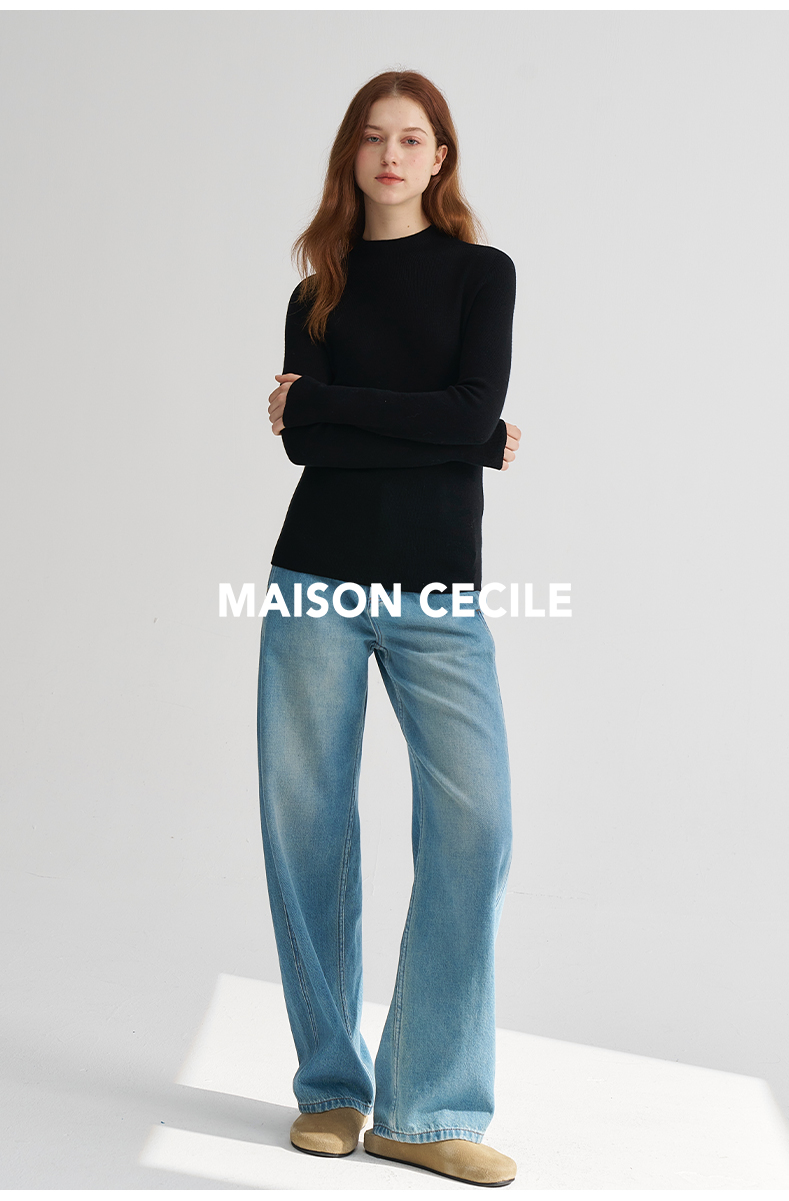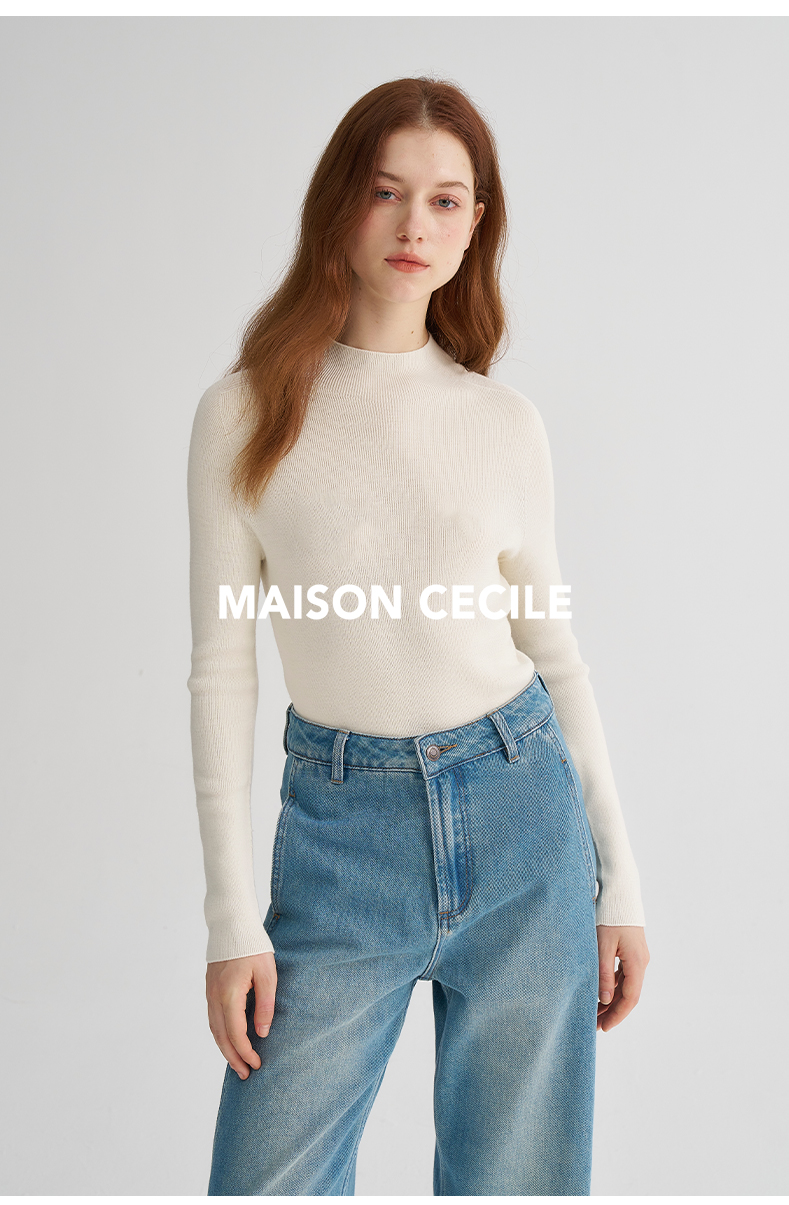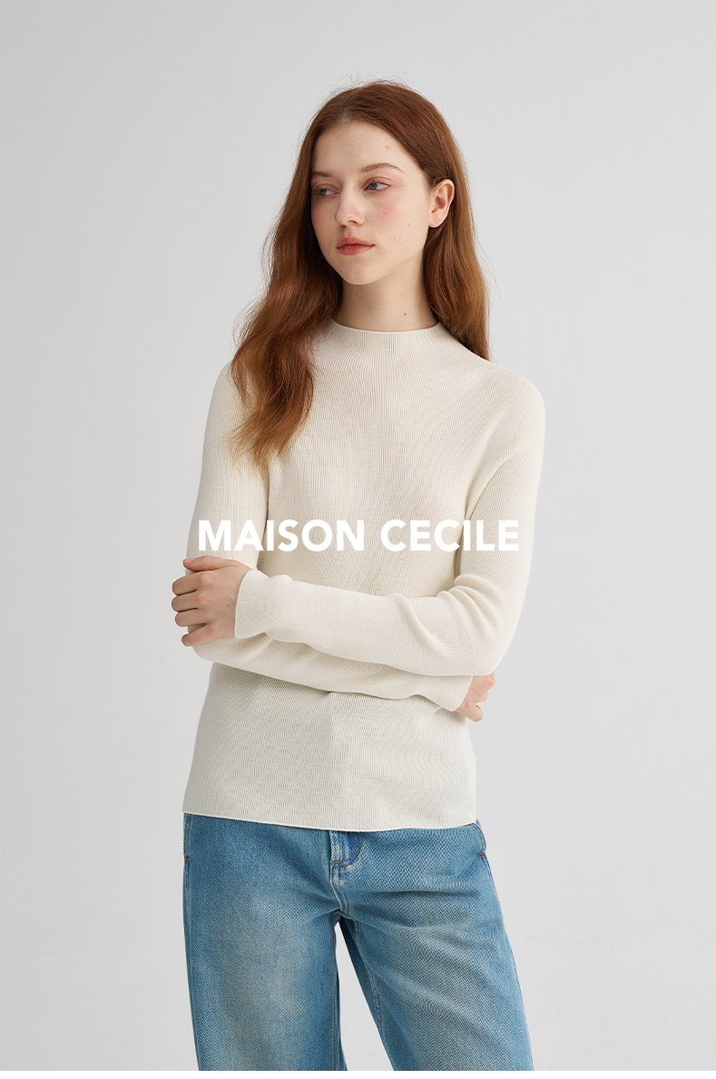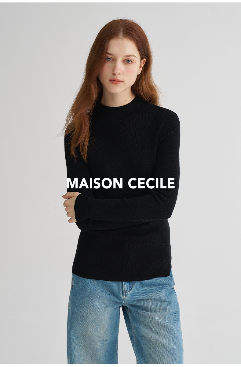 MAISON CECILE经典双股精纺羊毛纱线加厚半高领针织衫