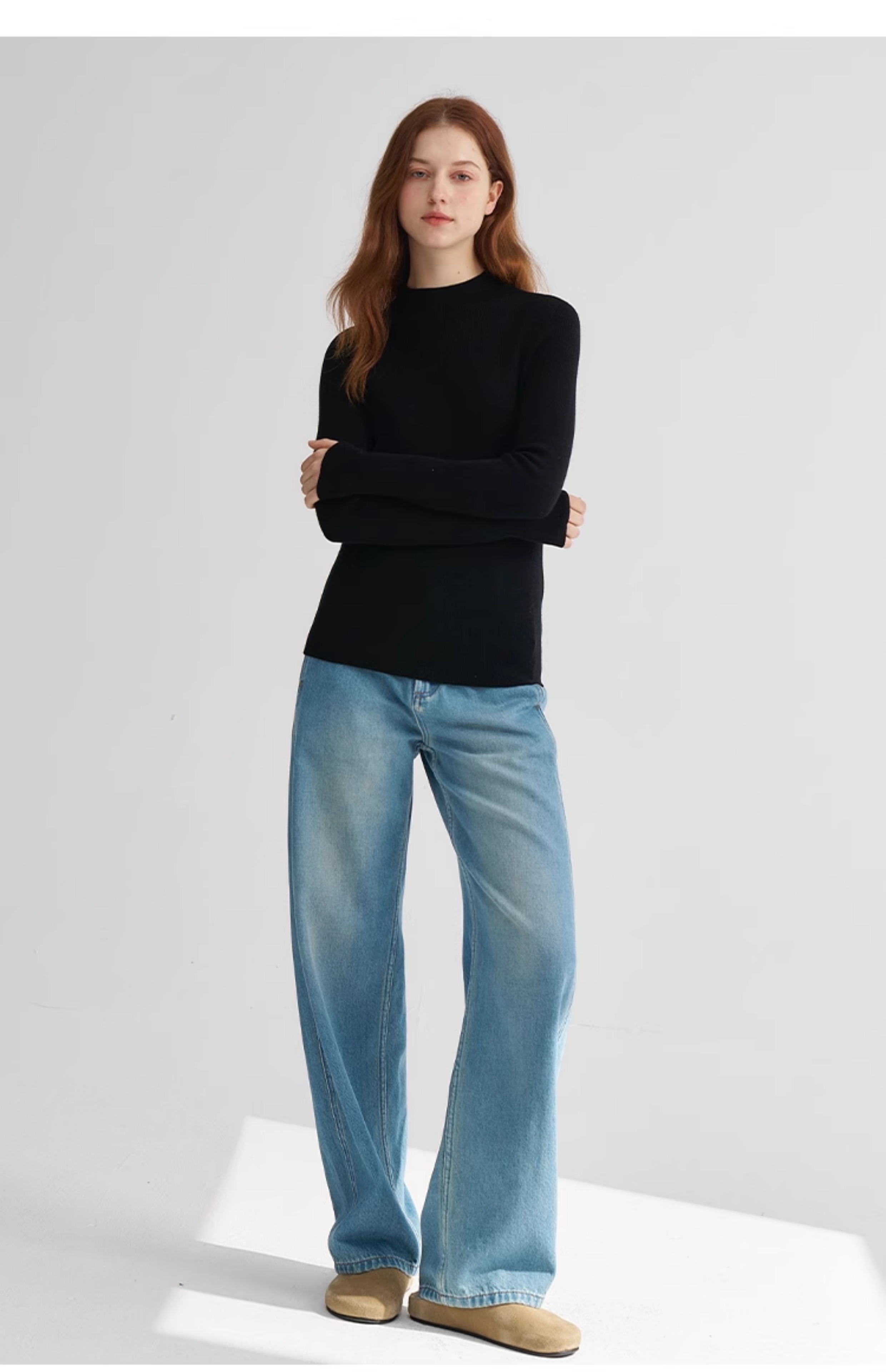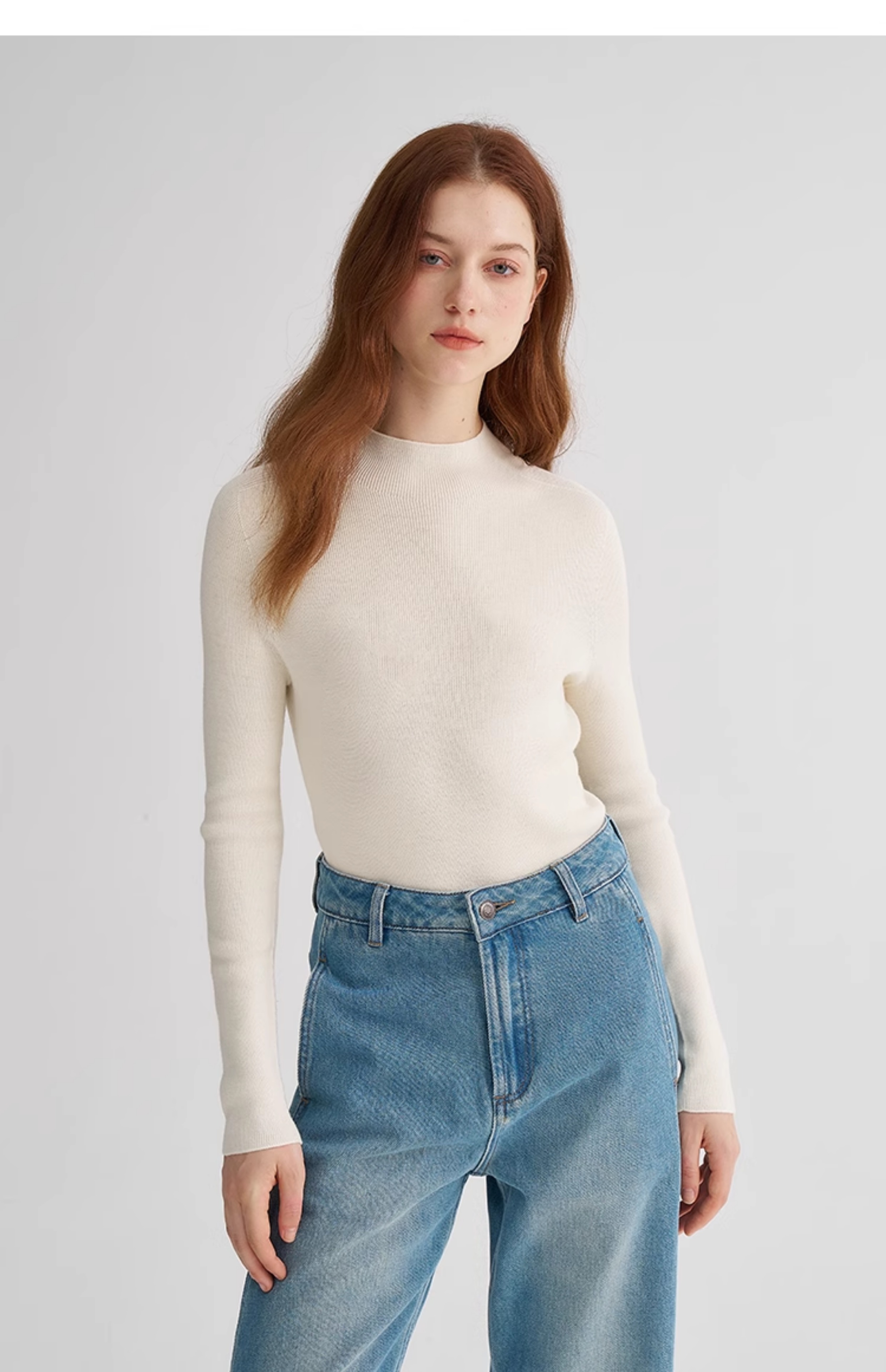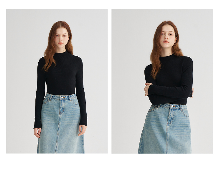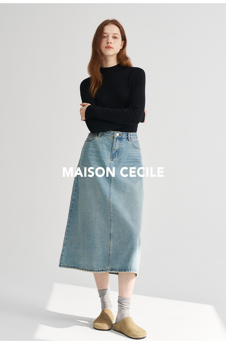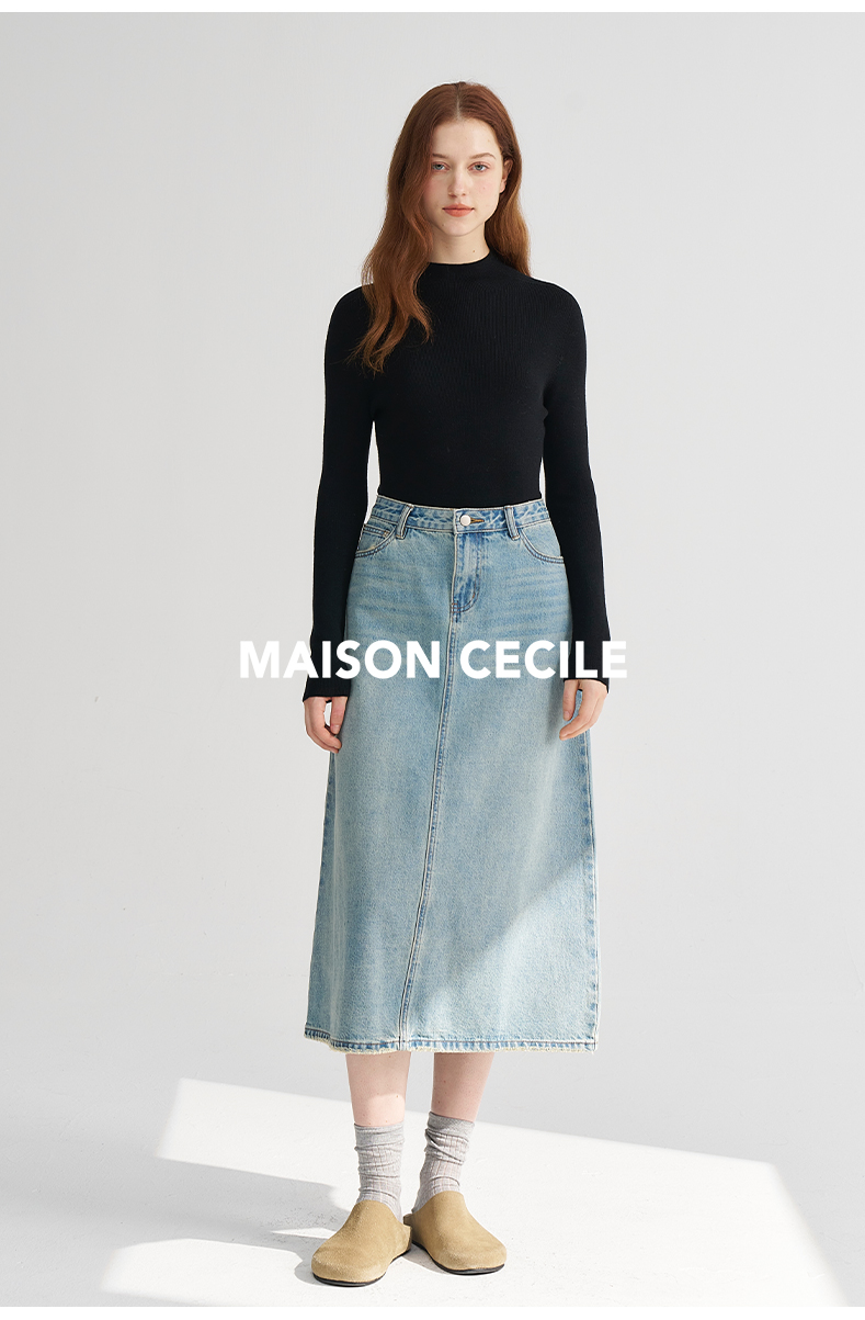 MAISON CECILE经典双股精纺羊毛纱线加厚半高领针织衫