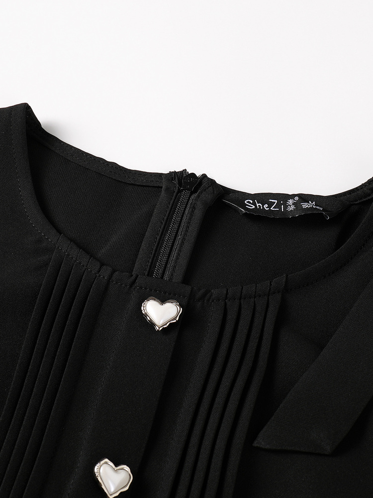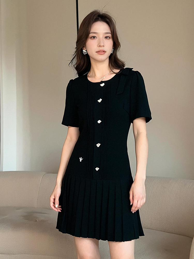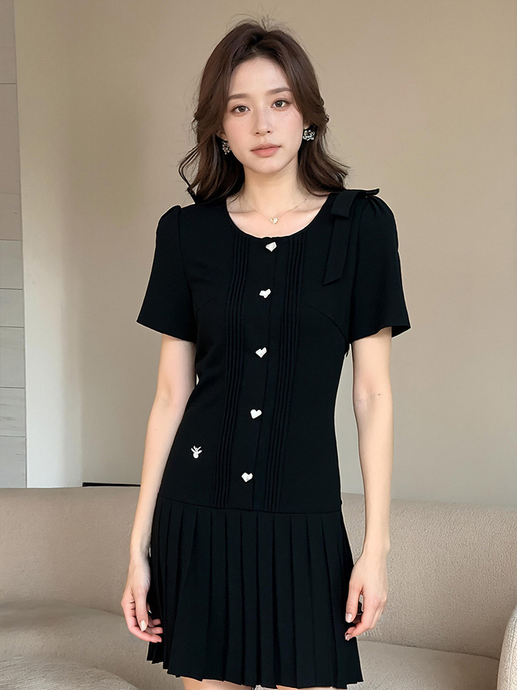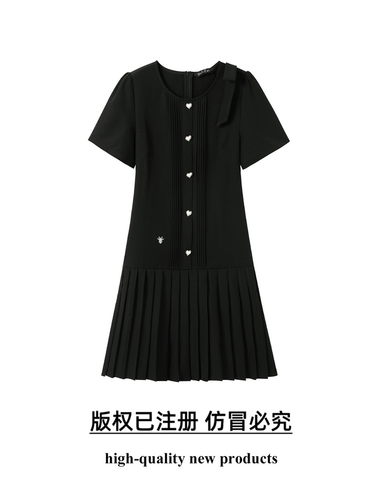 【清仓超15天不保价】奢姿大码女装2025夏季爱心扣装饰时尚连衣裙胖妹妹百褶设计裙子9952835029【1】