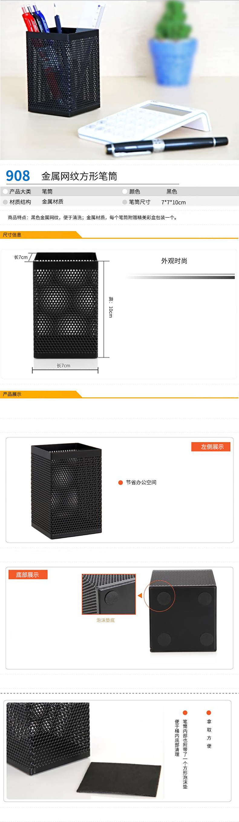 得力908笔筒(黑)