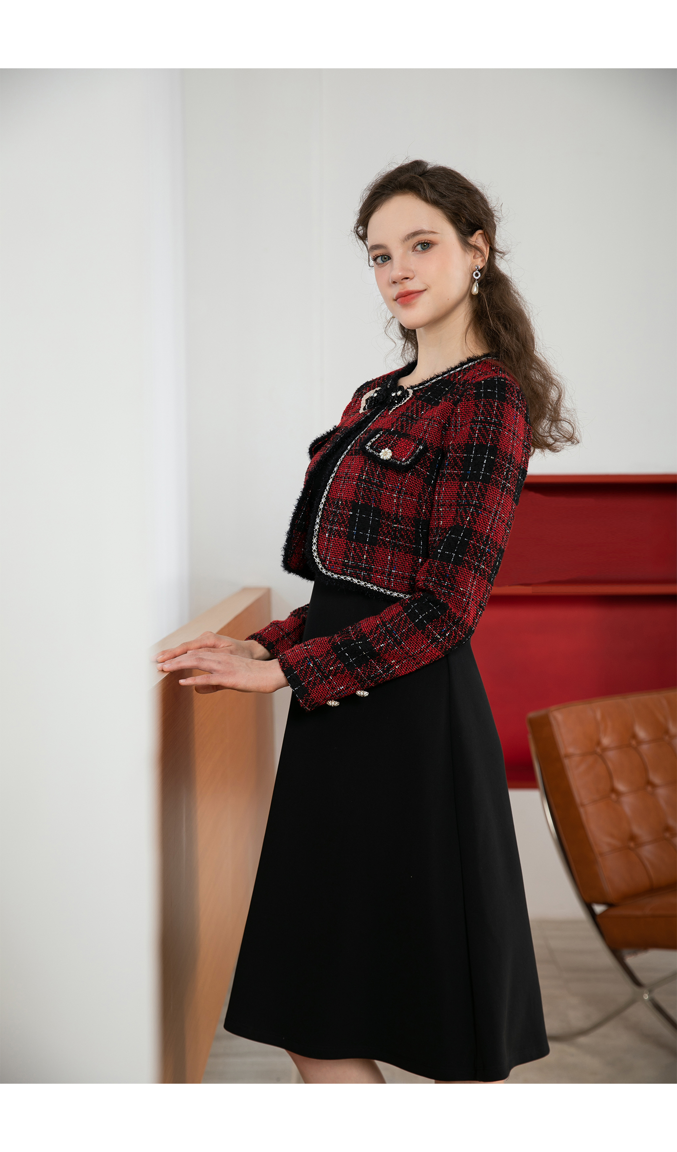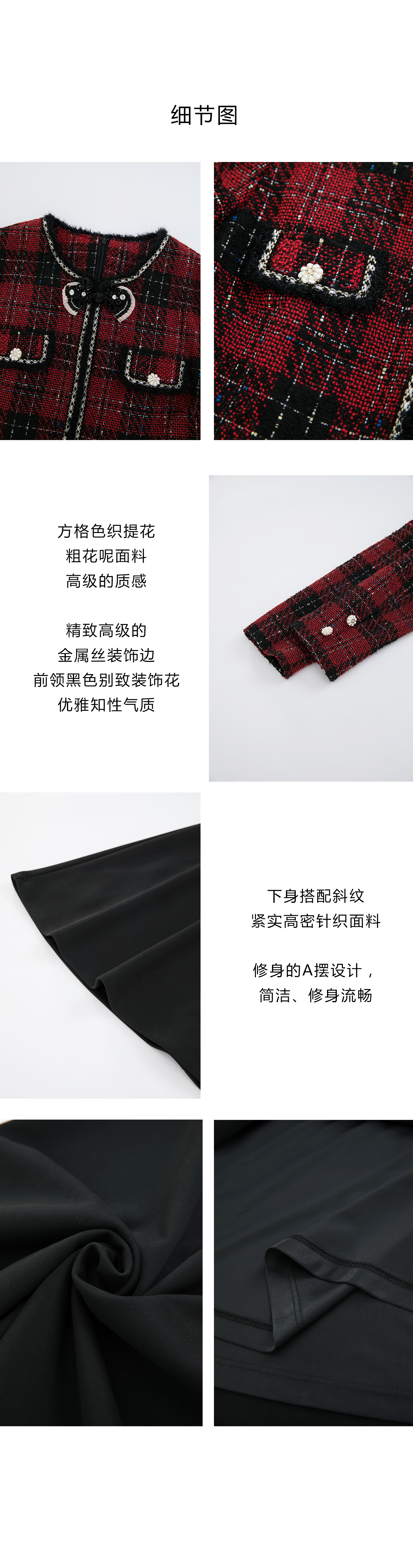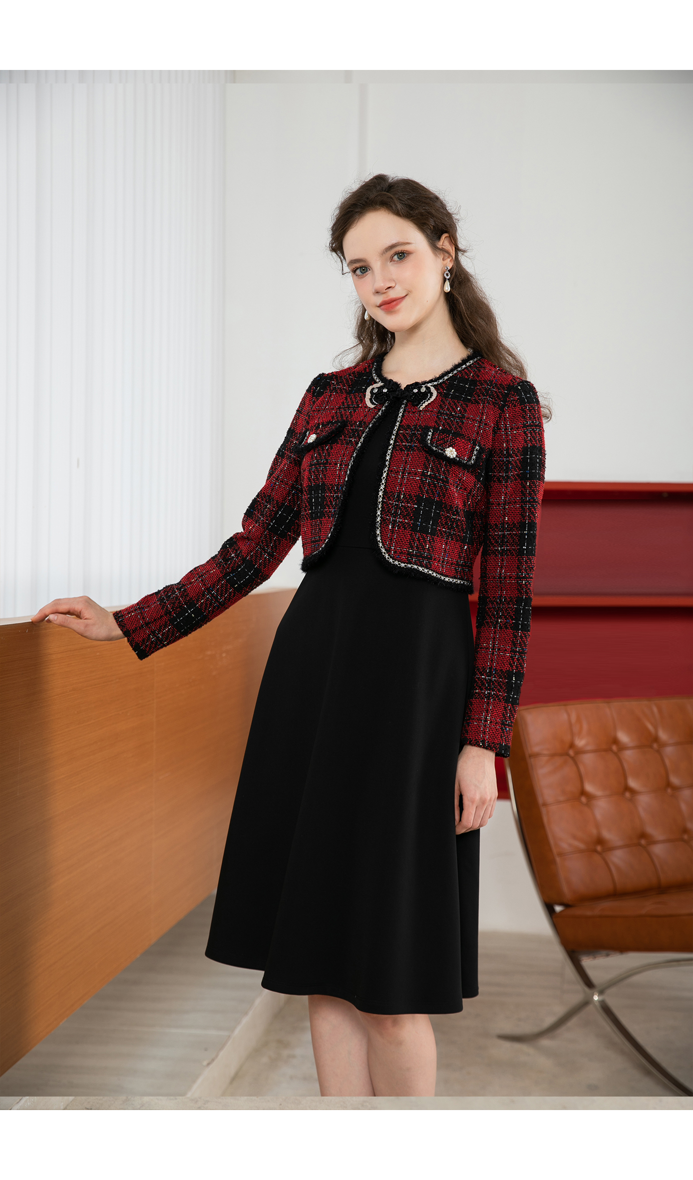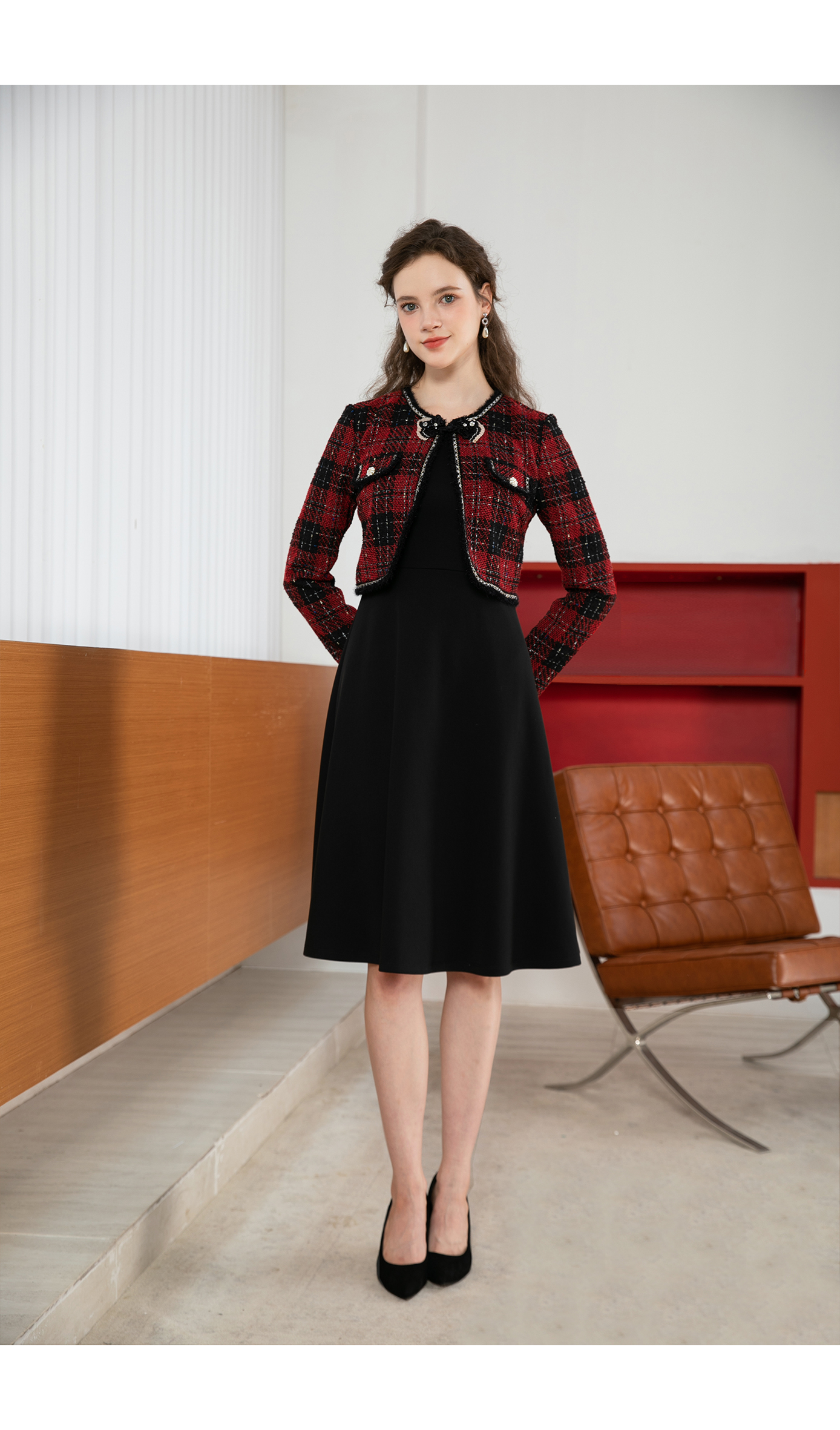 司歌假两件小香风连衣裙收腰弹力A901045y