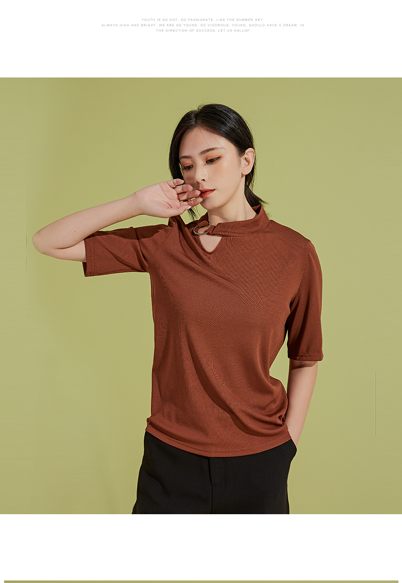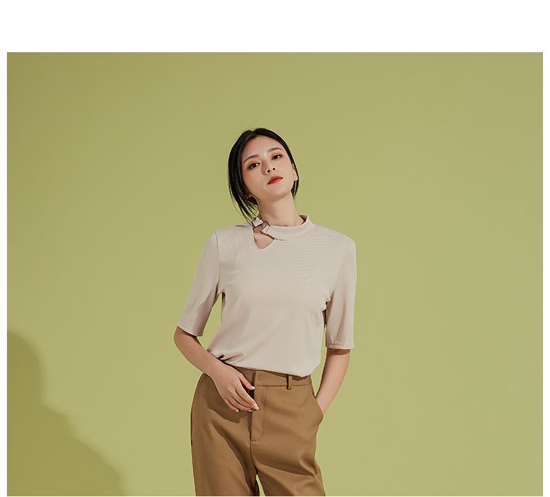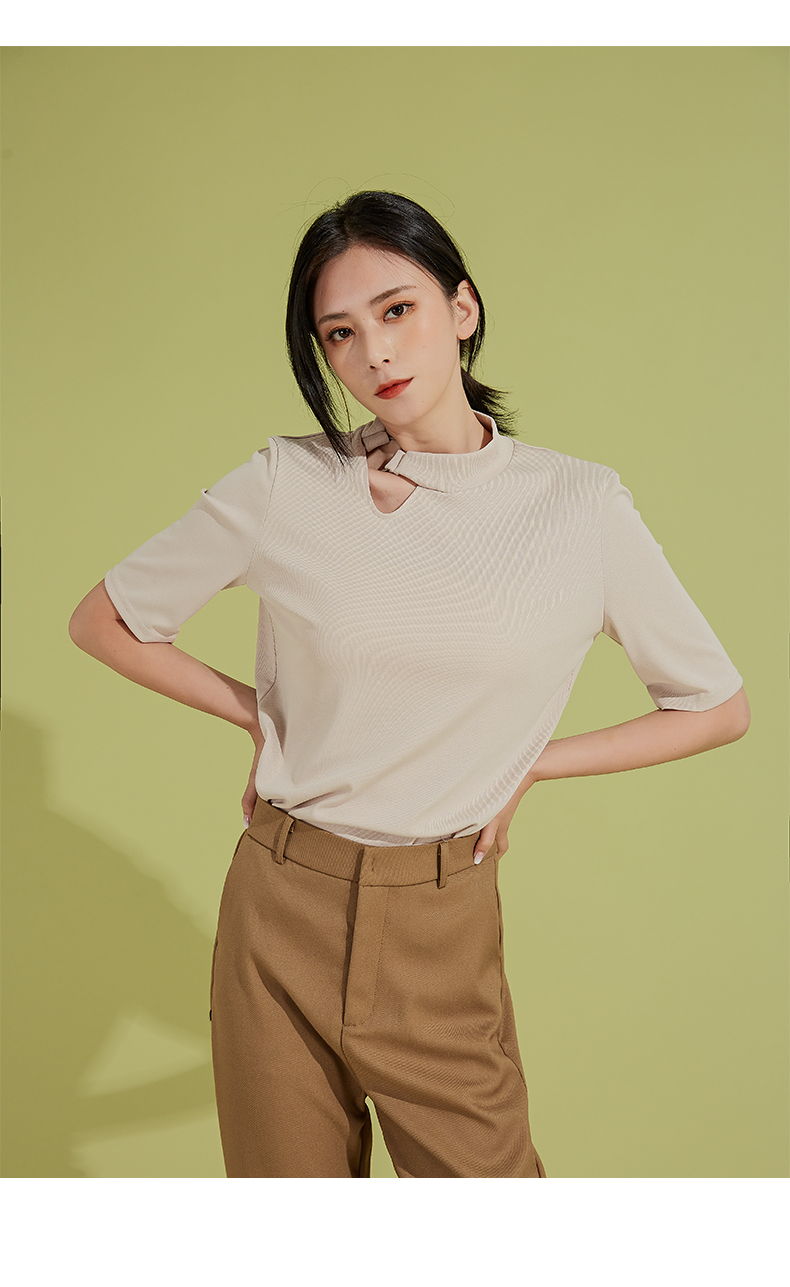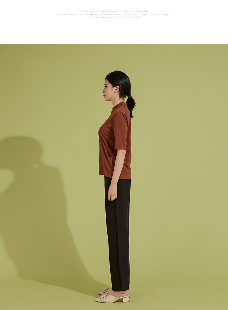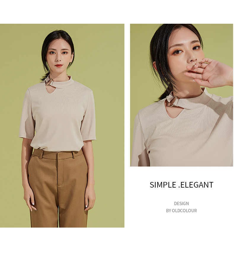 oldcolour春秋季新款时尚复古通勤修身显瘦中袖针织打底衫P310504A1