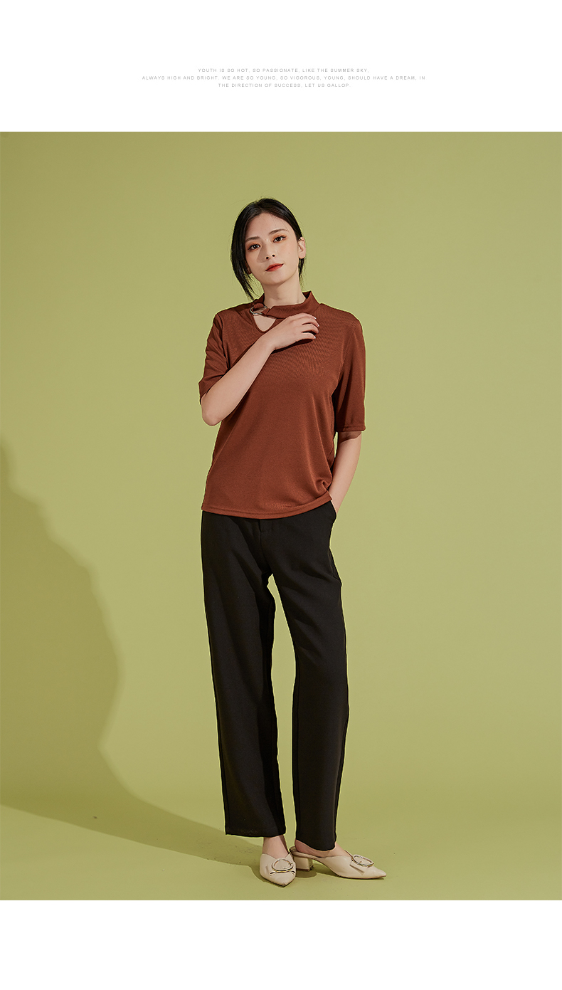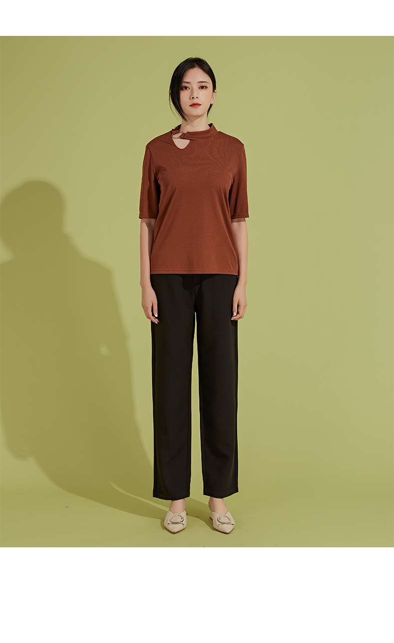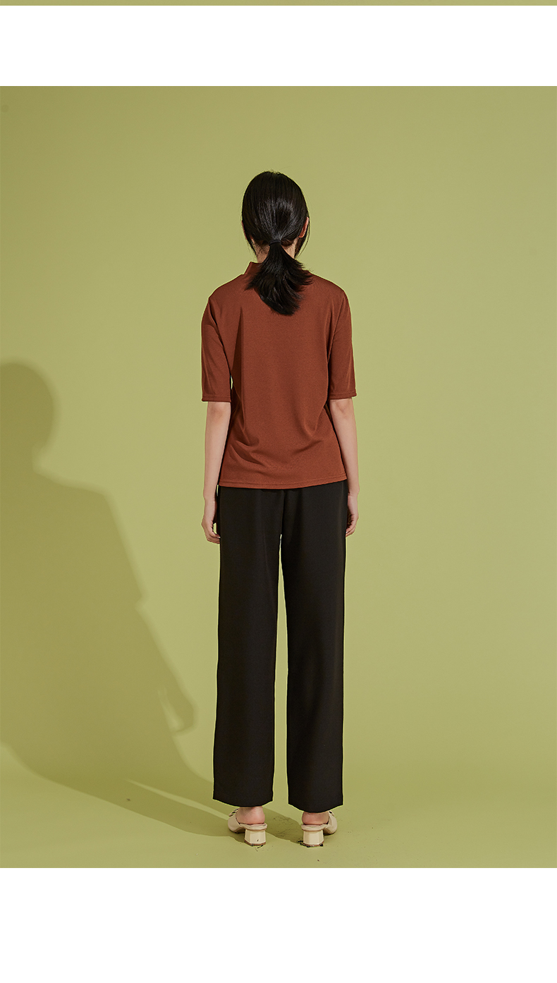 oldcolour春秋季新款时尚复古通勤修身显瘦中袖针织打底衫P310504A1