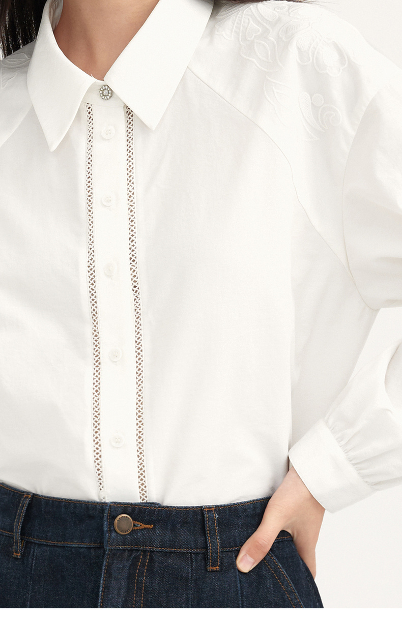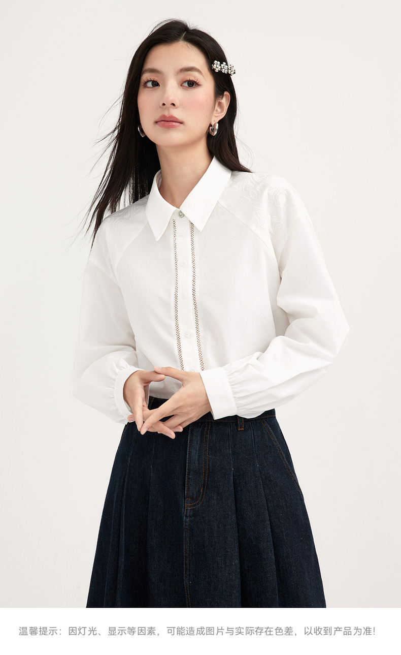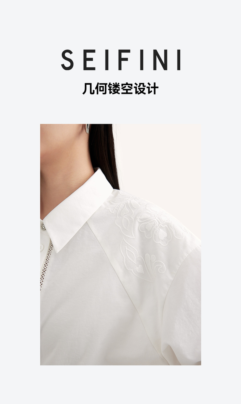 【商场同款】诗凡黎白色衬衫2024夏新款别致衬衣女3F4120341