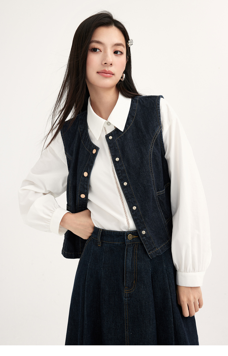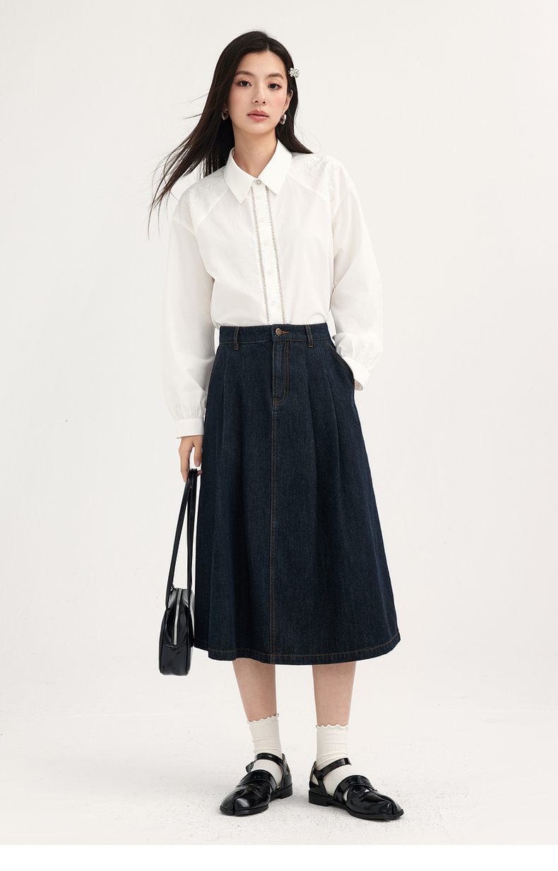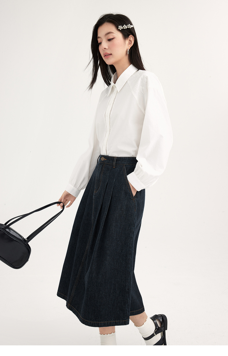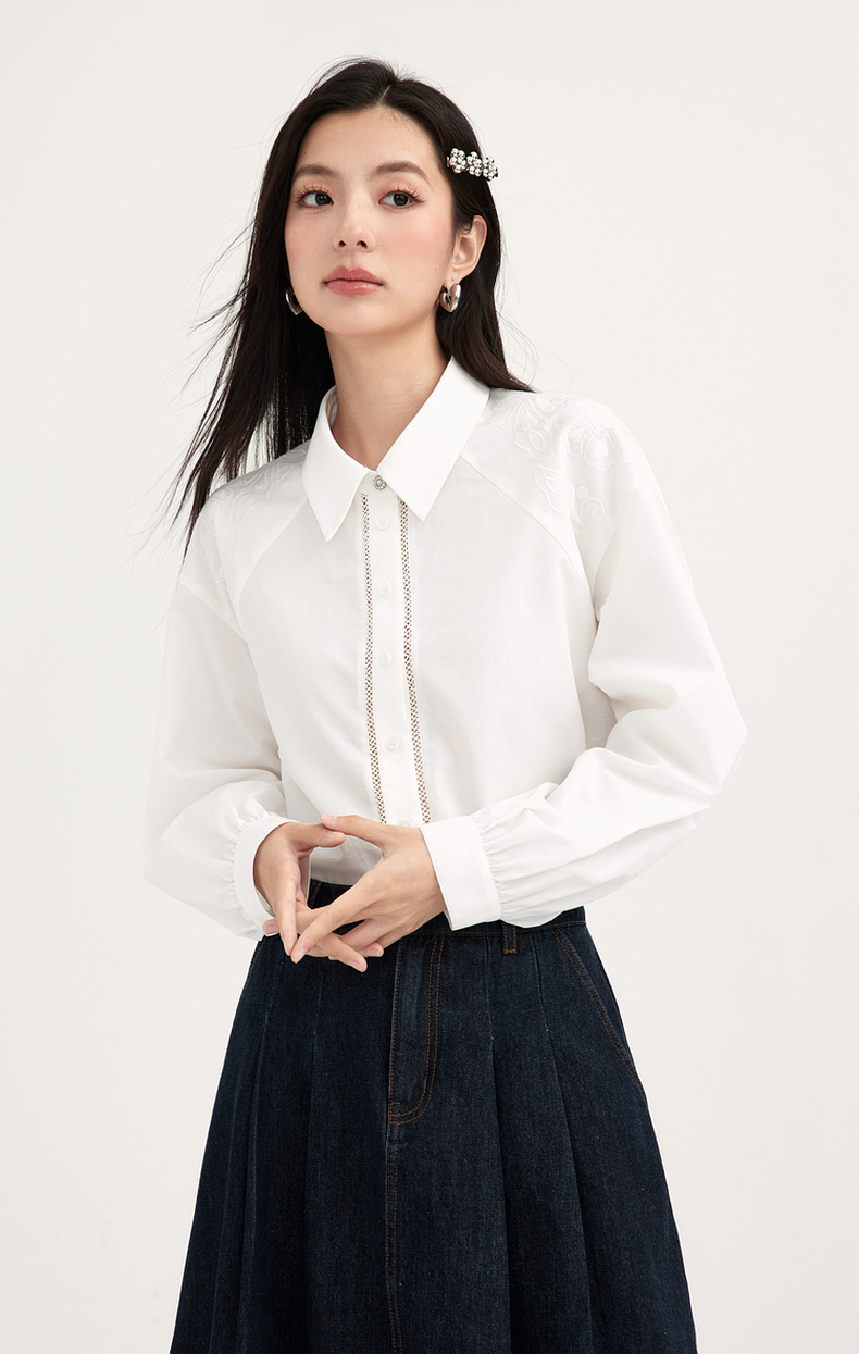 【商场同款】诗凡黎白色衬衫2024夏新款别致衬衣女3F4120341