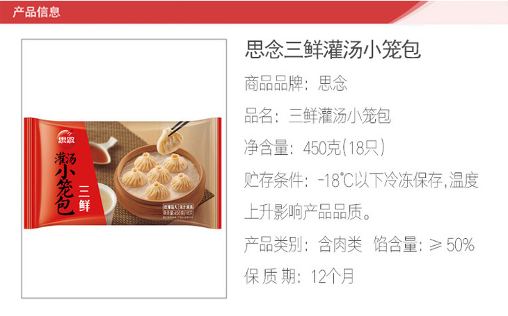 【秒杀】思念包子 开封风味灌汤包 猪肉馅 早餐 小笼包 方便速食 450g(18只) 灌汤小笼包