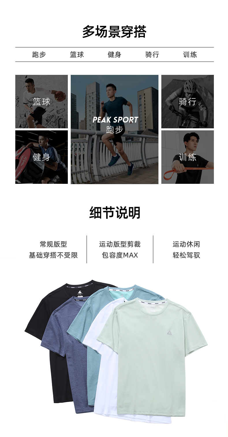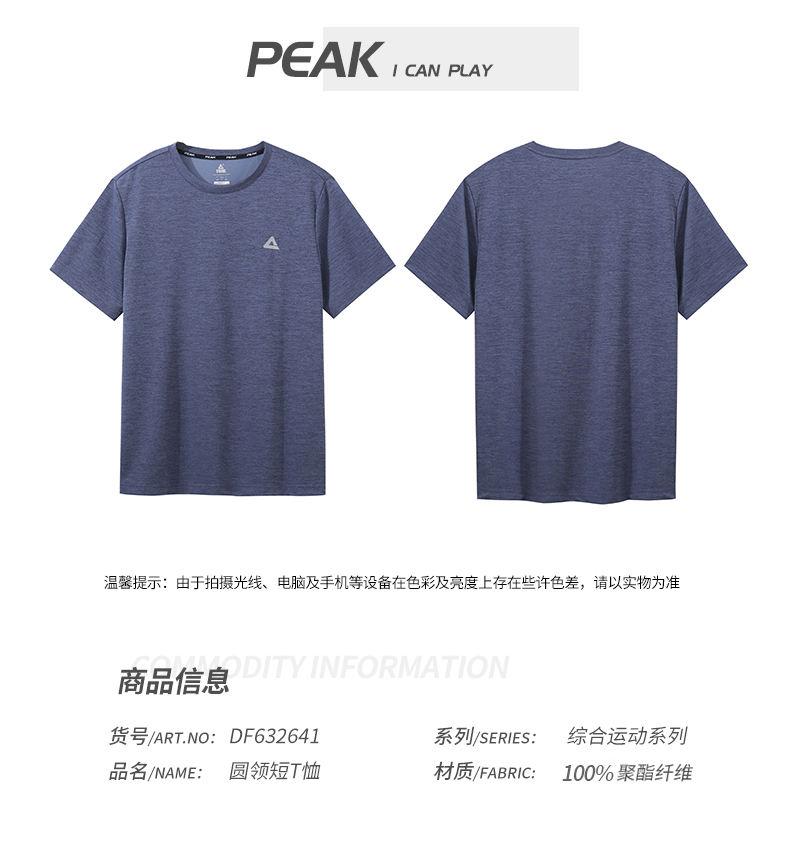 匹克男子吸湿速干圆领短袖T恤DF632641